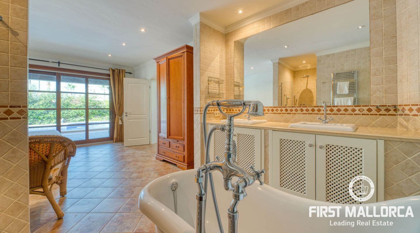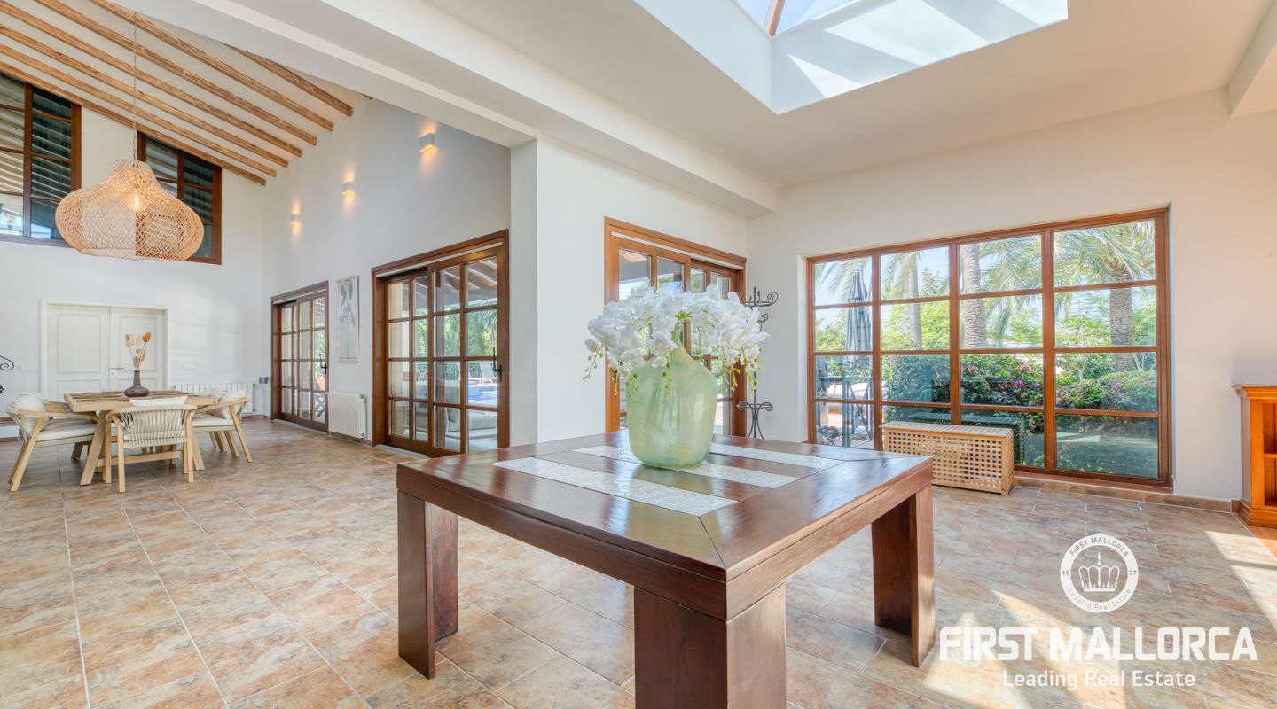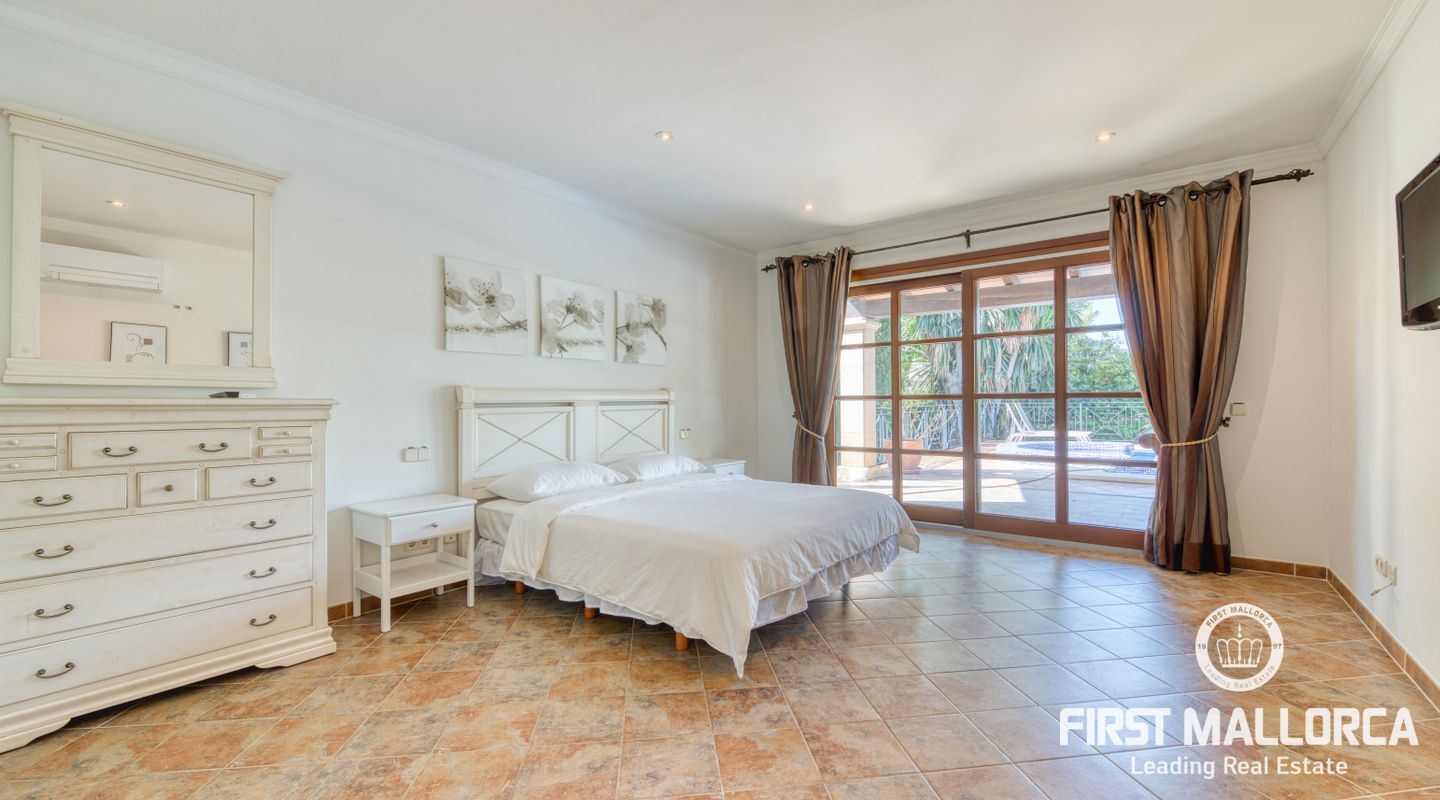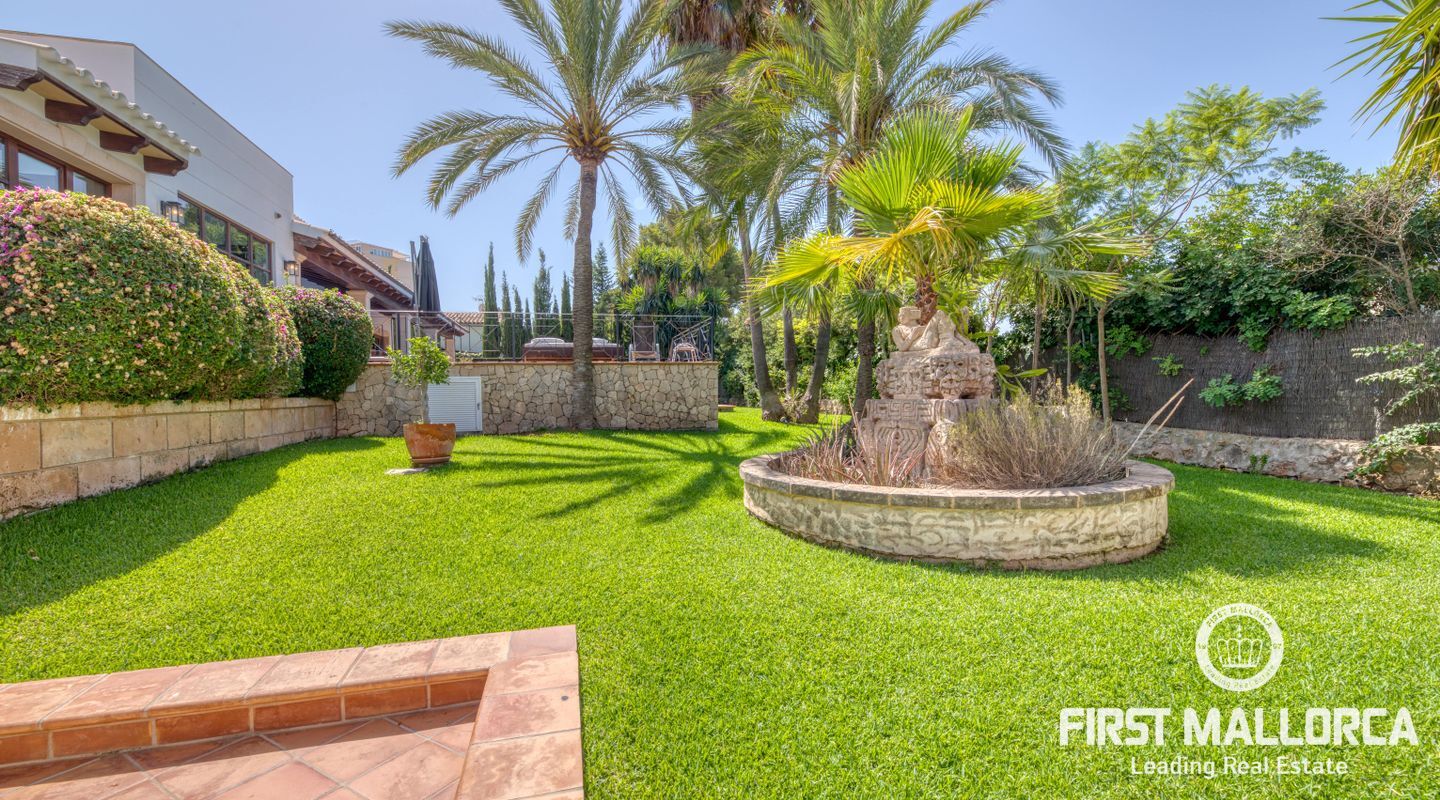 Nyligen renoverad och utvidgad familjevilla i ett lugnt bostadsområde i Palmanova. Fastigheten ligger på en trädgårdstomt på 2 000 m2 och har en byggd yta på 750 m2 inklusive 60 m2 täckt terrass. Dessutom finns det 100 m2 av oskyddad terrass. Fördelningen är som följer: en generös entréhall som öppnar till ett rymligt vardagsrum/matsal med högt i tak och en öppen spis, öppet amerikanskt kök i öppen planlösning, tvättstuga och gästtoalett. På samma nivå finns 2 sovrum med badrum ensuite. På första våningen finns ett stort sovrum med stort sovrum med badrum ensuite och en walk-in-garderob. I trädgården ligger ett gästhus med vardagsrum, sovrum och badrum ensuite. Den stora poolen (15x6) är kopplad till en utomhusjacuzzi. Ytterligare egenskaper hos denna villa är: centralvärme på gas, luftkonditionering (h/c), enkelgarage. Villan ligger nära stranden, nära restauranger, kaféer och shoppingområden. Staden Palma ligger 15 minuter bort med bil.