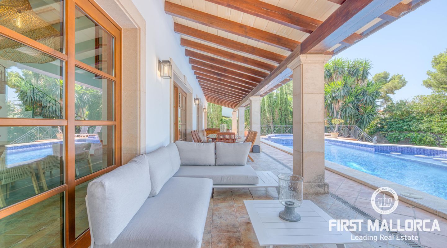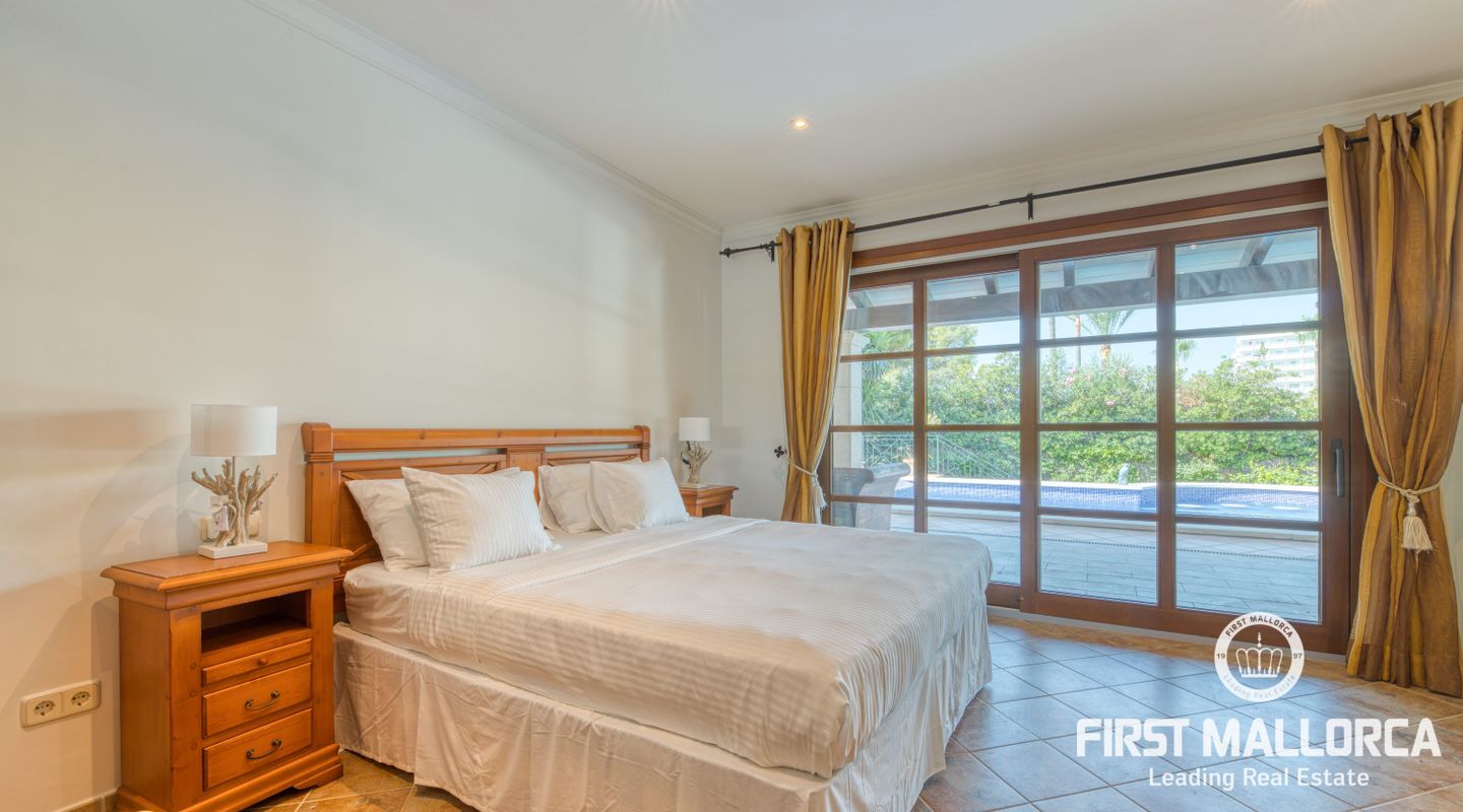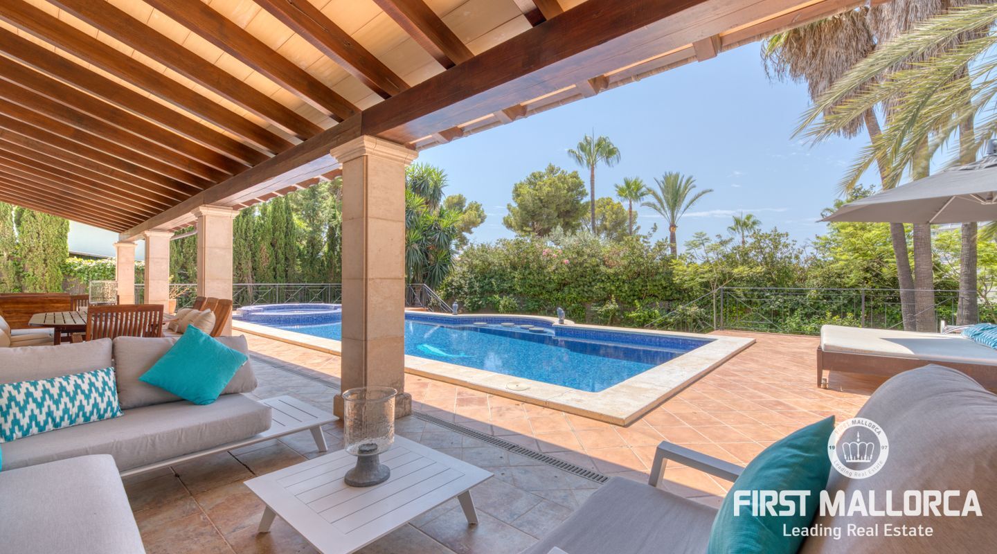 Nyligen renoverad och utvidgad familjevilla i ett lugnt bostadsområde i Palmanova. Fastigheten ligger på en trädgårdstomt på 2 000 m2 och har en byggd yta på 750 m2 inklusive 60 m2 täckt terrass. Dessutom finns det 100 m2 av oskyddad terrass. Fördelningen är som följer: en generös entréhall som öppnar till ett rymligt vardagsrum/matsal med högt i tak och en öppen spis, öppet amerikanskt kök i öppen planlösning, tvättstuga och gästtoalett. På samma nivå finns 2 sovrum med badrum ensuite. På första våningen finns ett stort sovrum med stort sovrum med badrum ensuite och en walk-in-garderob. I trädgården ligger ett gästhus med vardagsrum, sovrum och badrum ensuite. Den stora poolen (15x6) är kopplad till en utomhusjacuzzi. Ytterligare egenskaper hos denna villa är: centralvärme på gas, luftkonditionering (h/c), enkelgarage. Villan ligger nära stranden, nära restauranger, kaféer och shoppingområden. Staden Palma ligger 15 minuter bort med bil.