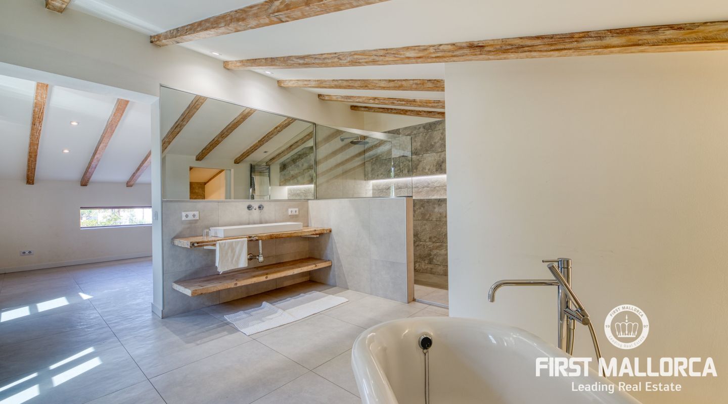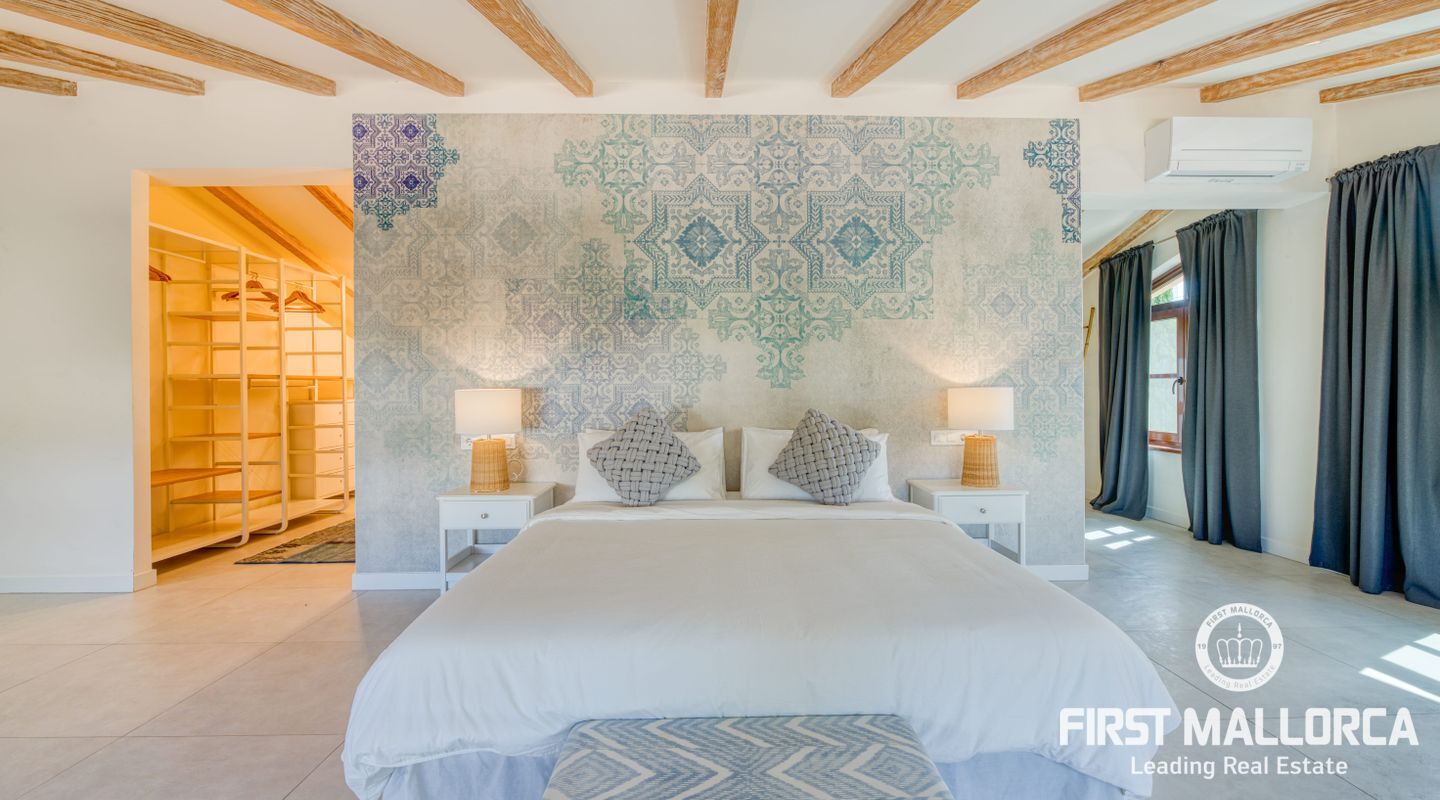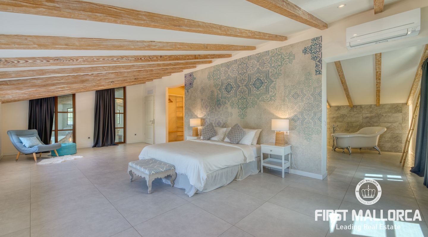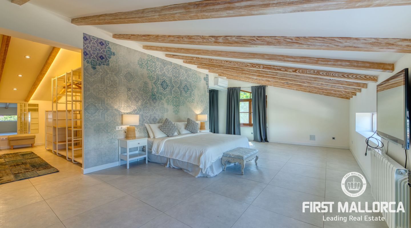 Nyligen renoverad och utvidgad familjevilla i ett lugnt bostadsområde i Palmanova. Fastigheten ligger på en trädgårdstomt på 2 000 m2 och har en byggd yta på 750 m2 inklusive 60 m2 täckt terrass. Dessutom finns det 100 m2 av oskyddad terrass. Fördelningen är som följer: en generös entréhall som öppnar till ett rymligt vardagsrum/matsal med högt i tak och en öppen spis, öppet amerikanskt kök i öppen planlösning, tvättstuga och gästtoalett. På samma nivå finns 2 sovrum med badrum ensuite. På första våningen finns ett stort sovrum med stort sovrum med badrum ensuite och en walk-in-garderob. I trädgården ligger ett gästhus med vardagsrum, sovrum och badrum ensuite. Den stora poolen (15x6) är kopplad till en utomhusjacuzzi. Ytterligare egenskaper hos denna villa är: centralvärme på gas, luftkonditionering (h/c), enkelgarage. Villan ligger nära stranden, nära restauranger, kaféer och shoppingområden. Staden Palma ligger 15 minuter bort med bil.