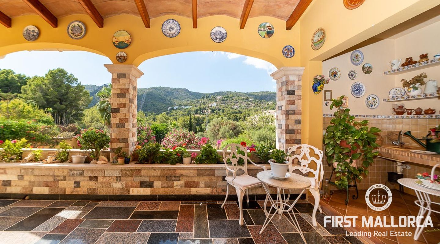 Första våningen: Vardagsrum med öppen spis, en formell matsal, ett komplett badrum med badkar, ett sovrum med dubbelsäng, ett kontor, ett mycket rymligt kök med matplats och en stor täckt terrass med grillplats och utsikt över bergen.
