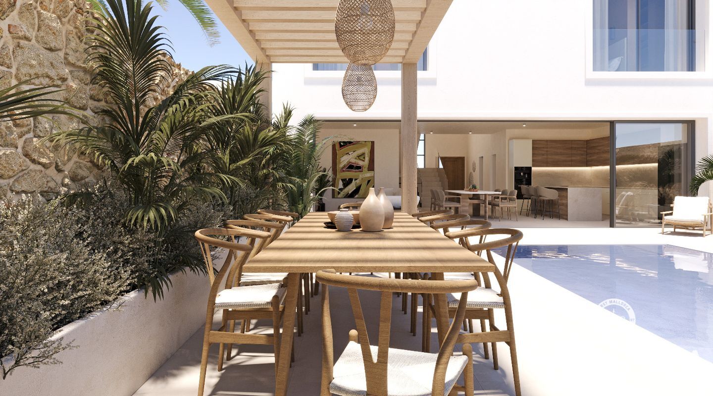 I ett lugnt bostadsområde i Marratxí presenterar vi detta exklusiva projekt för en fristående villa med 242 m² byggyta, privat pool, rymliga terrasser och materialval av hög kvalitet.