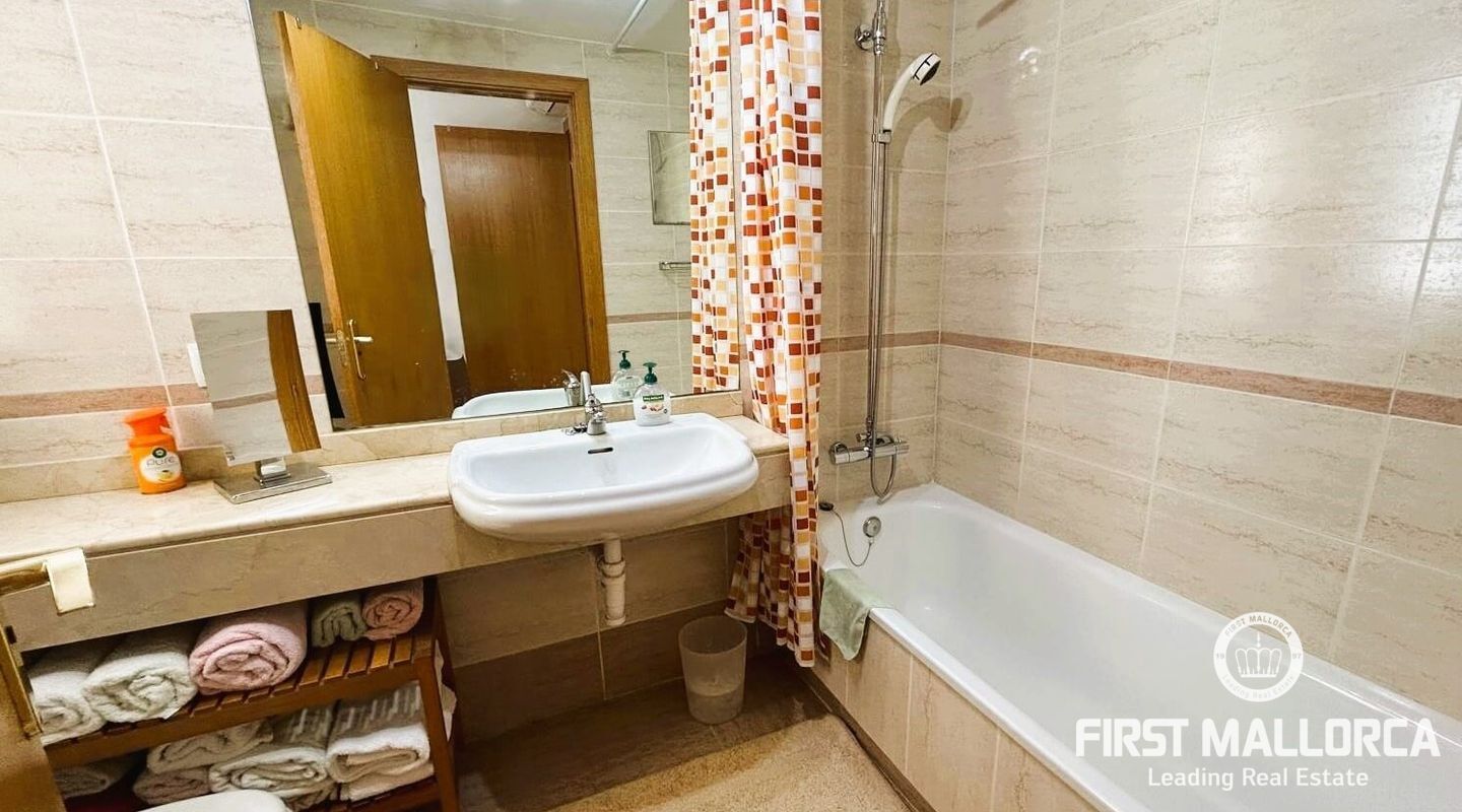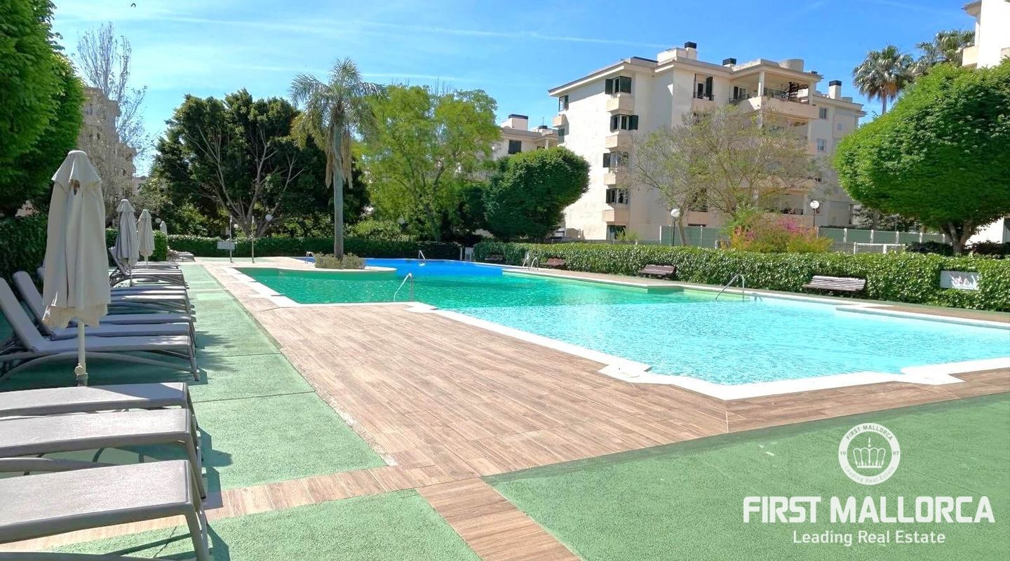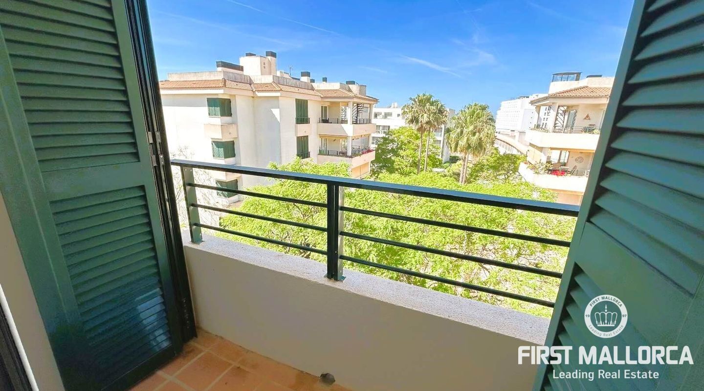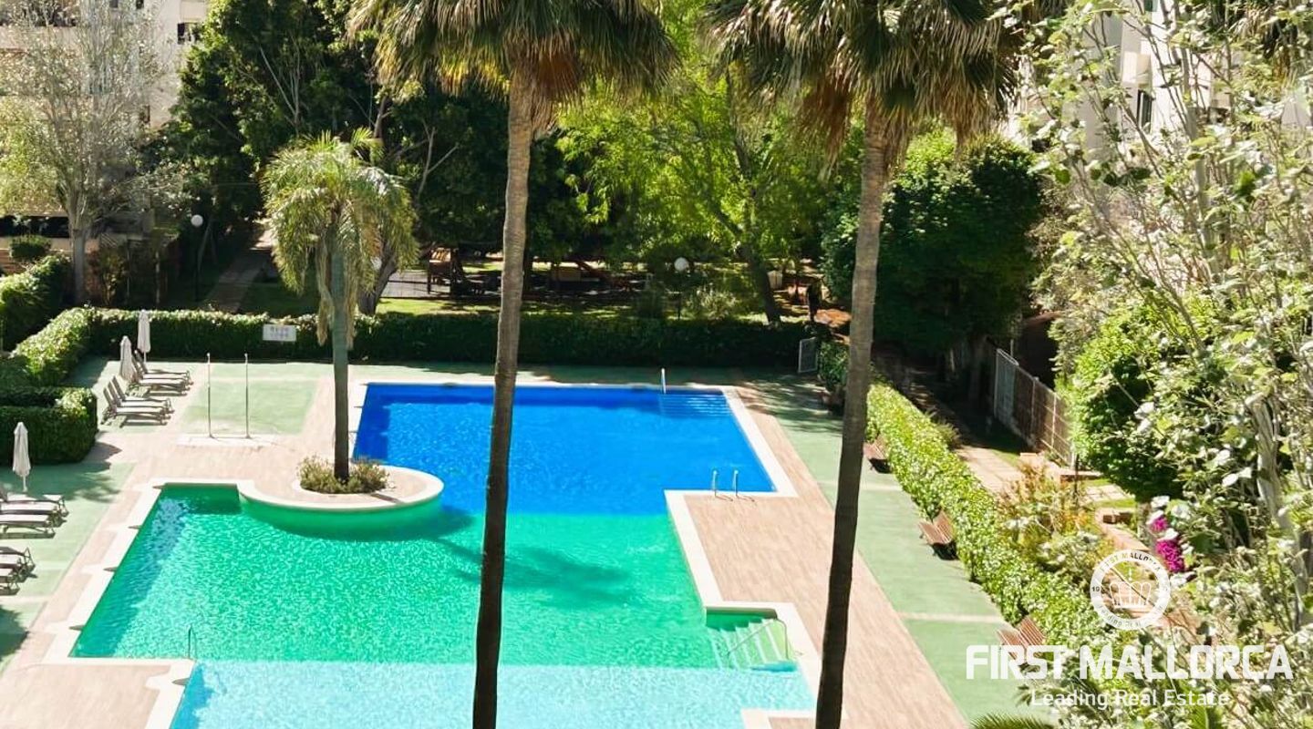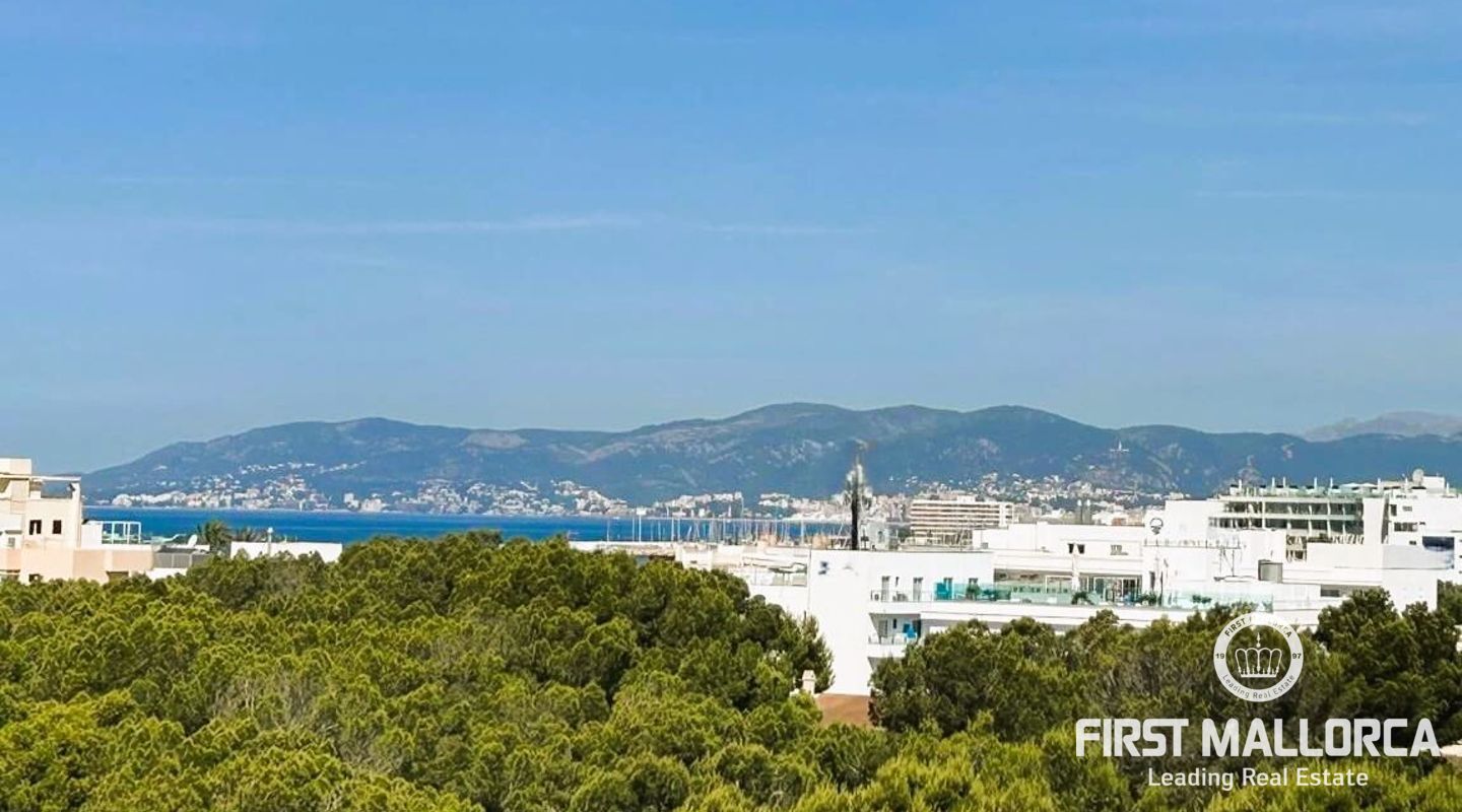 Fastigheten ligger i Sometimes, det bästa området i Playa de Palma, bara 1 minut från stranden, och i ett bostadsområde med gemensamma trädgårdar och pooler. Den är mycket ljus och inkluderar en parkeringsplats. Fri utsikt från sin fantastiska terrass (38 m2) där vi kommer åt en annan stor solariumterrass (72 m2) med delvis utsikt över havet och bergen.