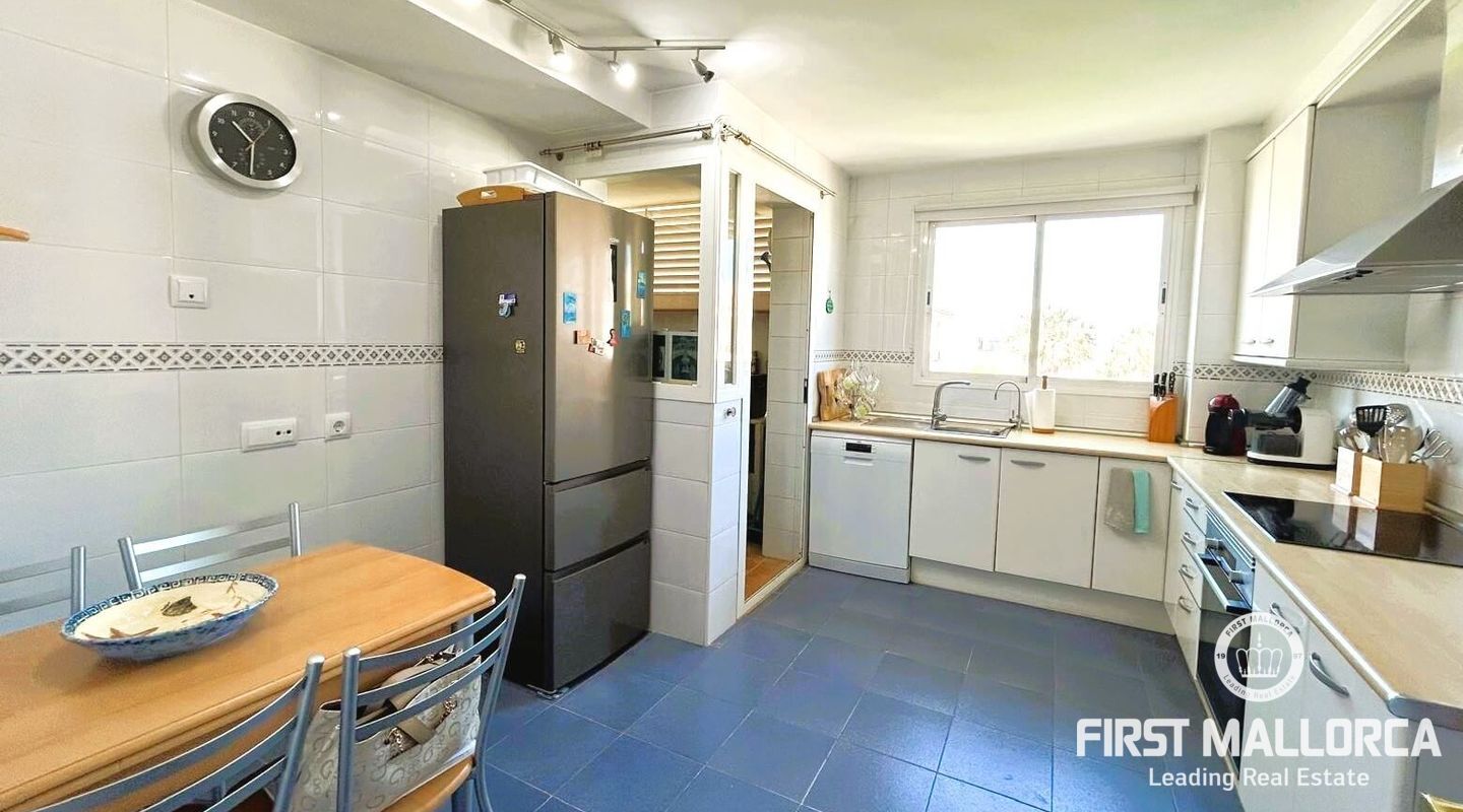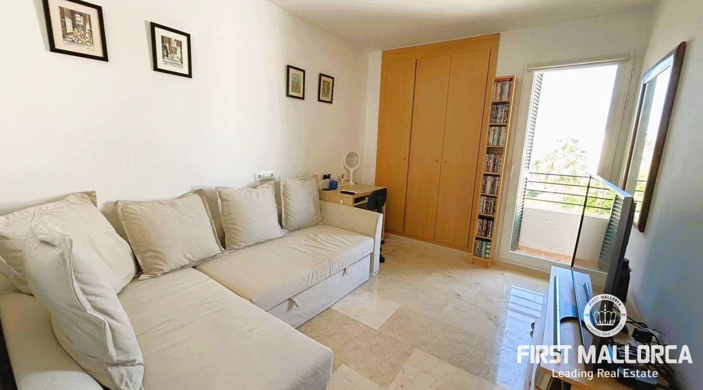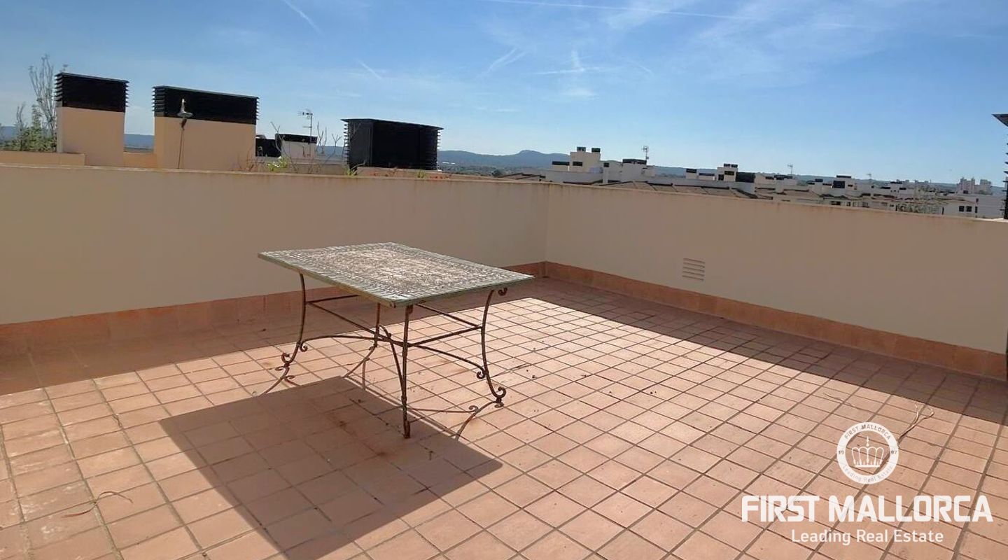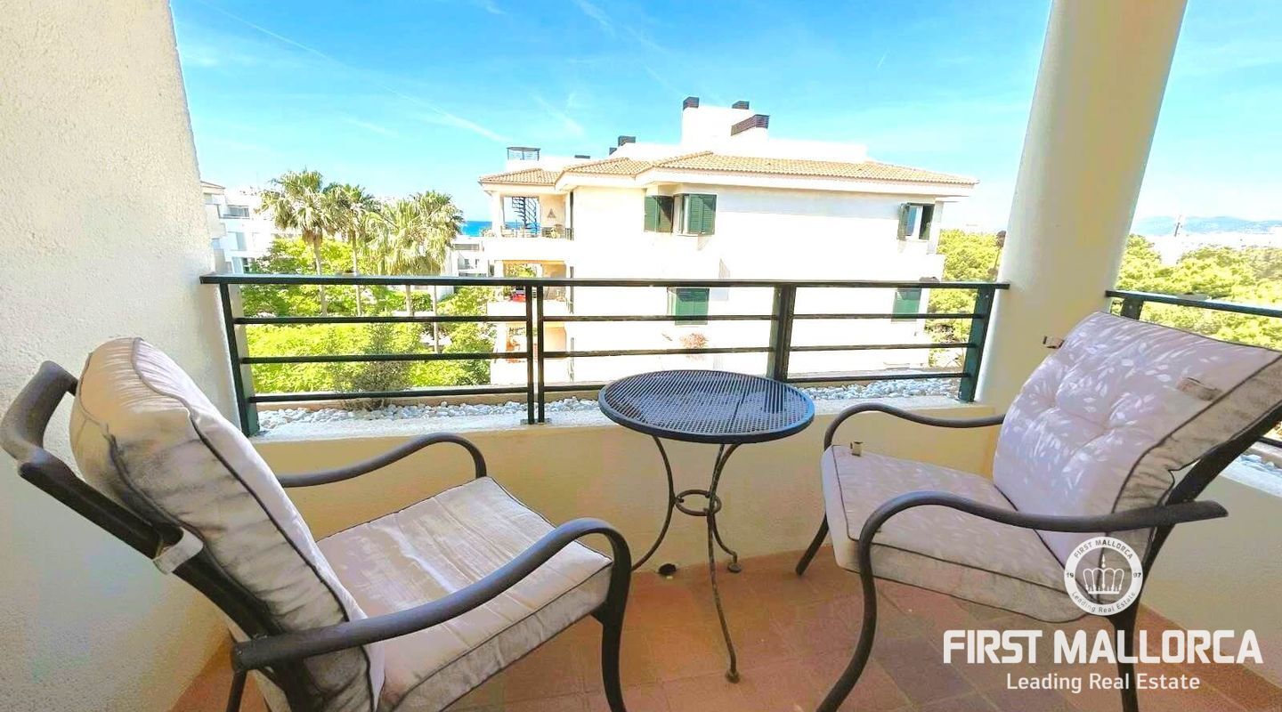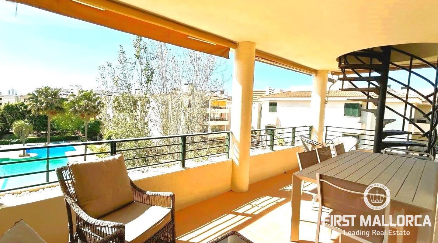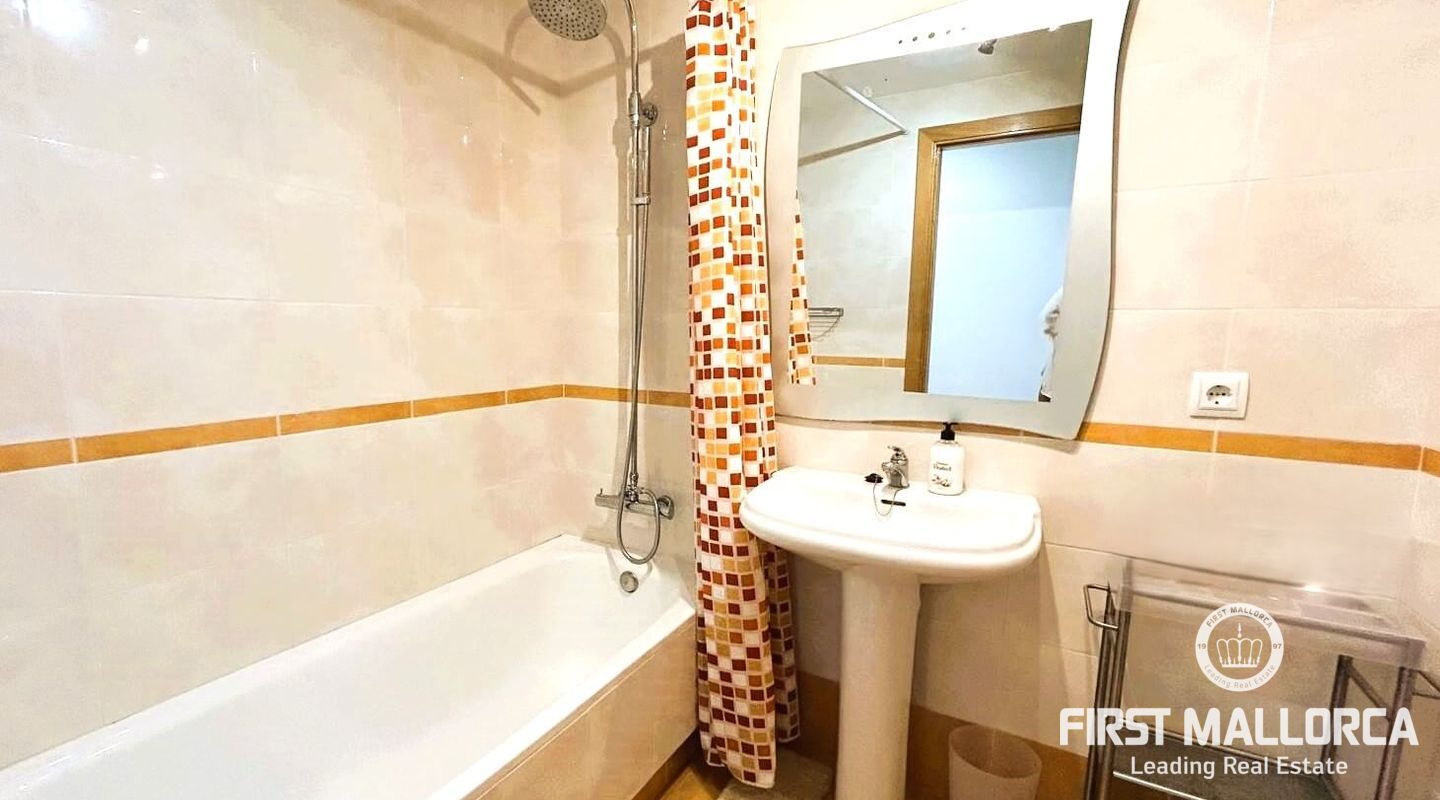 Fastigheten ligger i Sometimes, det bästa området i Playa de Palma, bara 1 minut från stranden, och i ett bostadsområde med gemensamma trädgårdar och pooler. Den är mycket ljus och inkluderar en parkeringsplats. Fri utsikt från sin fantastiska terrass (38 m2) där vi kommer åt en annan stor solariumterrass (72 m2) med delvis utsikt över havet och bergen.