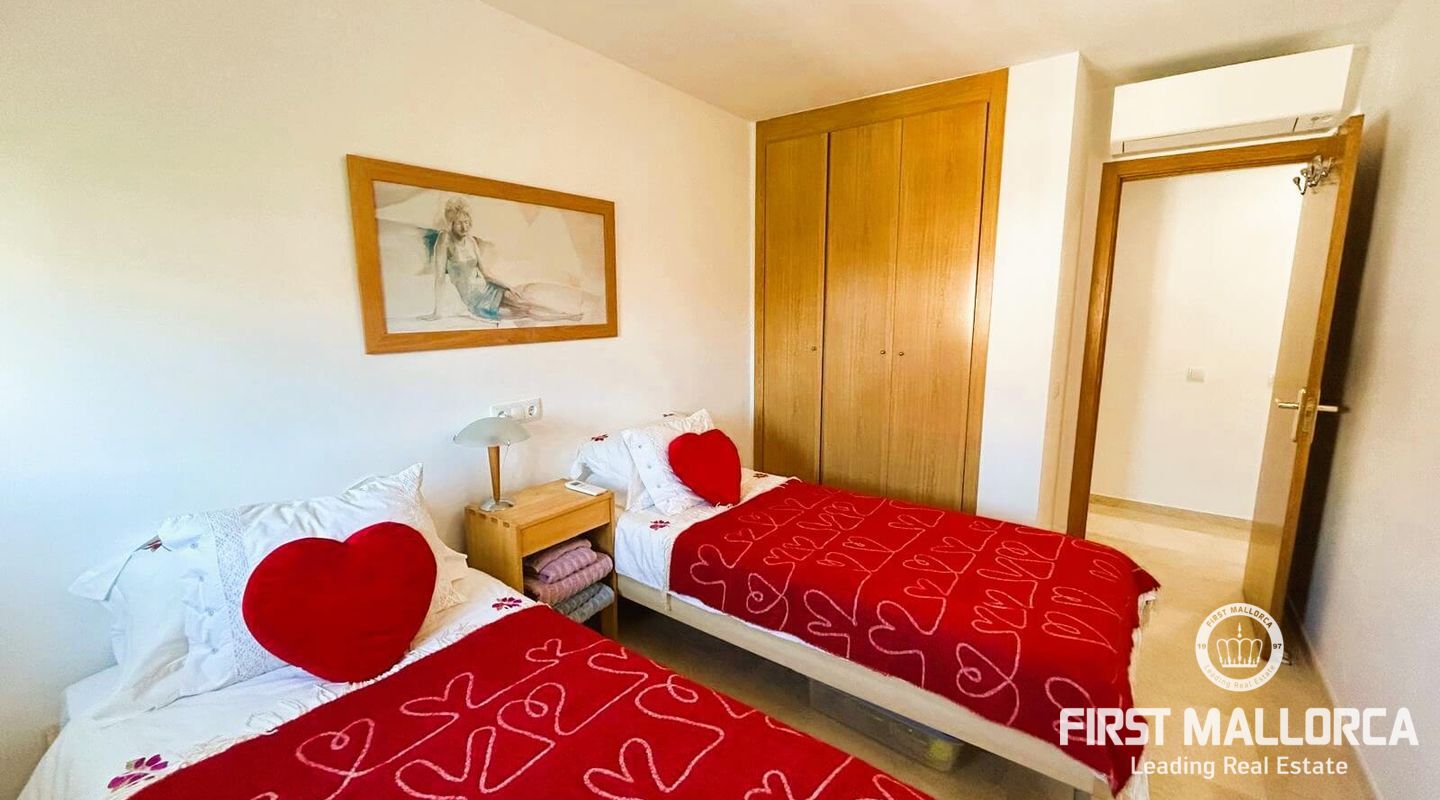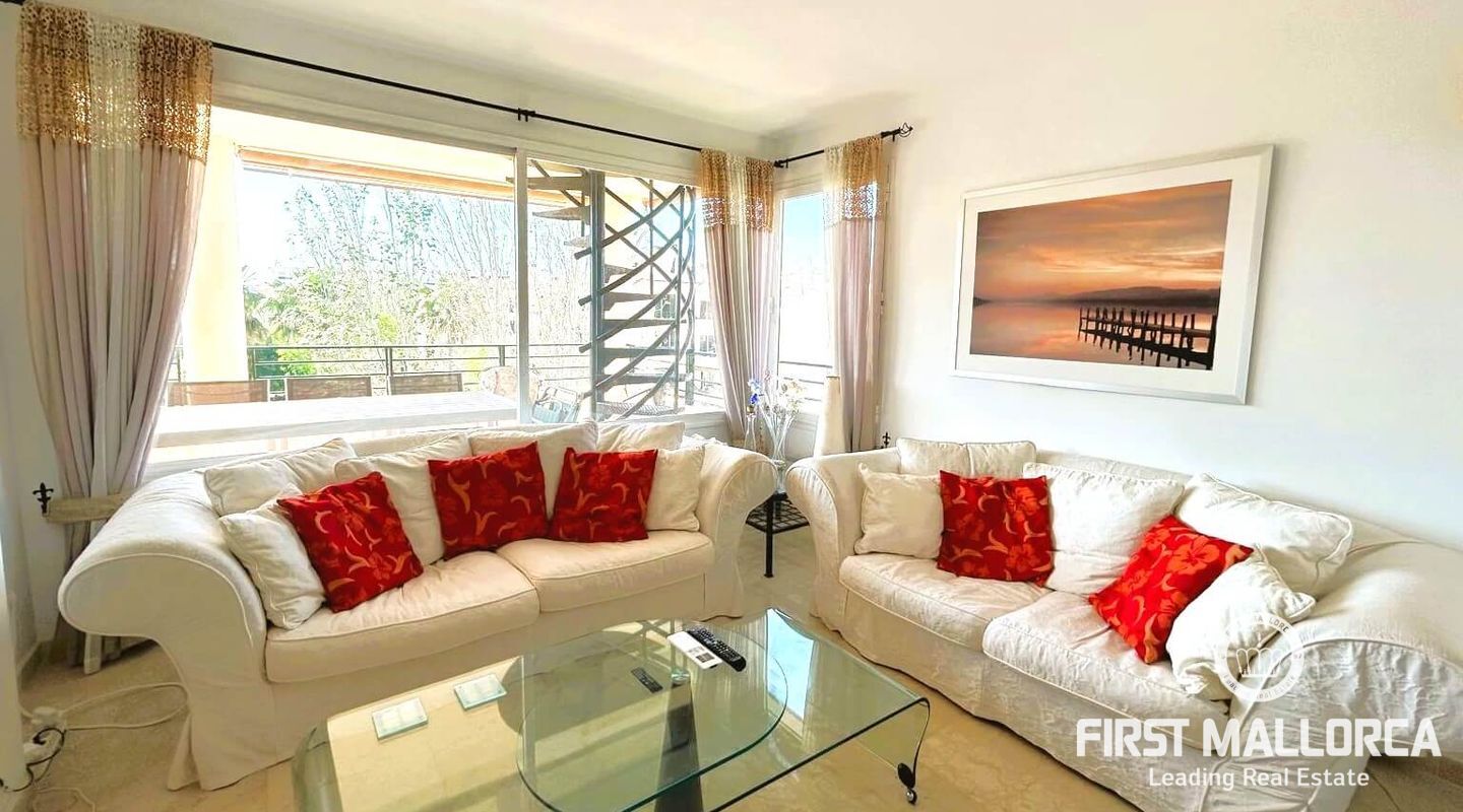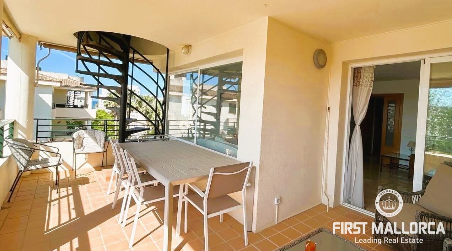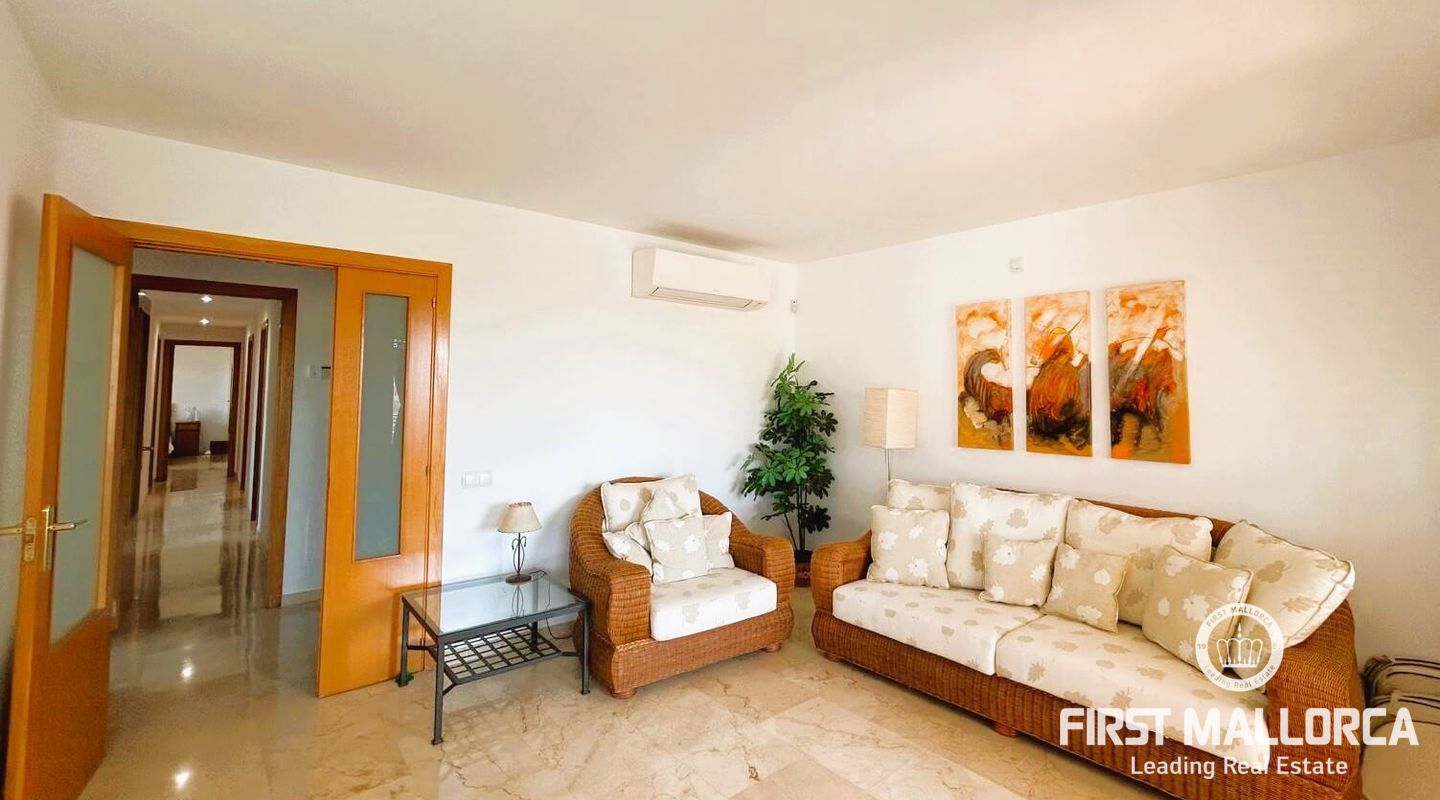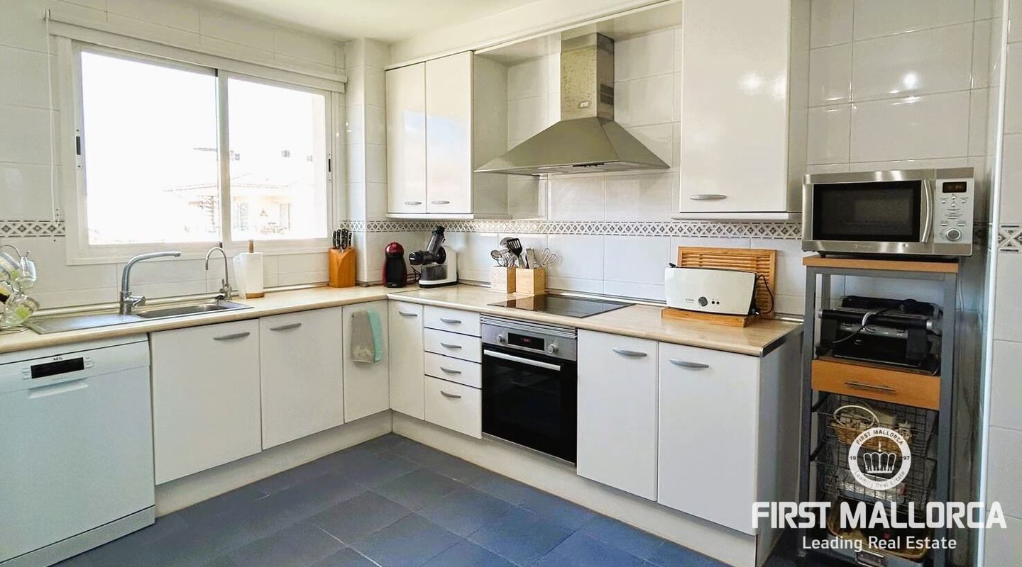 Fastigheten ligger i Sometimes, det bästa området i Playa de Palma, bara 1 minut från stranden, och i ett bostadsområde med gemensamma trädgårdar och pooler. Den är mycket ljus och inkluderar en parkeringsplats. Fri utsikt från sin fantastiska terrass (38 m2) där vi kommer åt en annan stor solariumterrass (72 m2) med delvis utsikt över havet och bergen.