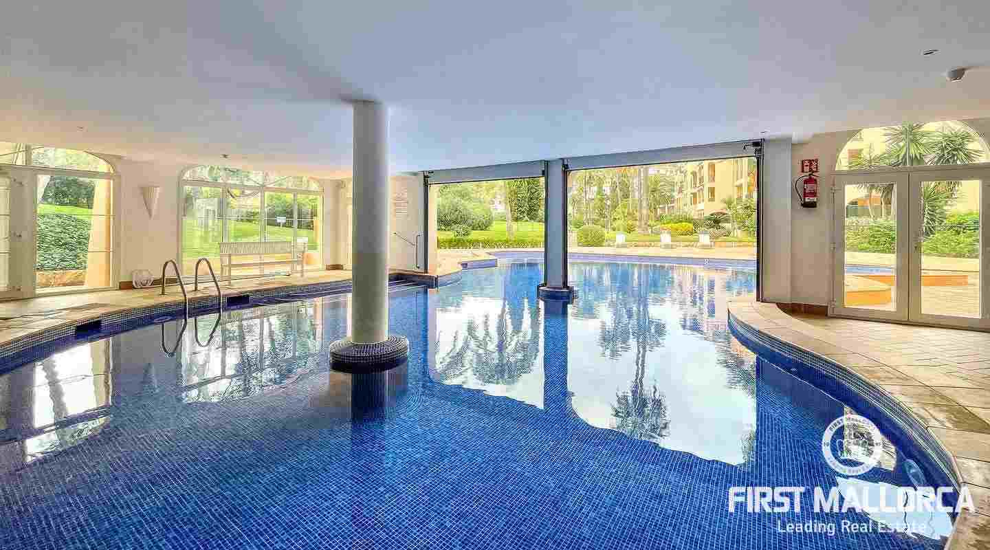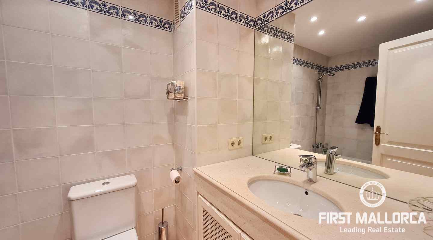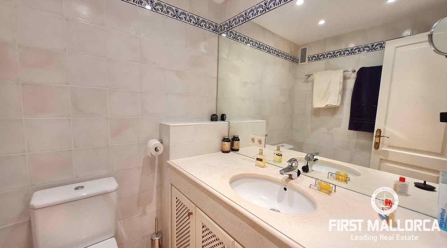 Denna mysiga och välskötta lägenhet ligger i det exklusiva bostadskomplexet Golf Bendinat och erbjuder ett stort vardagsrum och terrass med utsikt över Real Golf Bendinat. Tidigare hade den två sovrum, men den andra sovkammaren kan enkelt återställas vid behov. Lägenheten har ett badrum och gästtoalett och många inbyggda skåp. I priset ingår en av få underjordiska parkeringsplatser och ett förråd. Det är en perfekt semesterlägenhet som erbjuder mycket avskildhet. Anläggningen erbjuder 2 utomhuspooler och en uppvärmd innerpool med bastu.