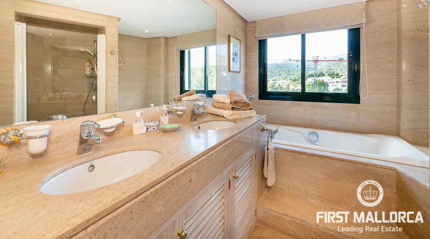 Denna rymliga takvåning ligger i ett exklusivt område ovanför golfbanan Bendinat och erbjuder fantastisk utsikt över havet och golfbanan. Den gated community är extremt välskött och har en stor utomhuspool och uppvärmd inomhuspool med bastu och omfattande gemensamma trädgårdar, Huvuddelen av denna takvåning på två nivåer är utformad på tredje våningen i byggnaden med ett rymligt vardagsrum/matsal som har direkt tillgång ut till den täckta terrassen med havsutsikt. Det fullt utrustade köket med Miele-apparater har även en frukosthörna och en intilliggande tvättstuga. Alla tre sovrummen är utrustade med inbyggda garderober och har egna badrum. Den övre nivån har en 200 m2 stor privat takterrass komplett med sommarkök och grill, gott om plats för underhållning och solbadning, dusch och tvättrum. Det är också möjligt att installera en jacuzzi eller en plunge pool här. Fastigheten är utrustad med varm och kall luftkonditionering, dubbelglasfönster, marmorgolv, tre underjordiska garageplatser och tre förrådsrum och den säljs delvis möblerad. Bendinat är ett eftertraktat bostadsområde som ligger bara 10 minuter sydväst om Palma, det är utan tvekan en av Mallorcas allra bästa adresser. Man hittar flera prestigefyllda internationella skolor inom 10 minuters bilresa och den eleganta yachthamnen Marina Puerto Portals ligger bara 5 minuter med bil.