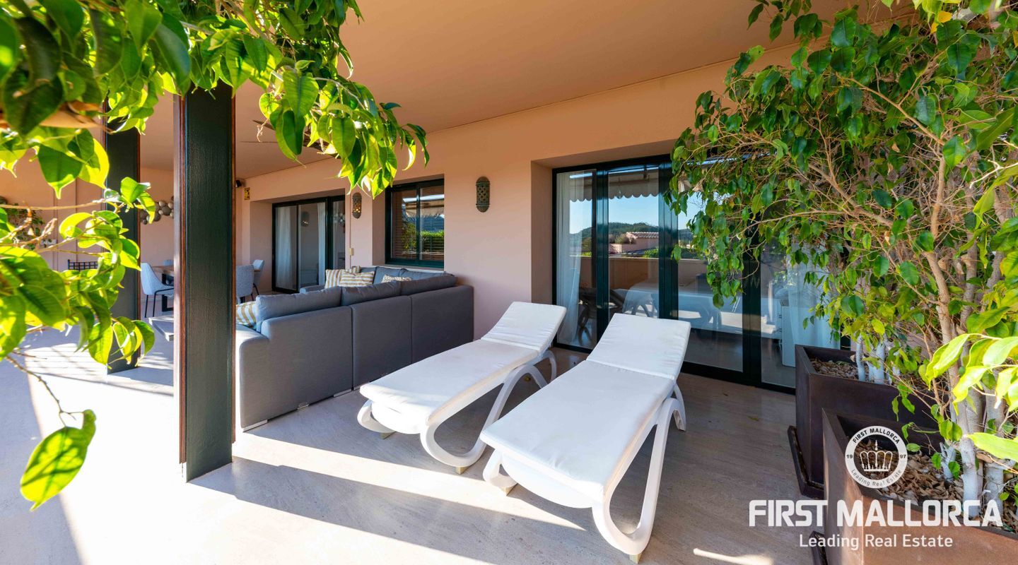 Denna moderna 3-sovrums lägenhet ligger i ett av de mest eftertraktade bostadsområdena nära den välrenommerade golfbanan i Bendinat – ett av de mest attraktiva områdena i sydvästra Mallorca. Omgivningen präglas av lugn, välskötta grönområden samt närhet till stränder, internationella skolor och den exklusiva småbåtshamnen Puerto Portals.