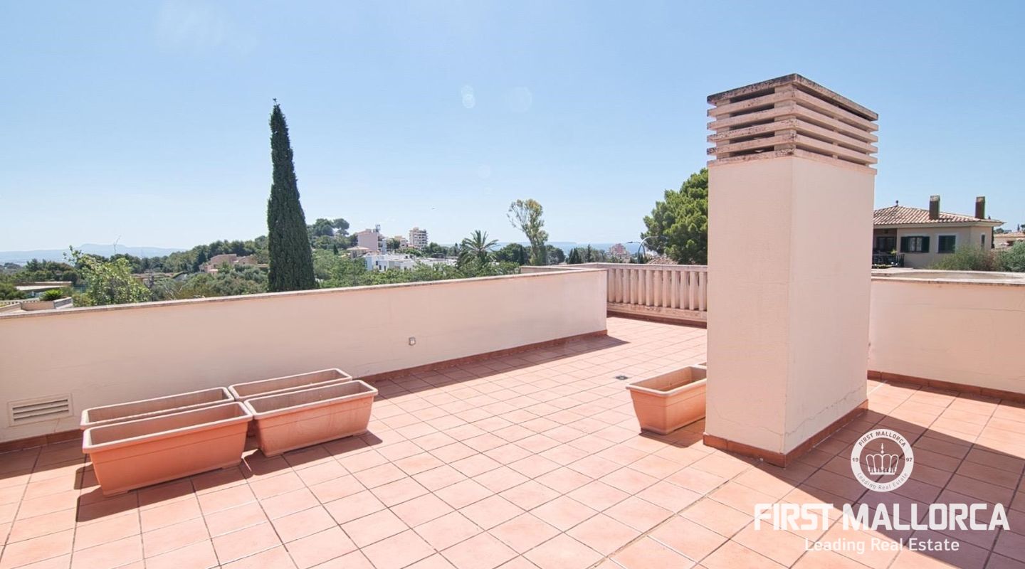 Mycket välskött och ljus lägenhet med en stor takterrass på 197 m2 för att njuta av panoramautsikten över Bellver-skogen och Palmabukten. Den består av 5 sovrum, 4 badrum, en mycket bekväm layout med ett rymligt vardagsrum med matsal, ett separat kök och en charmig entrémottagning.