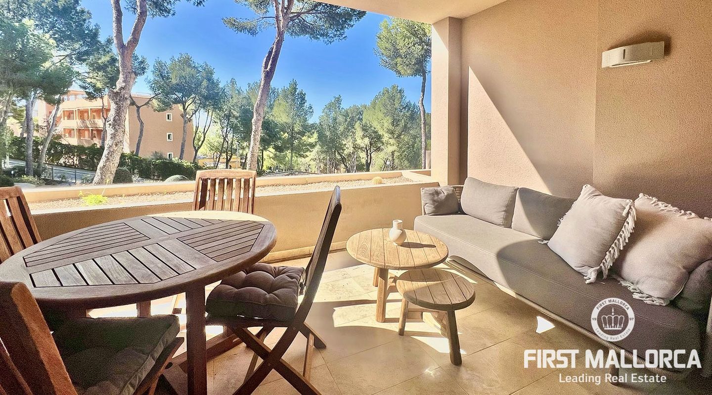 Vi presenterar en vacker lägenhet på 110 m² i Cala Fornells, den västra delen av Peguera, ett område som har en mallorkinsk bykänsla och ser lite turism. Det är dock bara 15 minuters promenad till Boulevar Peguera, den populära shoppinggatan med alla dess butiker, barer och restauranger. Lidl, Mercadona och Eroski, samt läkare och ett apotek, ligger inom gångavstånd på knappt 8 minuter.
