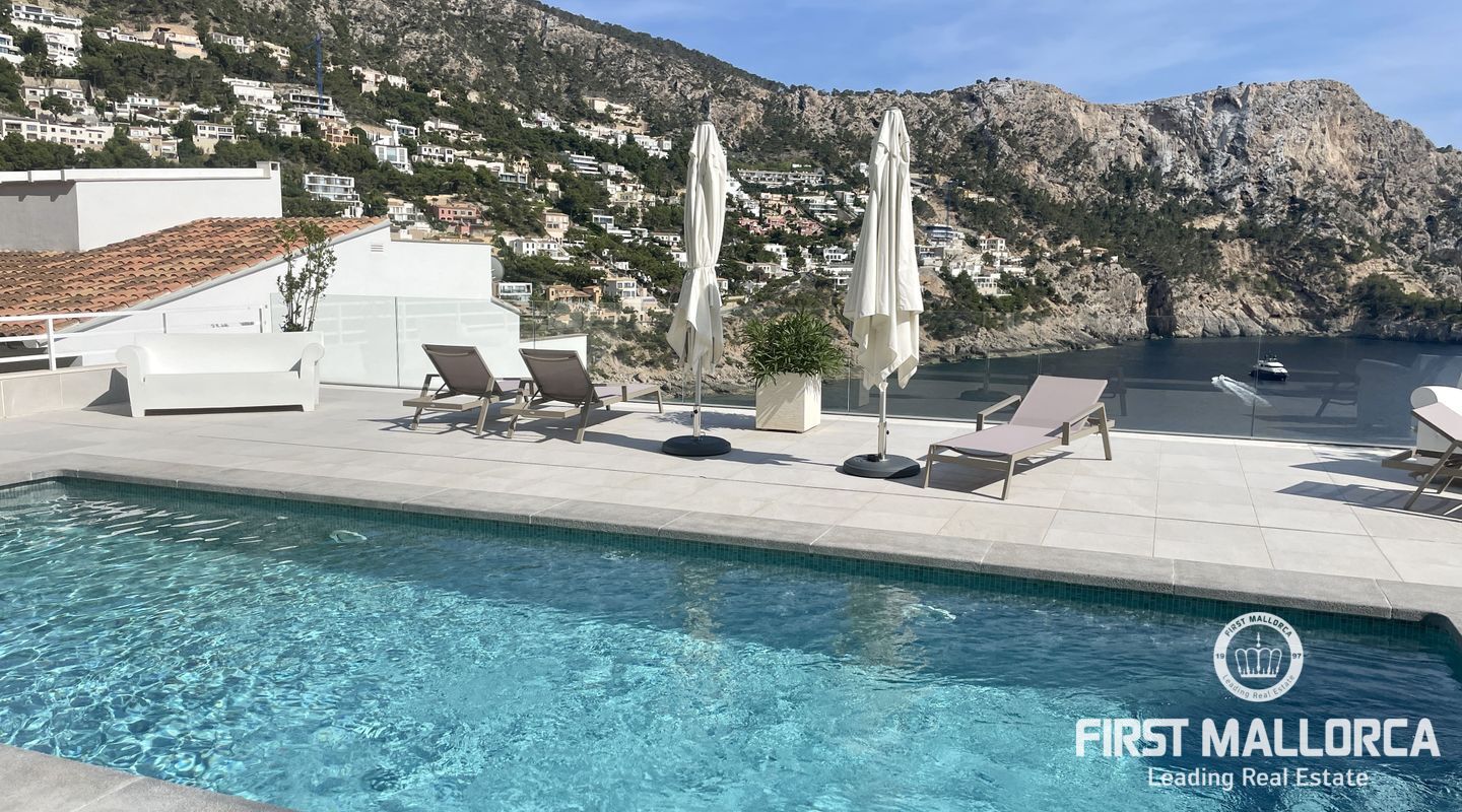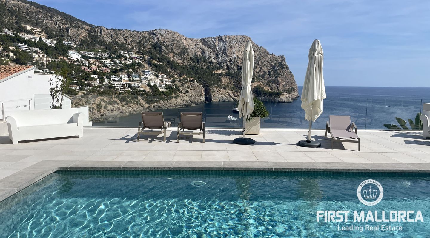 Lägenhet i söderläge med spektakulär havsutsikt, med stor privat terrass och 2 sovrum och 2 badrum, 1 av dem har eget badrum med badkar och det andra badrummet med dusch. Den ligger i ett litet samhälle med privat parkering, hiss och gemensam pool.