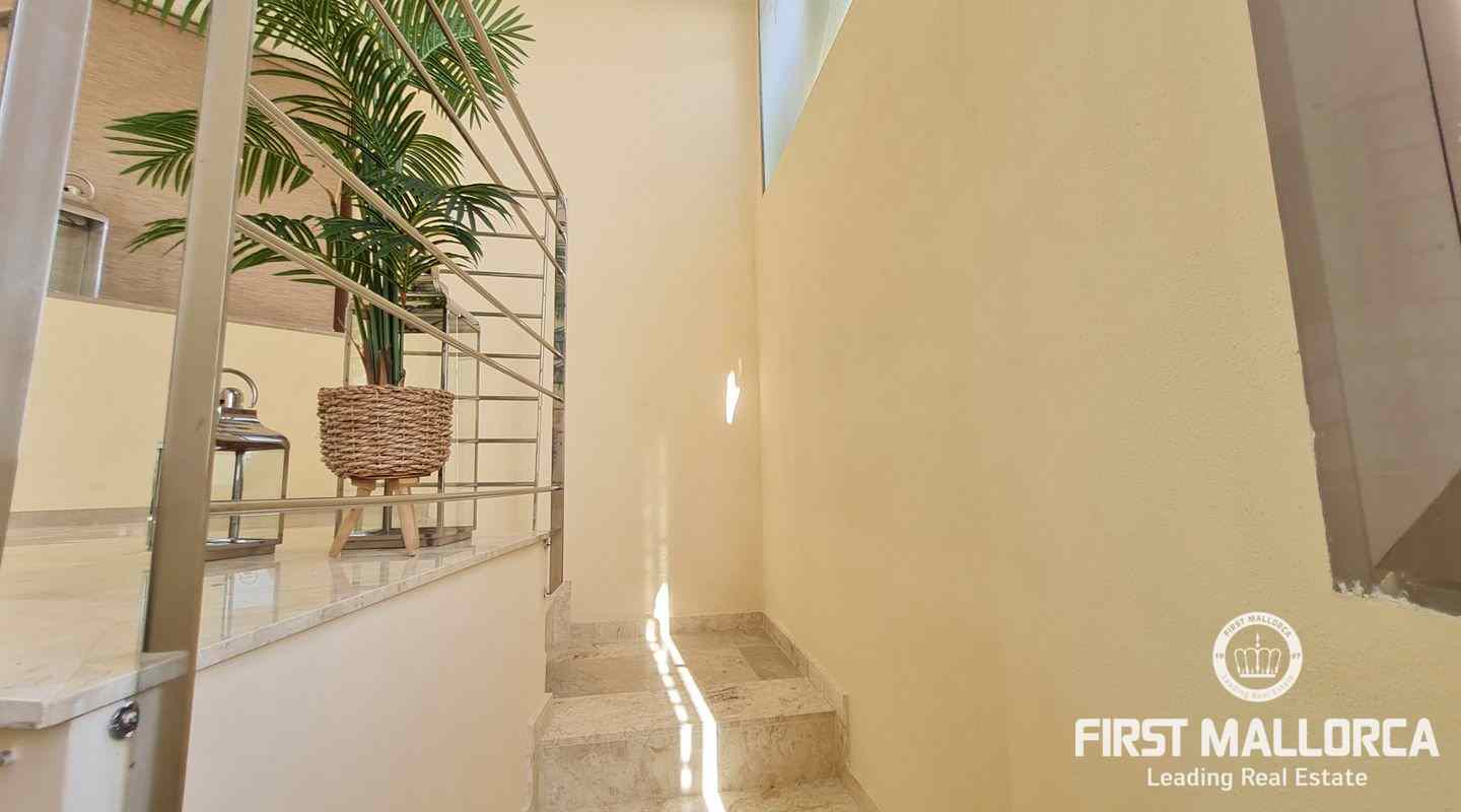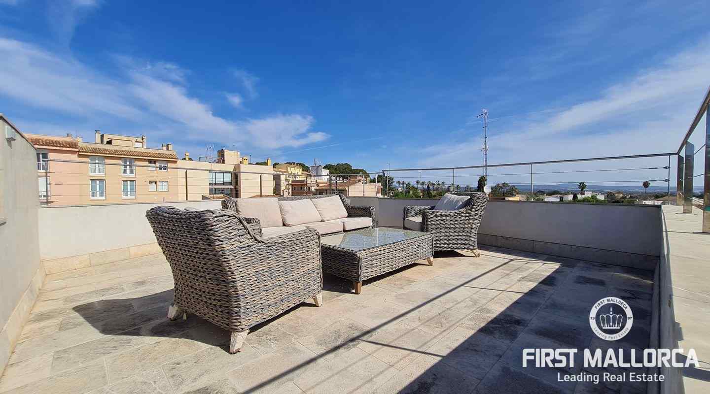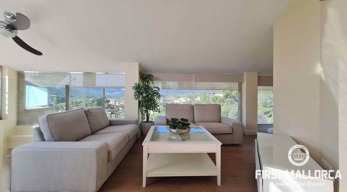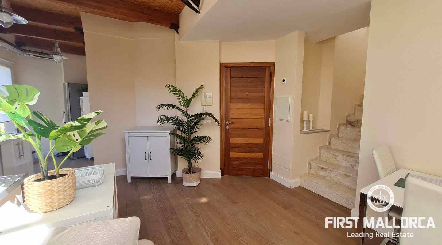 Förstklassig takvåning i Establiments, endast 10 minuter från Palma. Ett perfekt utrymme för att njuta av den lugna atmosfären, tack vare dess imponerande utsikt över dalen och Tramuntana-bergen. Bottenvåningen har ett fullt utrustat kök integrerat med vardagsrummet. Detta utrymme har en rymlig balkong med panoramautsikt. Den består av två rymliga och ljusa sovrum, båda med eget badrum. På andra våningen finns ett ytterligare vardagsrum med ett idealiskt hörn för avkoppling eller som arbetsplats eller kontor. De stora fönstren gör att du kan njuta av rikligt med naturligt ljus under hela dagen. På tredje våningen finns ett mysigt solarium, perfekt för att betrakta solnedgångar över bergen. Dessutom har fastigheten en modern privat pool och tillgång till gemensam parkering.