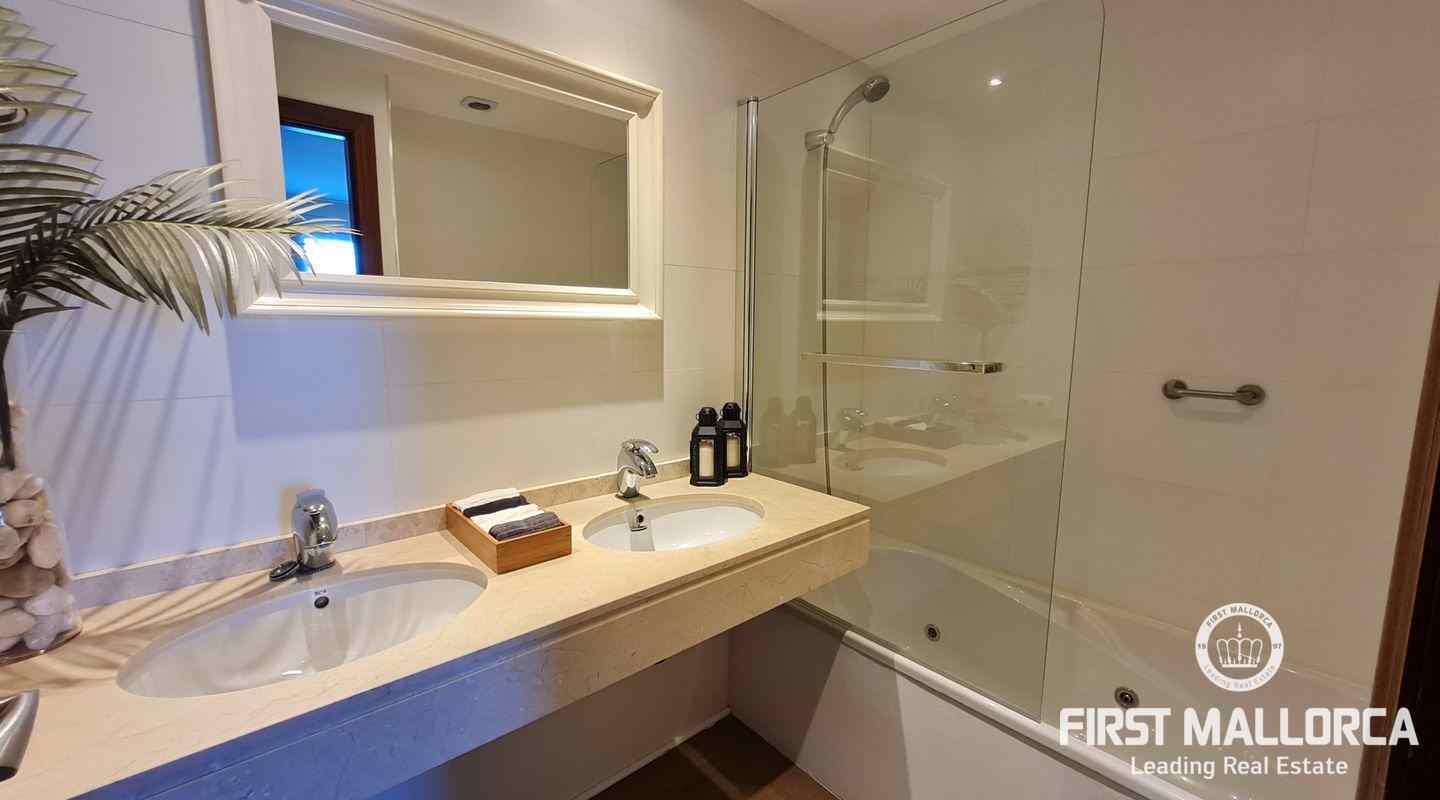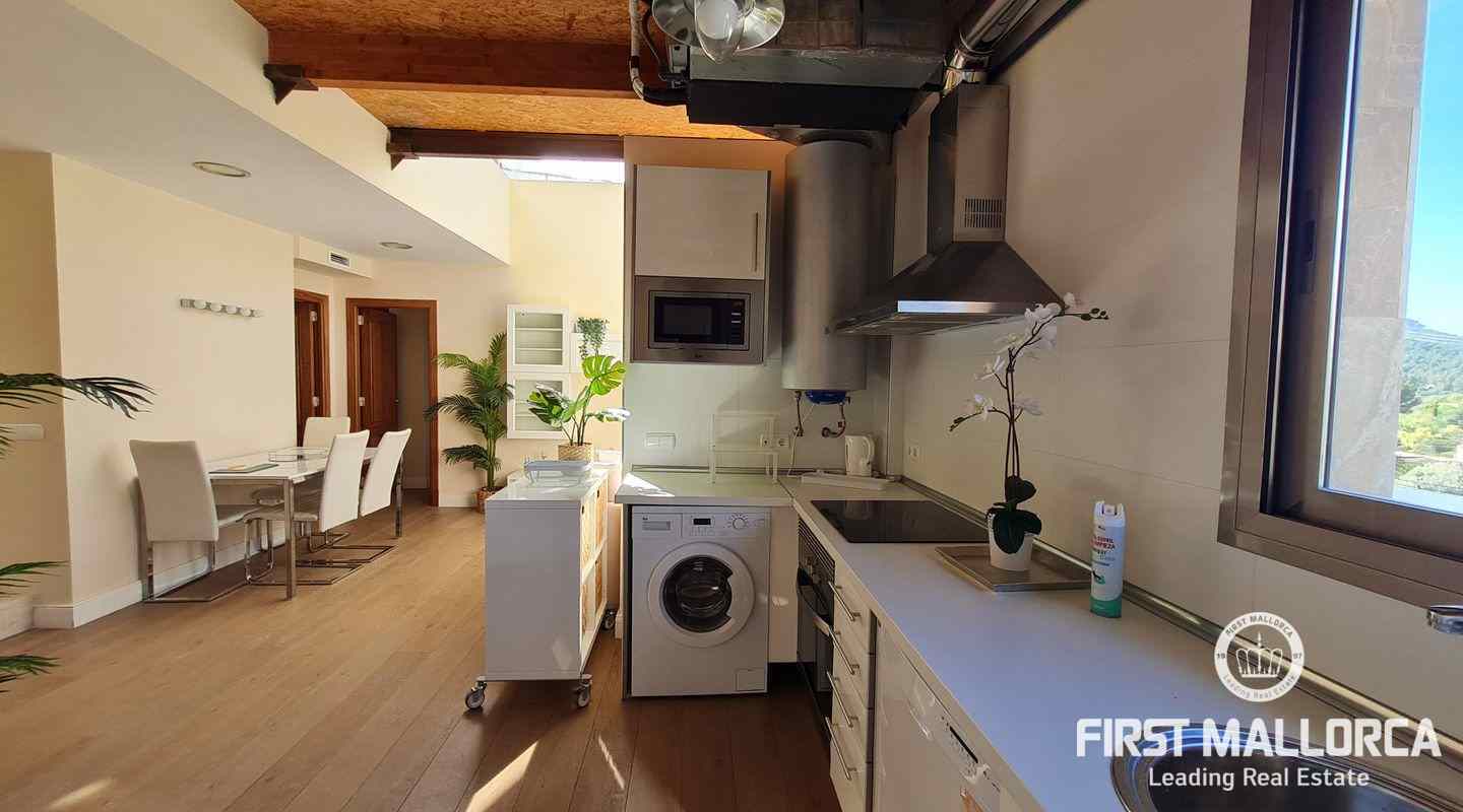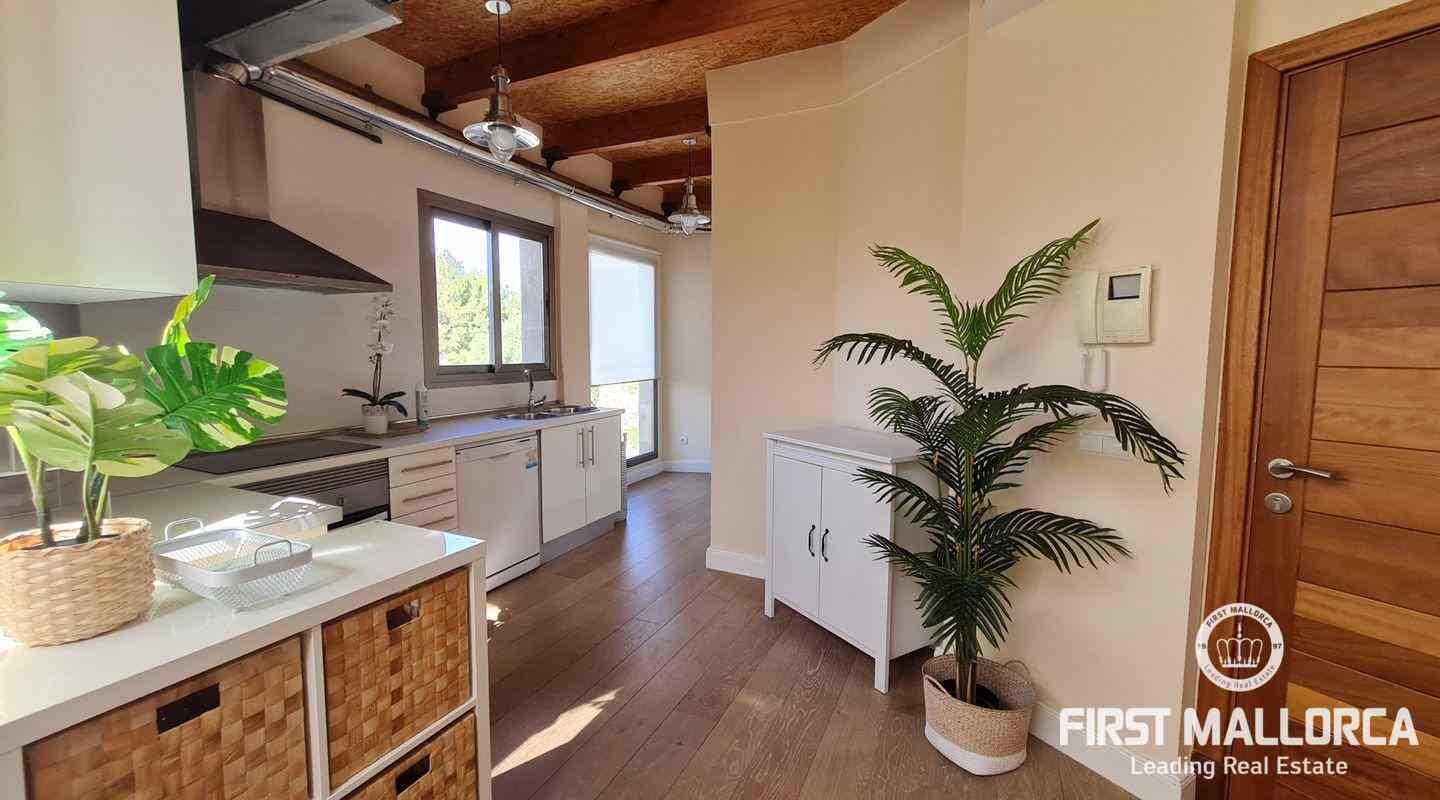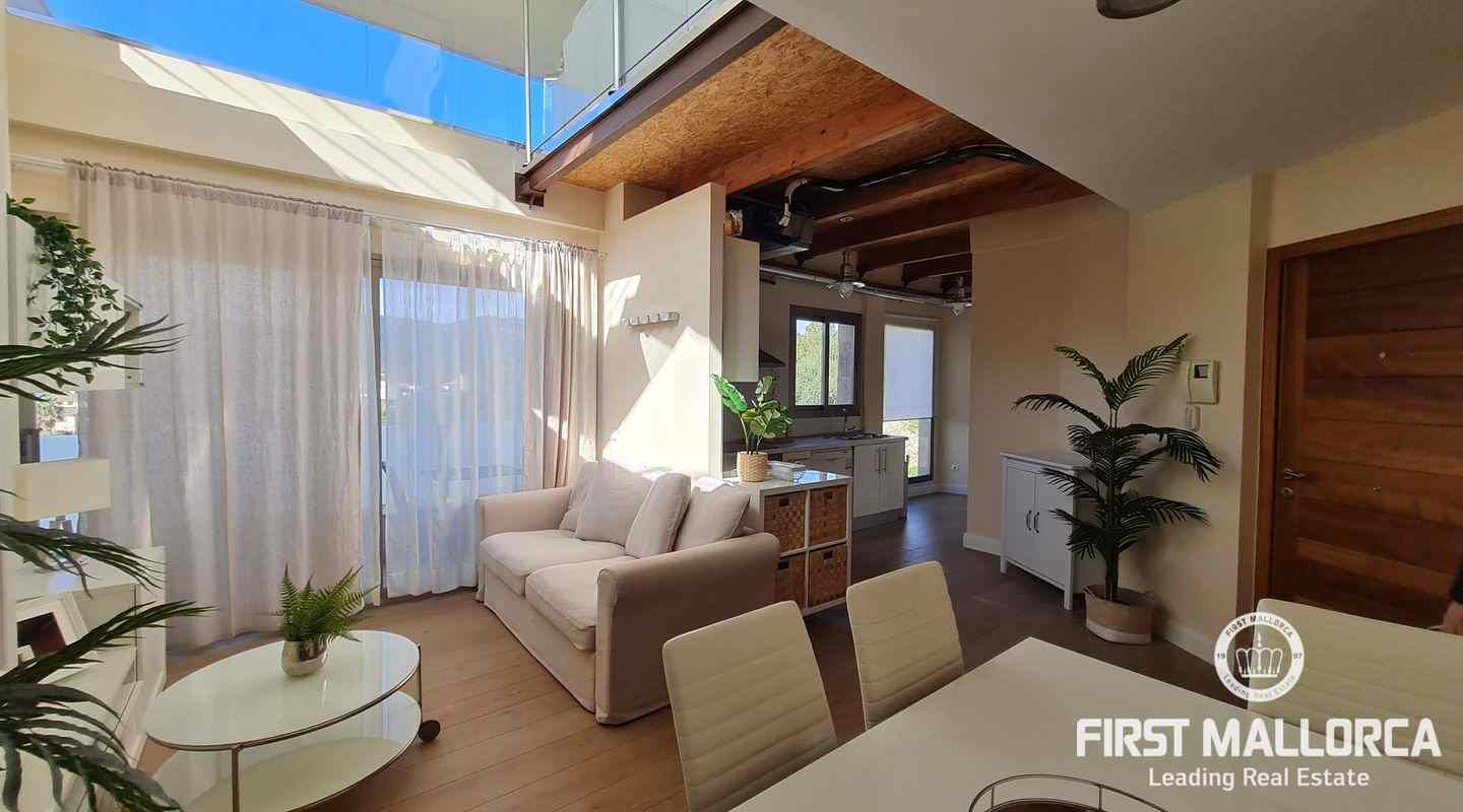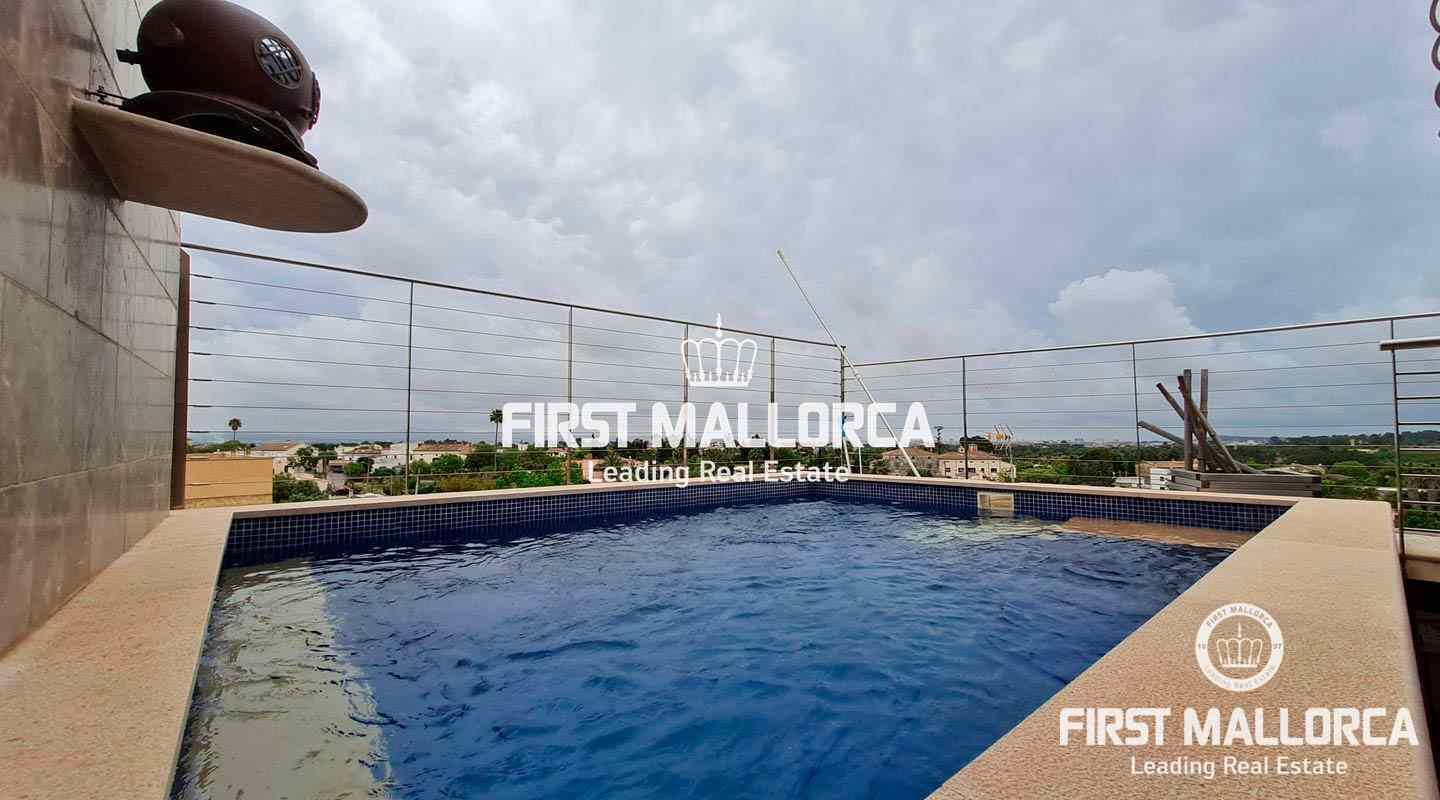 Förstklassig takvåning i Establiments, endast 10 minuter från Palma. Ett perfekt utrymme för att njuta av den lugna atmosfären, tack vare dess imponerande utsikt över dalen och Tramuntana-bergen. Bottenvåningen har ett fullt utrustat kök integrerat med vardagsrummet. Detta utrymme har en rymlig balkong med panoramautsikt. Den består av två rymliga och ljusa sovrum, båda med eget badrum. På andra våningen finns ett ytterligare vardagsrum med ett idealiskt hörn för avkoppling eller som arbetsplats eller kontor. De stora fönstren gör att du kan njuta av rikligt med naturligt ljus under hela dagen. På tredje våningen finns ett mysigt solarium, perfekt för att betrakta solnedgångar över bergen. Dessutom har fastigheten en modern privat pool och tillgång till gemensam parkering.