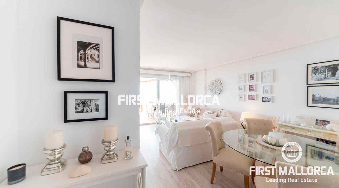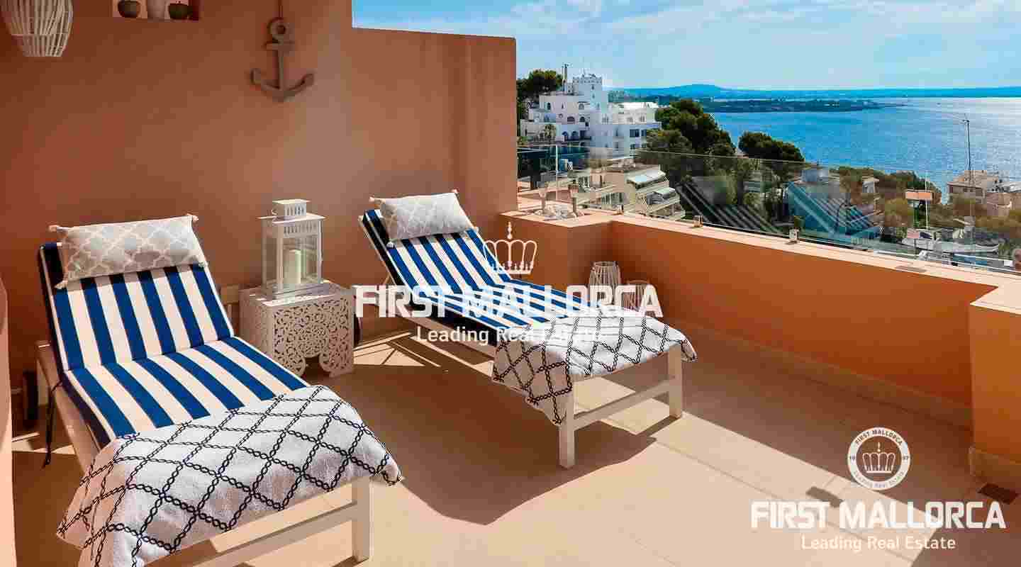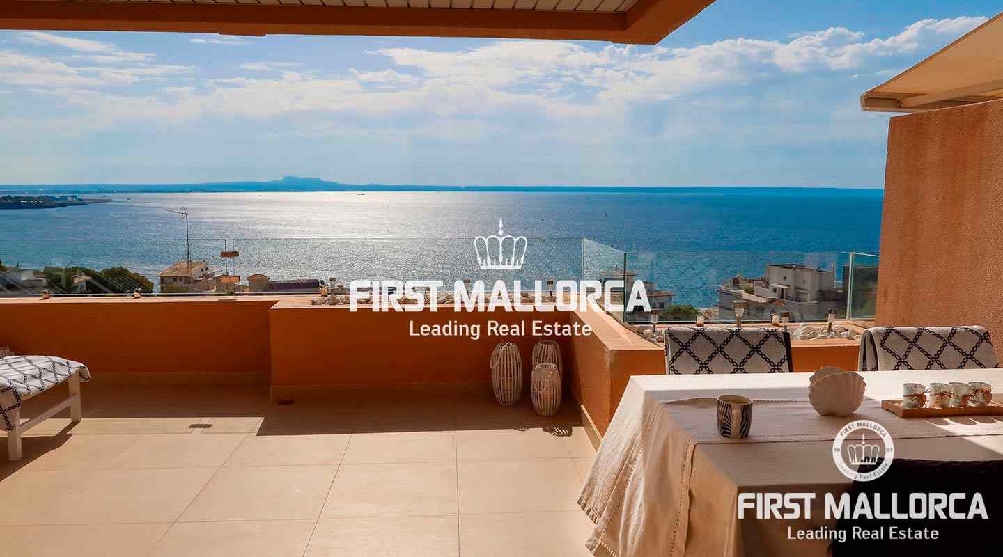 Vi har nöjet att exklusivt erbjuda denna pärla av lägenhet i ett utmärkt läge i Illetas med den mest spektakulära utsikten över Palmabukten och bortom den.