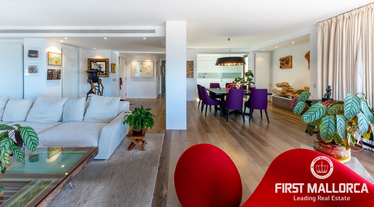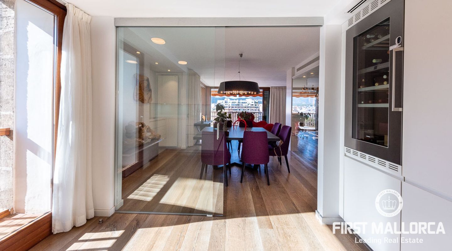 Spektakulär lägenhet i Paseo Mallorca på 210 m² som är helt renoverad med högkvalitativa material. Fastigheten erbjuder en elegant och funktionell design med tre sovrum och två badrum, ett av dem med eget badrum, vilket garanterar komfort och avskildhet. Den underbara utsikten över hamnen och staden ger en makalös charm. Det fullt utrustade och rymliga köket gör att du kan laga utsökta måltider samtidigt som du umgås med dina gäster. Vardagsrummet utmärker sig för sin intelligenta planlösning med separata matplatser och sociala ytor samt en extraordinär terrass som förlänger det inre utrymmet. Läget är privilegierat, så att du kan njuta av Palmas charm till fots: kända restauranger, köpcentrum, exklusiva butiker och kulturella platser ligger alla inom bekvämt räckhåll. Ett mervärde är de två parkeringsplatserna, en oumbärlig tillgång i staden som underlättar tillgången till flygplatsen såväl som till vilken punkt som helst på ön. En fastighet som kombinerar lyx, funktionalitet och ett oslagbart läge.