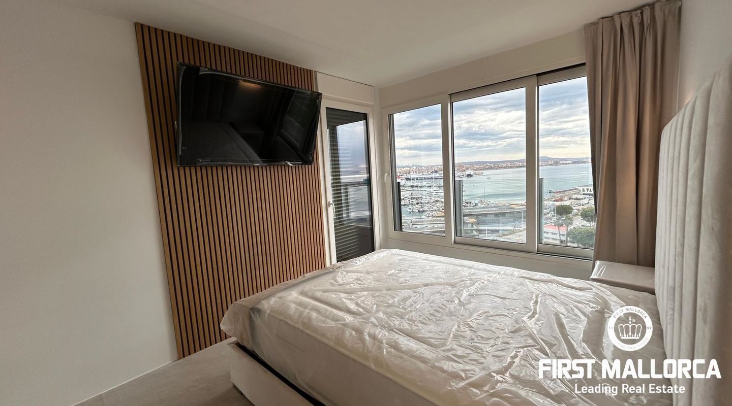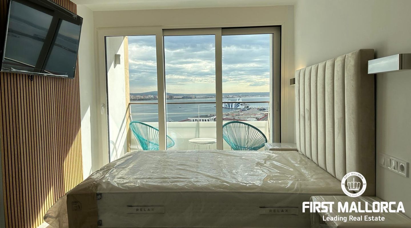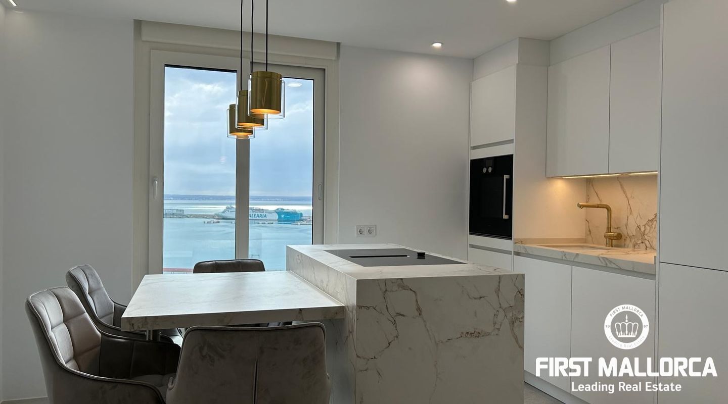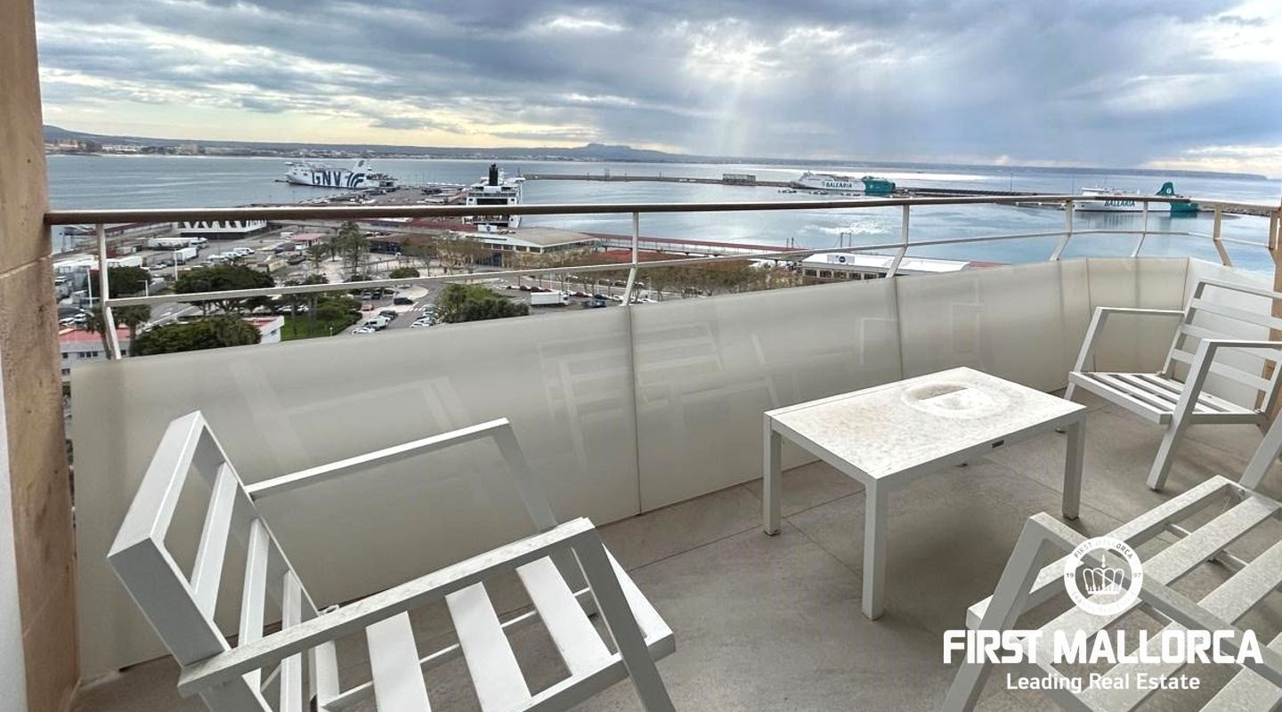 Takvåning totalrenoverad med material av bästa kvalitet. Fantastisk utsikt över bergen, havet, hamnen och katedralen i Palma. Beläget på strandpromenaden, ett av de mest eftertraktade områdena på ön, nära restauranger, barer och butiker.