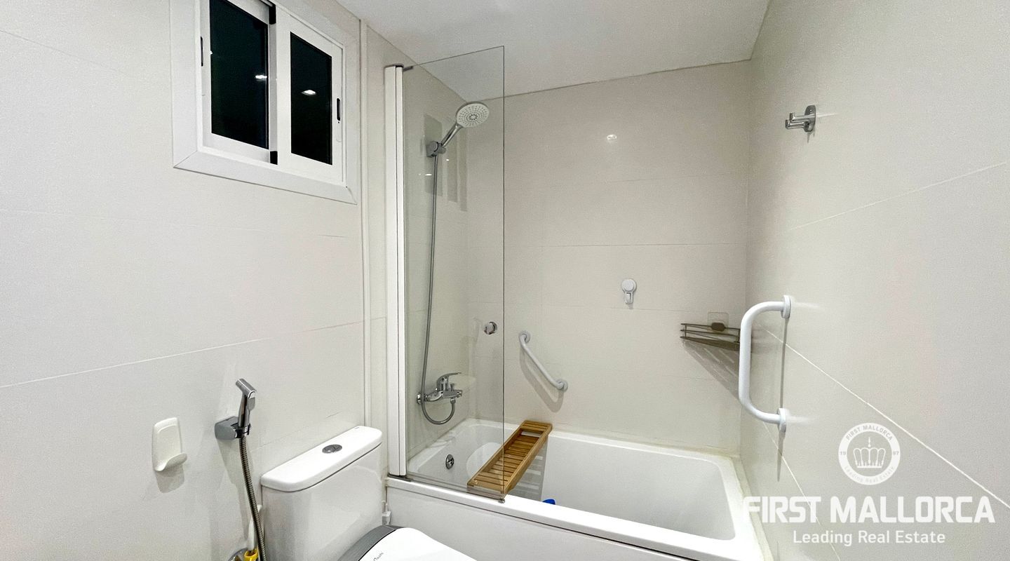 Det rymliga badrummet är utrustat med en modern, rymlig dusch med walk-in-lösning och kombinerar komfort med stil. Här finns även ett separat, fullt utrustat kök samt ett mysigt vardagsrum med matplats, perfekt för avkoppling eller för att ta emot gäster. Härifrån når man en liten charmig balkong, idealisk för morgonkaffet eller kvällsbrisen.