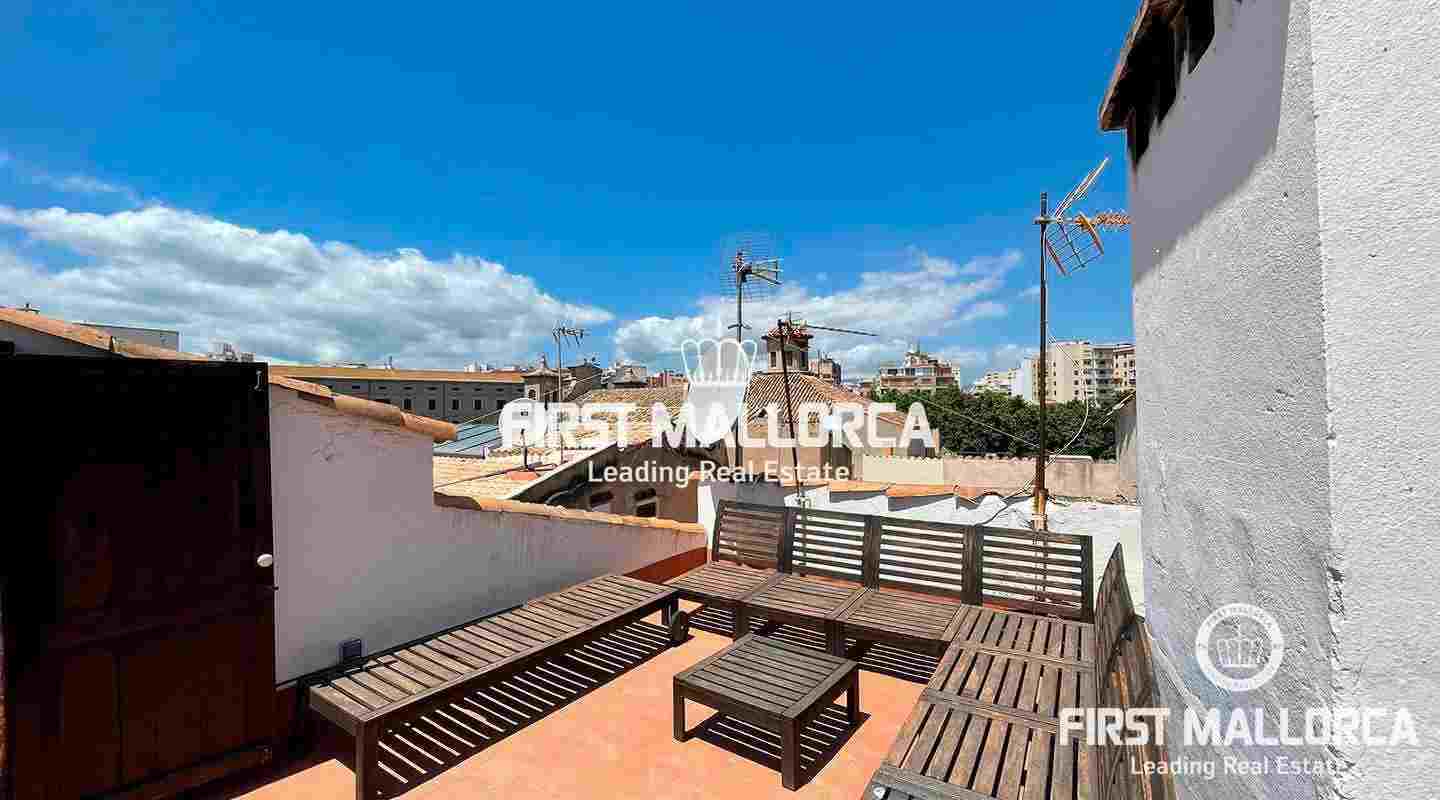 Den lugna lägenheten i gamla stan ligger i ett vackert och för Palma typiskt radhus med totalt endast 5 bostadsrätter. Lägenheten har ett rymligt vardagsrum, ett stort matrum, ett kök, tre sovrum, ett badrum och ett mindre rum som fortfarande kan disponeras fritt. En höjdpunkt i lägenheten är de gamla dörrarna, som har tillverkats speciellt. Det finns också en gemensam takterrass med fantastisk utsikt över Palmas tak. Det är en idealisk plats för alla som vill uppleva Palma och samtidigt vila. Lägenheten på första våningen kan också köpas (listing 71839).