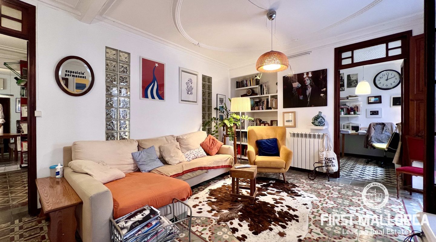 Belägen på första våningen i en byggnad belägen på en central men lugn gata i Palma, har denna 122m2 stora lägenhet renoverats för några år sedan, med bibehållen sin traditionella karaktär och avstånd från sitt vardagsrum för att ge mer ljus till utrymmet. Den består av ett vardagsrum-matsal, ett kök, 3 sovrum, 1 badrum (det finns möjlighet att göra ett andra), flera rum, en balkong, en privat uteplats och en gemensam takterrass. Dess hydrauliska golv tillsammans med dess träfönster och dörrar är en annan attraktion i denna fastighet. Den har centralvärme med stadsgas. En trevlig och bekväm fastighet att bo på. Godkände den tekniska byggnadsbesiktningen