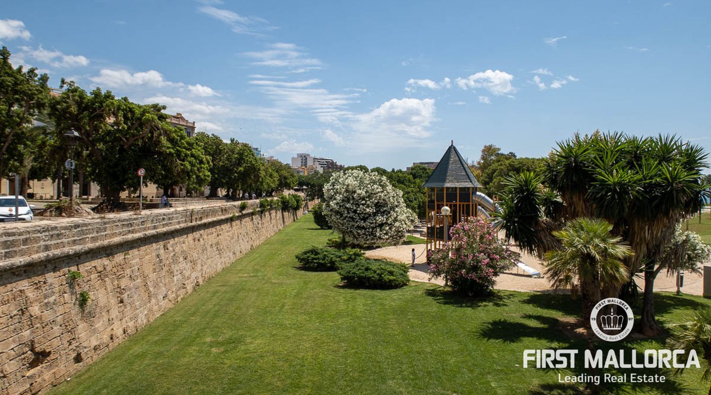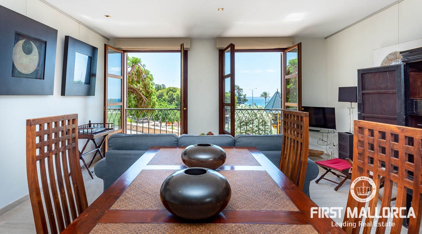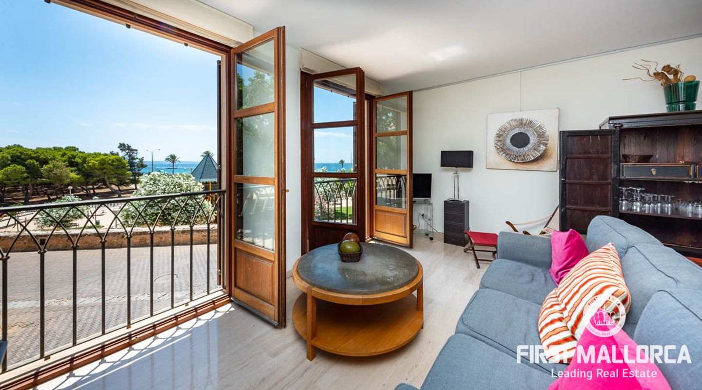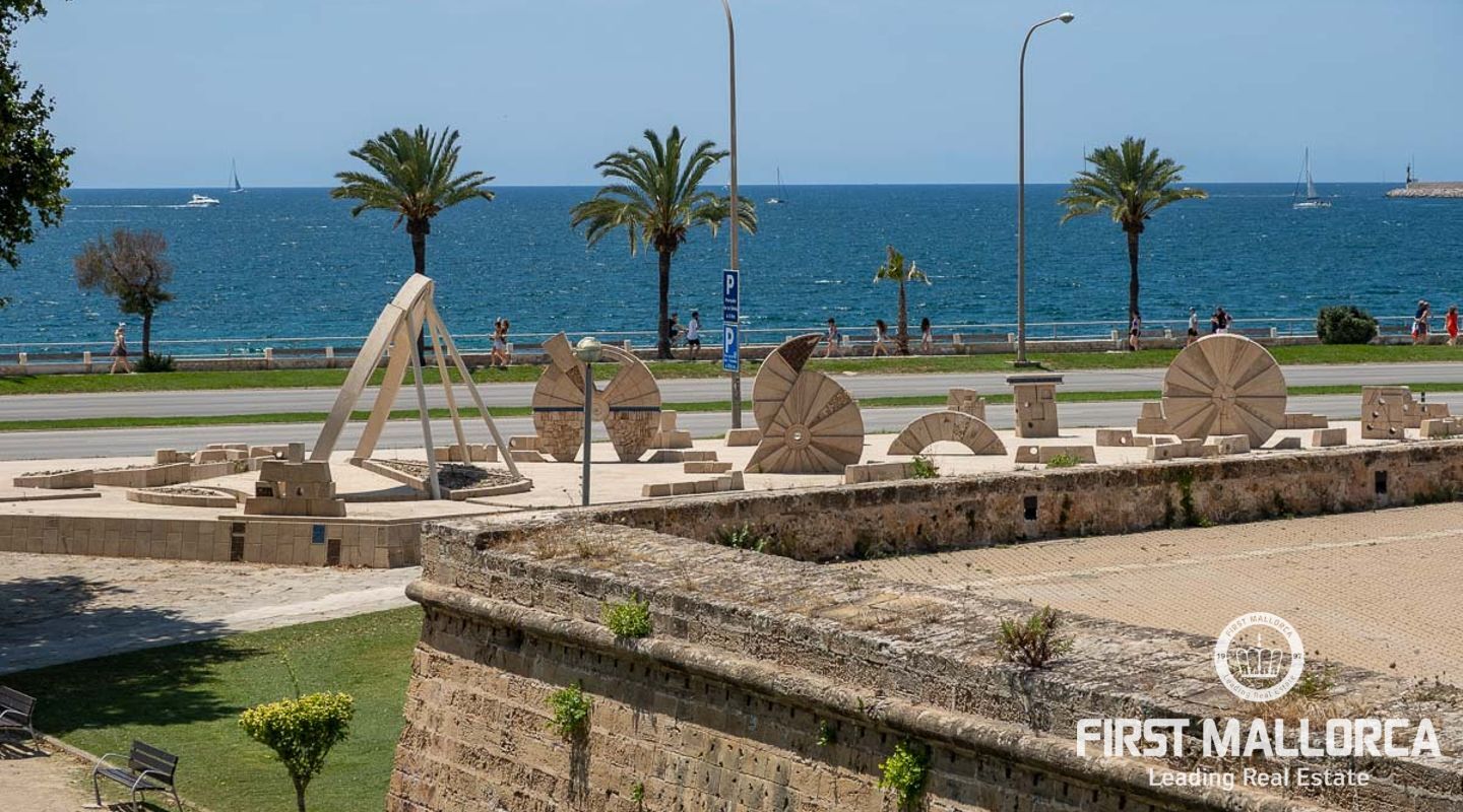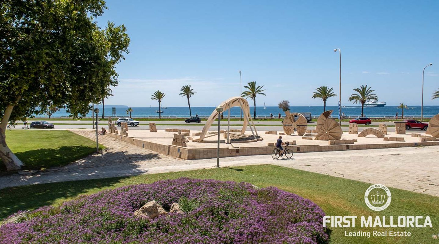 Rymliga bostäder är sällsynta i Palma, men lyckligtvis är detta en av dem. Dess 118m2 är fördelade på ett idylliskt sätt, med resultatet att både vardagsrummet och de två sovrummen har havsutsikt. När du kommer in i entrén finns det på höger sida en gästtoalett och det oberoende köket, som har tillräckligt med utrymme för att ha ett frukostbord. Längre fram finns vardagsrummet med franska balkonger och utsikt över parken och havet. Fortsätter vi framåt hittar vi de två sovrummen med två kompletta badrum.