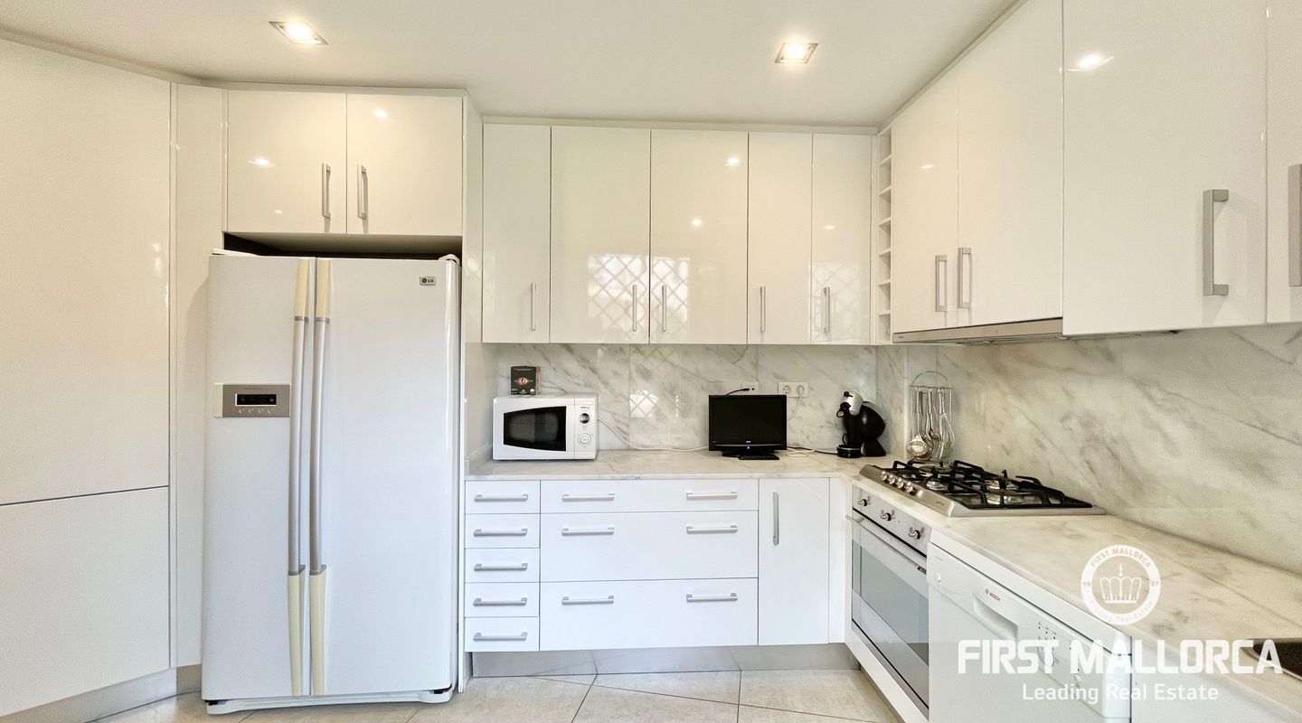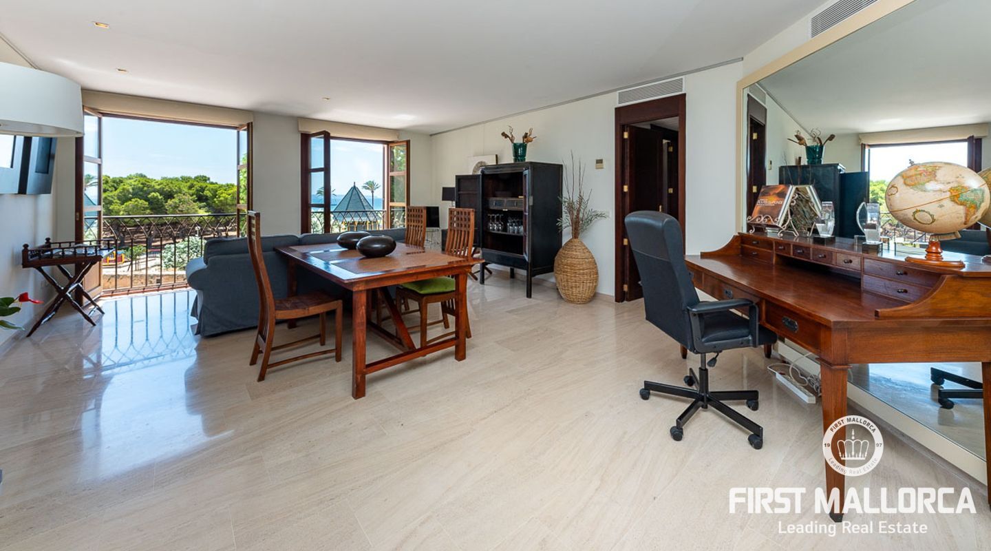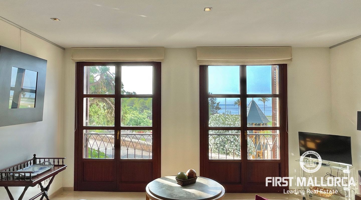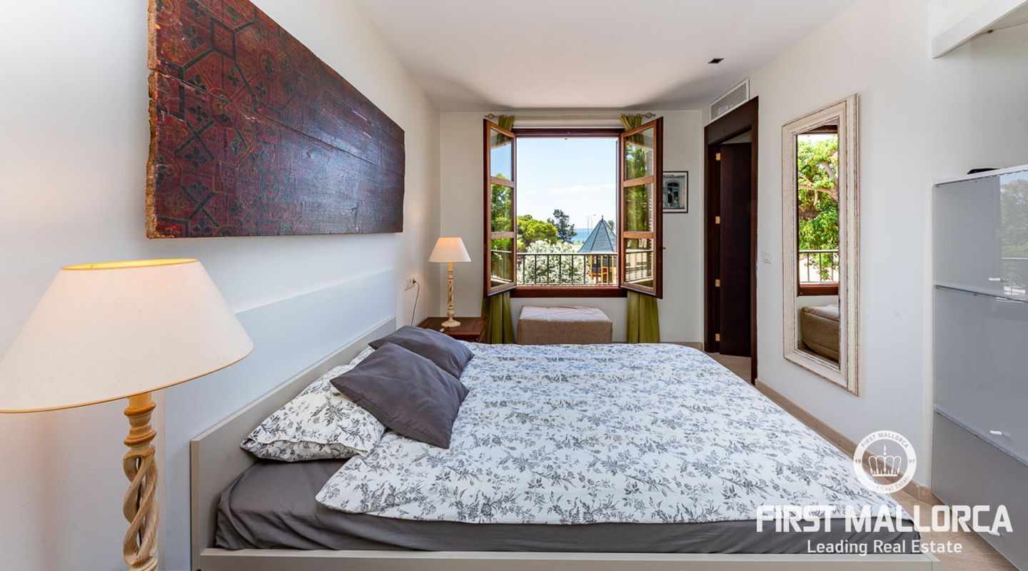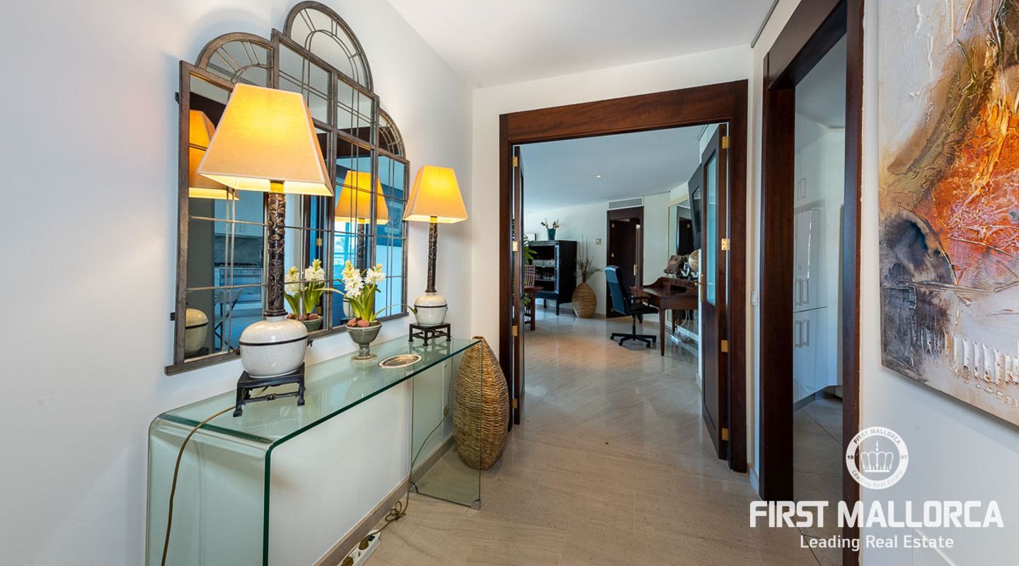 Rymliga bostäder är sällsynta i Palma, men lyckligtvis är detta en av dem. Dess 118m2 är fördelade på ett idylliskt sätt, med resultatet att både vardagsrummet och de två sovrummen har havsutsikt. När du kommer in i entrén finns det på höger sida en gästtoalett och det oberoende köket, som har tillräckligt med utrymme för att ha ett frukostbord. Längre fram finns vardagsrummet med franska balkonger och utsikt över parken och havet. Fortsätter vi framåt hittar vi de två sovrummen med två kompletta badrum.