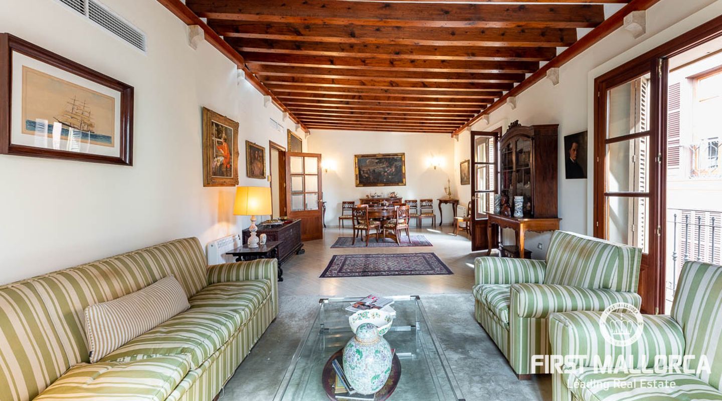 First Mallorca är glada att kunna erbjuda denna eleganta lägenhet, i ett av de mest exklusiva och eleganta historiska kvarteren i Palma de Mallorca, bara några meter från Plaza Mayor, Plaza Cort och andra viktiga områden i den baleariska huvudstaden. Dess cirka 175m2 är fördelade på tre sovrum, två badrum och en toalett, kök och ett stort vardagsrum, med utsikt över de eleganta historiska byggnaderna i staden. Det stora sovrummet har eget badrum och ett omklädningsrum, medan de andra två delar det andra badrummet. Det speciella med denna lägenhet är verkligen hissen, som går från garaget in i fastigheten, medan det är vardagsrummet, med sin konst och historiska element som skiljer denna fantastiska egendom. I priset ingår också en rymlig underjordisk parkeringsplats, mycket viktig i centrum av Palma. Vi anser att med en renovering kan denna fastighet bli en absolut juvel i en av de mest eleganta byggnaderna i staden.
