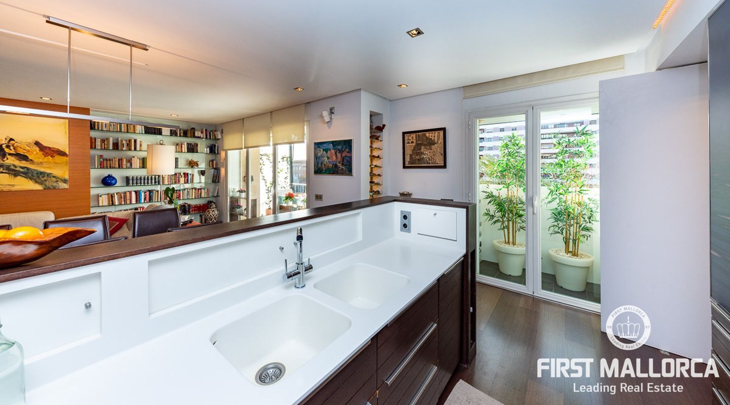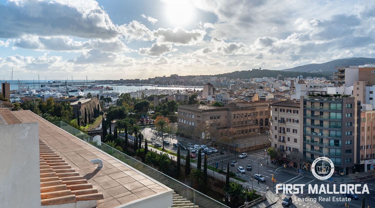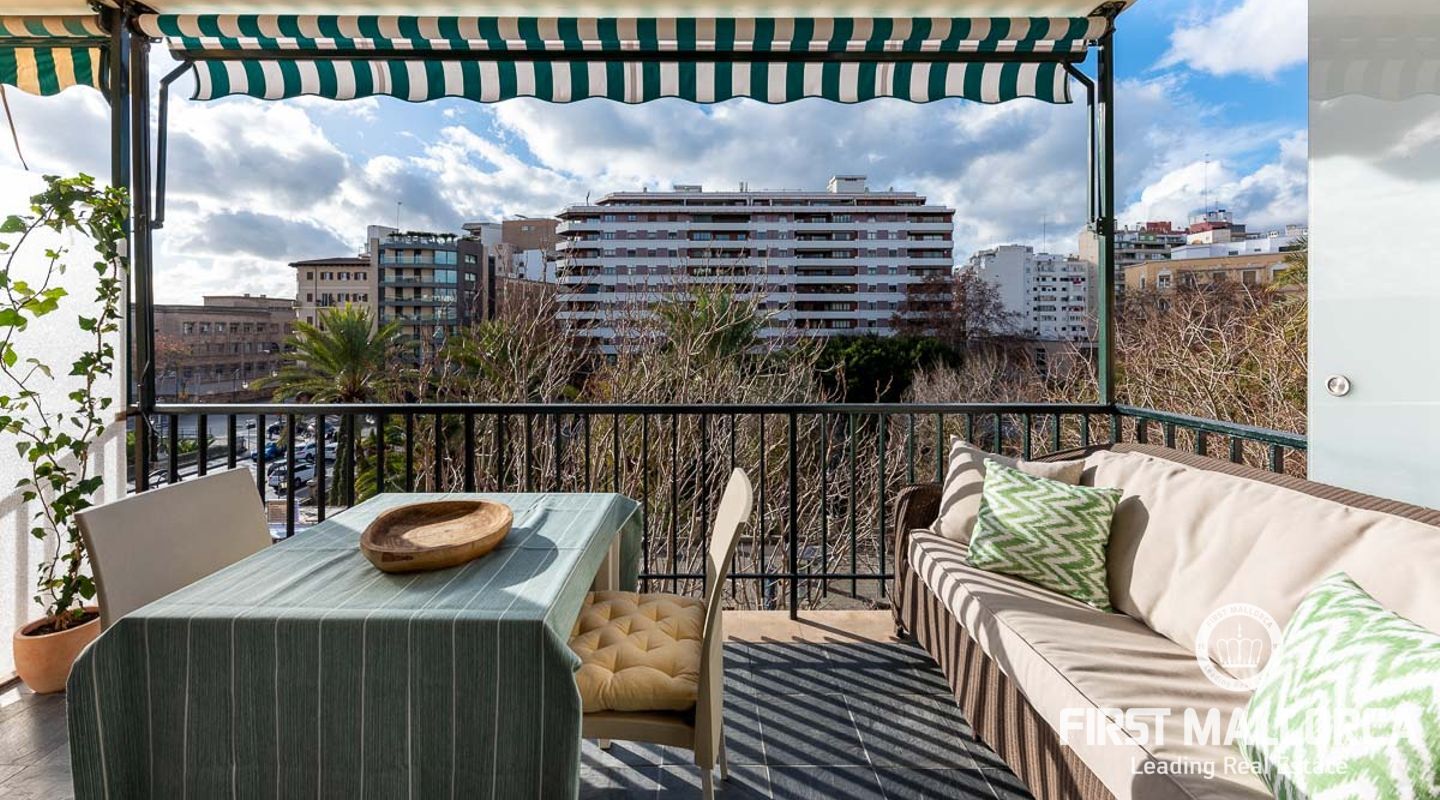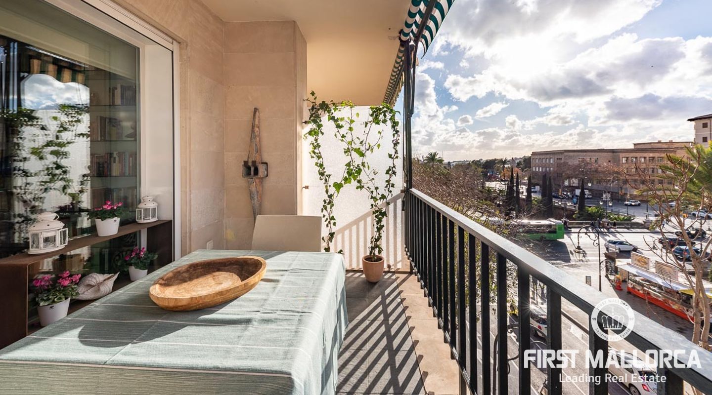 Fantastisk lägenhet i centrala Palma. Den 150 m2 stora lägenheten har två sovrum fördelade i båda ändarna av lägenheten. Det stora vardagsrummet har sin egen personliga charm, det öppna fullt utrustade köket med tillgång till en underbar terrass med utsikt över staden och hamnen.