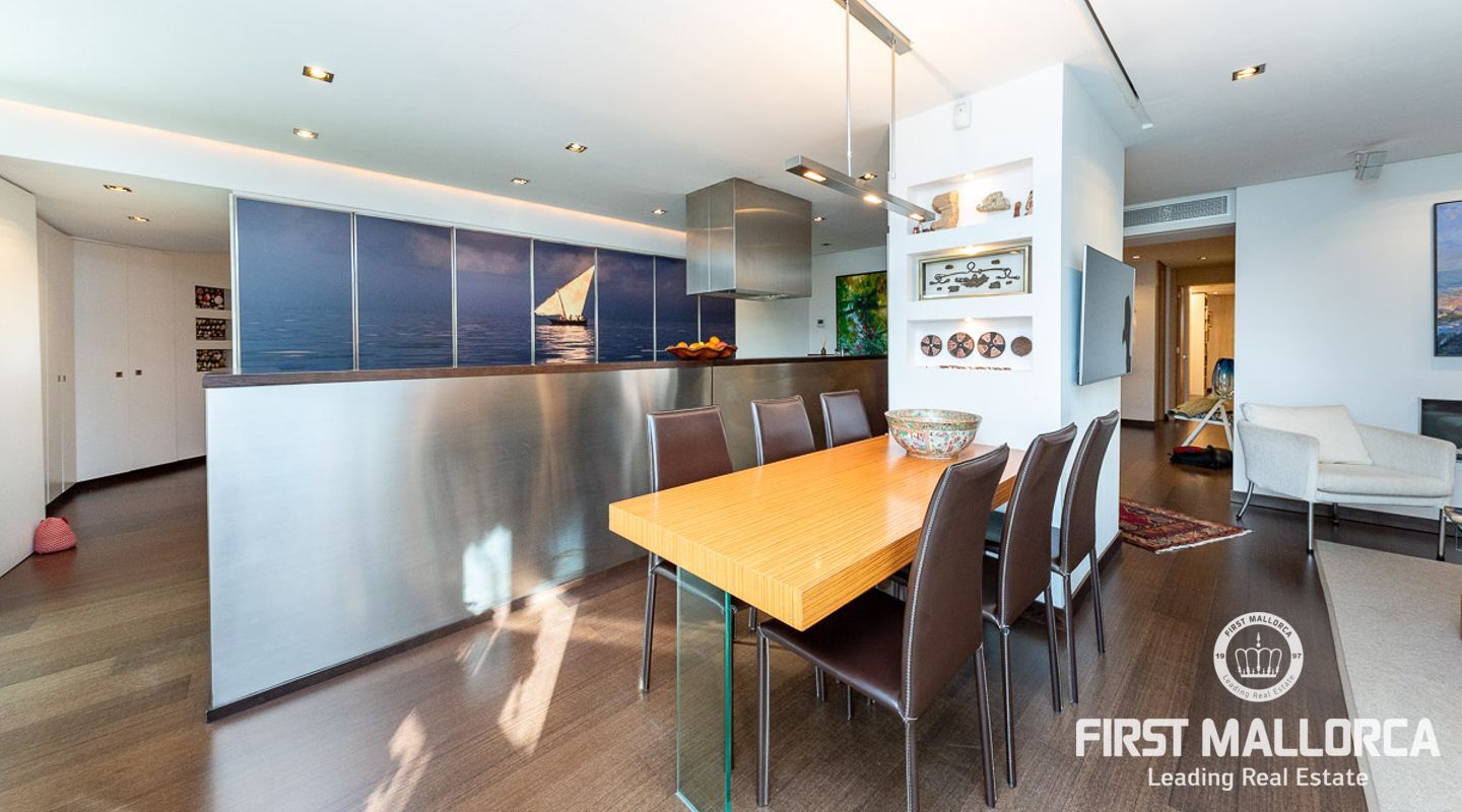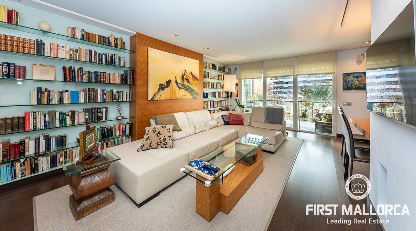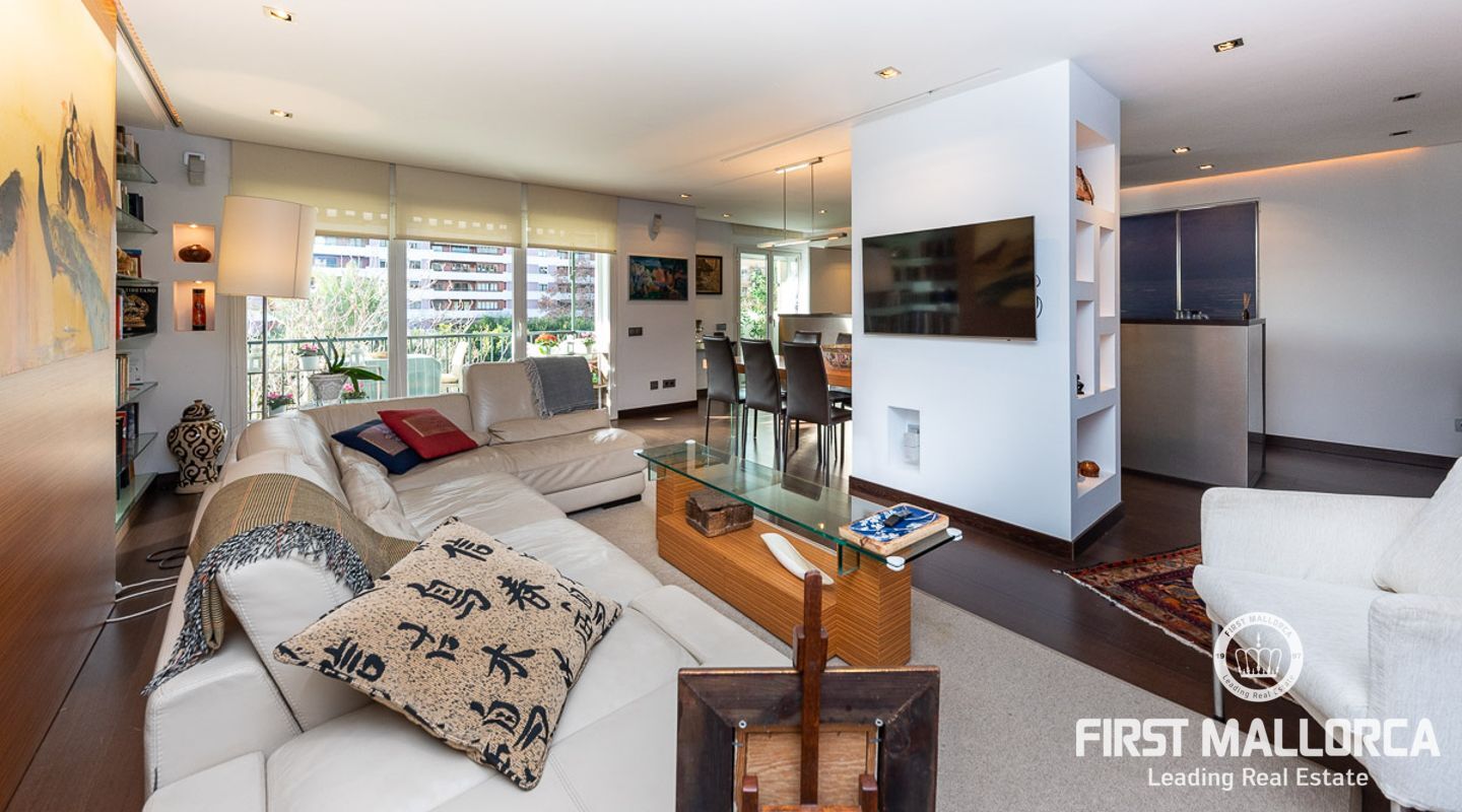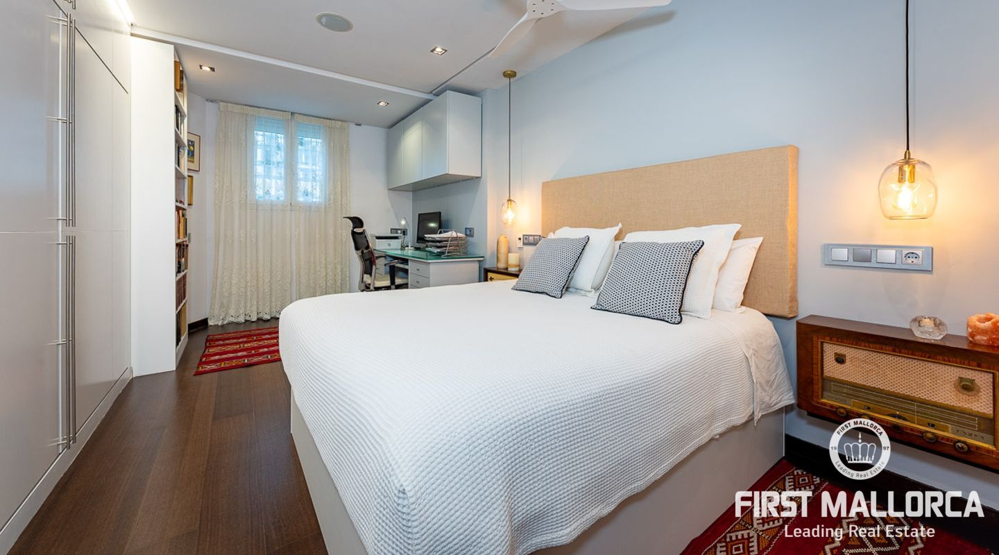 Fantastisk lägenhet i centrala Palma. Den 150 m2 stora lägenheten har två sovrum fördelade i båda ändarna av lägenheten. Det stora vardagsrummet har sin egen personliga charm, det öppna fullt utrustade köket med tillgång till en underbar terrass med utsikt över staden och hamnen.