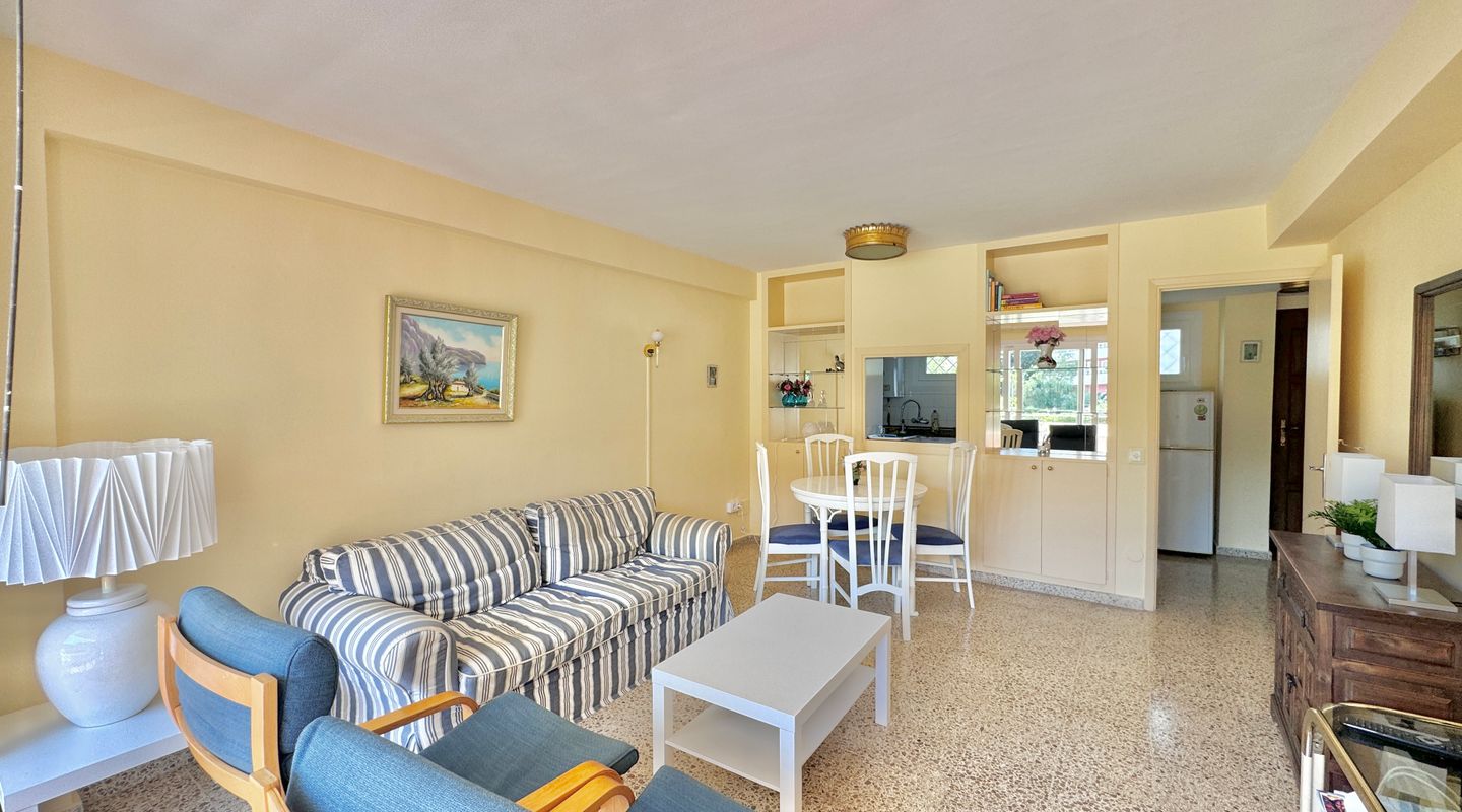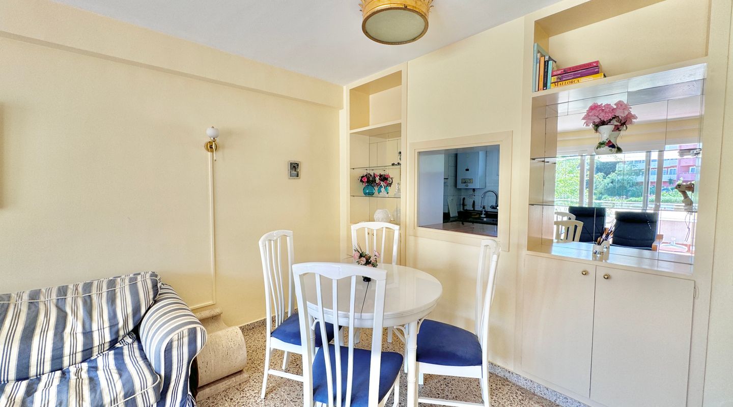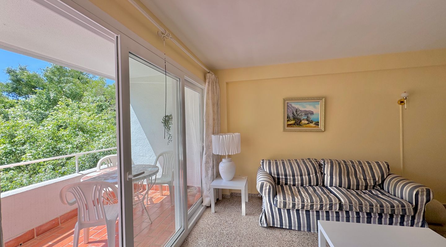 Denna lägenhet är mysig och har en yta på cirka 60 kvadratmeter, med ett stort sovrum och ett separat badrum. Vardagsrummet/matplatsen leder direkt till terrassen. Med en lättillgänglig hiss erbjuder lägenheten möjligheten till en utmärkt renovering för att skapa en individuell bostadsyta enligt dina önskemål. Det bekväma läget nära kollektivtrafik, affärer, tjänster, skolor, stränder, golfbanor samt staden och flygplatsen gör det till det perfekta valet för dem som värdesätter komfort och tillgänglighet. Denna fastighet är idealisk för yachtägare eller som ett andra hem.