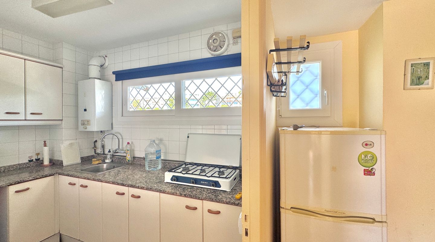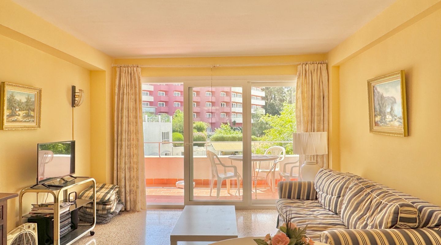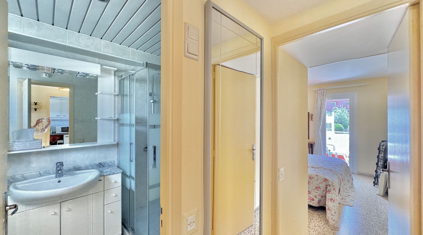 Denna lägenhet är mysig och har en yta på cirka 60 kvadratmeter, med ett stort sovrum och ett separat badrum. Vardagsrummet/matplatsen leder direkt till terrassen. Med en lättillgänglig hiss erbjuder lägenheten möjligheten till en utmärkt renovering för att skapa en individuell bostadsyta enligt dina önskemål. Det bekväma läget nära kollektivtrafik, affärer, tjänster, skolor, stränder, golfbanor samt staden och flygplatsen gör det till det perfekta valet för dem som värdesätter komfort och tillgänglighet. Denna fastighet är idealisk för yachtägare eller som ett andra hem.