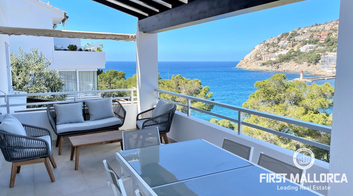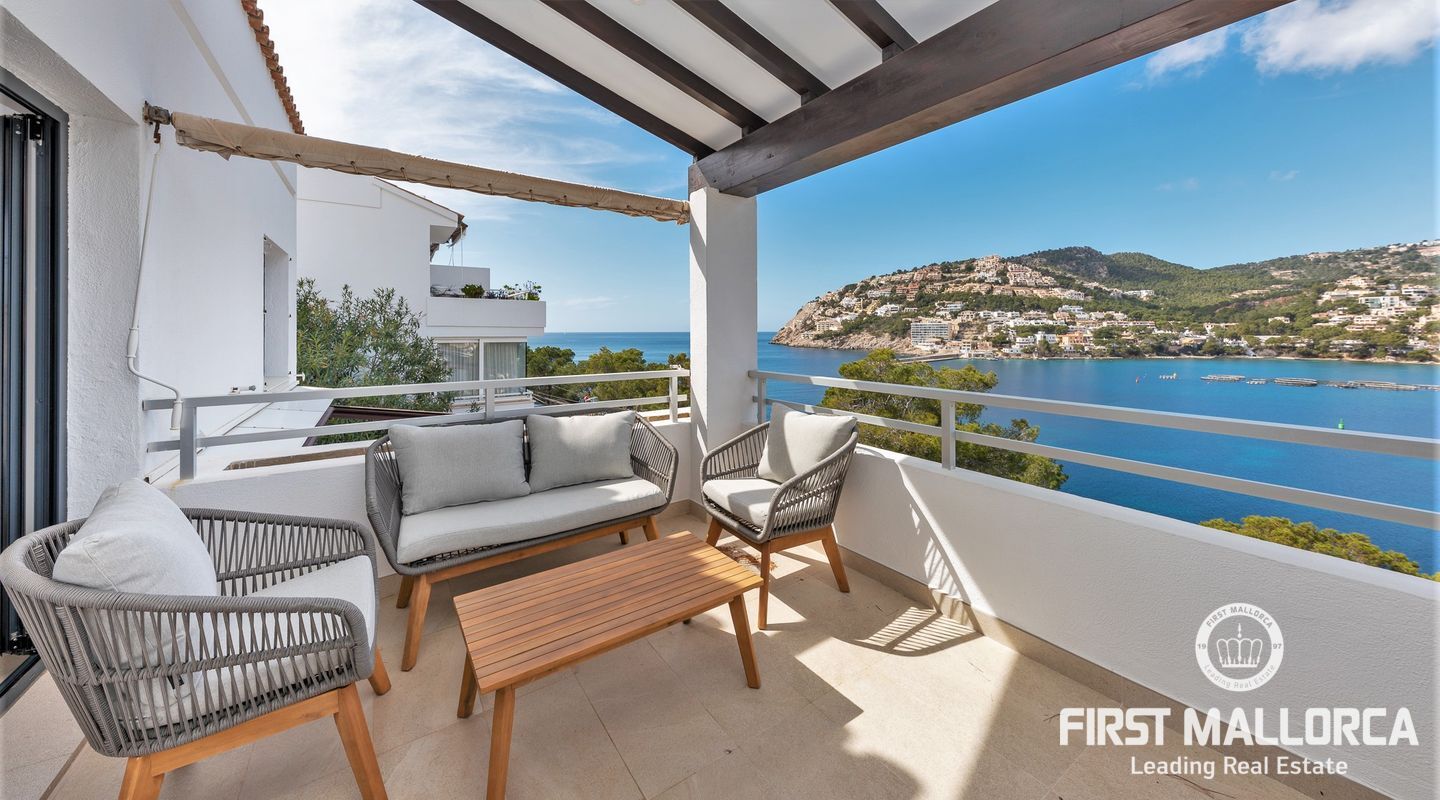 Denna vackert renoverade lägenhet med panoramautsikt över havet ligger bara en kort promenad från de kaféer, restauranger och butiker som Port Andratx har att erbjuda.