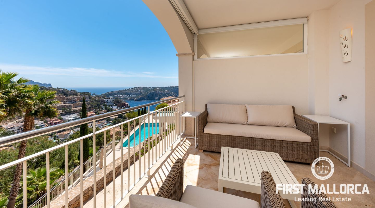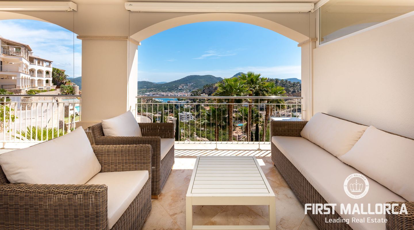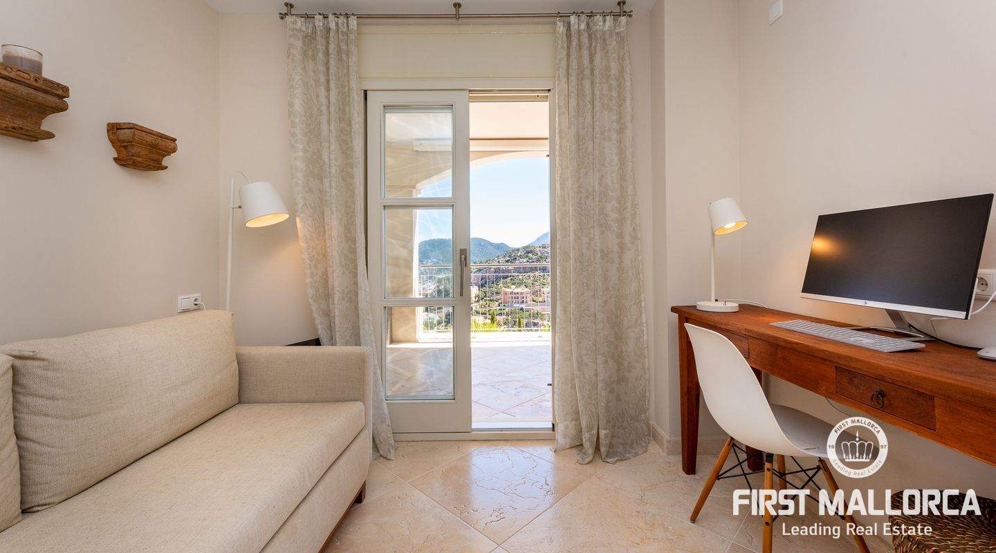 Förutom ett rymligt vardagsrum med öppet kök har lägenheten en mycket charmig terrass. Från vardagsrummet, det stora sovrummet och gästrummet kan du njuta av den hisnande utsikten över Puerto de Andratx hamn till vänster och La Mola och det öppna havet till höger. Två av sovrummen har badrum en suite och det finns ytterligare en gästtoalett. Det finns också ett litet tvättstuga med tvättmaskin och förvaringsmöjligheter.