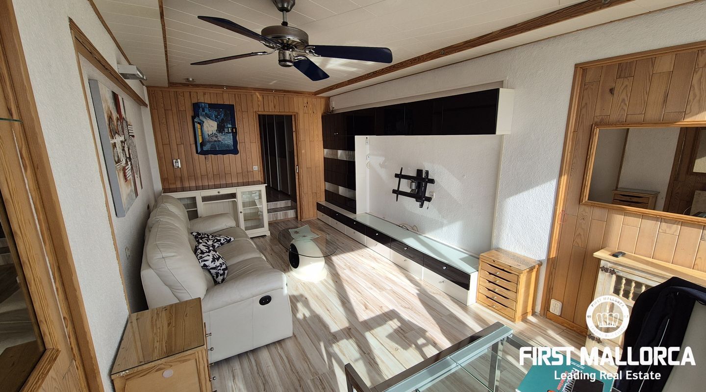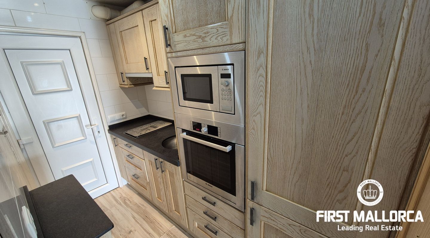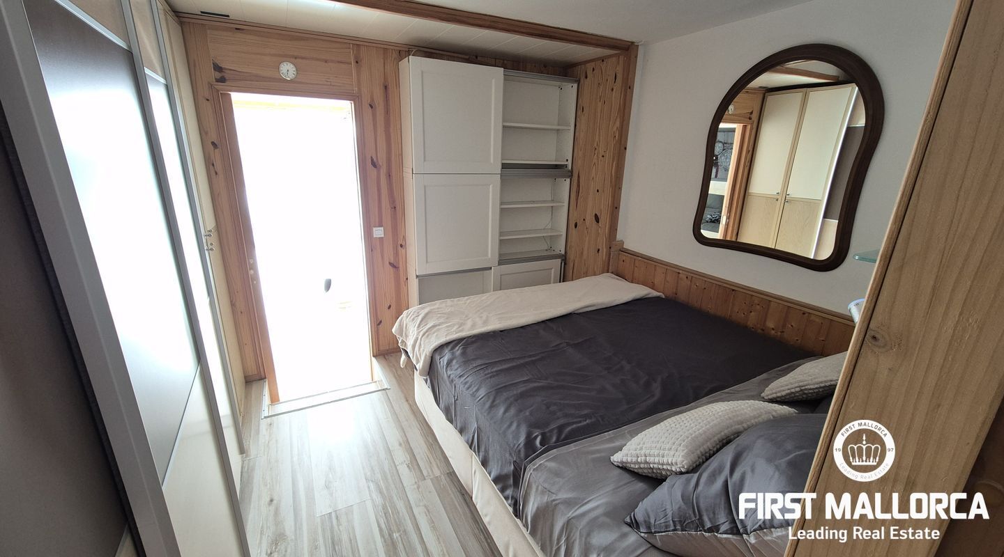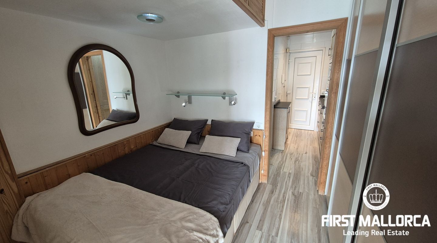 Denna studio i Santa Ponça erbjuder panoramautsikt över havet och ligger bara en kort promenad från stranden, butiker och lokala bekvämligheter. Den är nyligen renoverad med moderna material och har ett fullt utrustat kök, ett bekvämt sovrum och ett ljust vardagsrum med gott om naturligt ljus. Dess bekväma läge gör det också enkelt att promenera till kusten. Fastigheten är inflyttningsklar och är ett praktiskt val för ett semesterboende eller en investering.