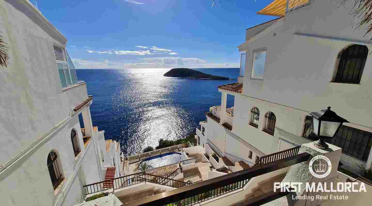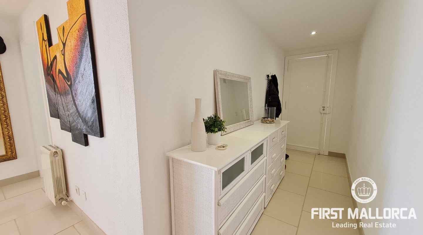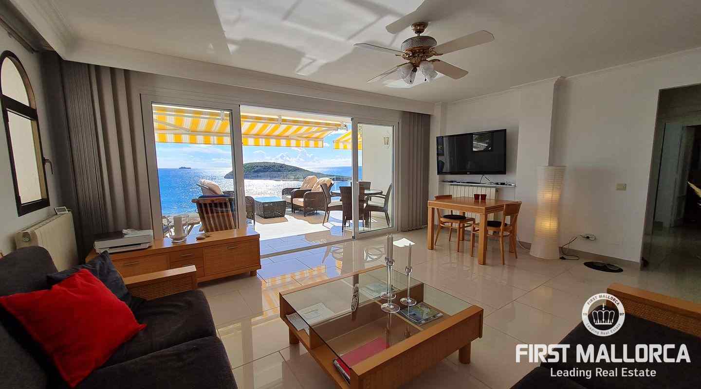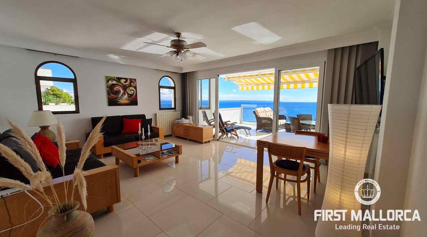 Denna rymliga lägenhet erbjuder en stor terrass praktiskt taget på vattnet i ett upphöjt läge i Torrenova med sol hela dagen och verkligen fantastisk havsutsikt. Fastigheten erbjuder ett vardagsrum / matsal med öppen planlösning med intilliggande kök och tvättstuga. Det finns totalt 4 sovrum, två delar ett badrum och vetter mot havet och de andra två på baksidan delar också ett badrum. Samhället är mycket välskött och erbjuder en gemensam pool vid havet och direkt tillgång till havet. Lägenheten säljs helt möblerad och inkluderar och off-street säker parkering för ett fordon. De spektakulära sandstränderna i Palmanova ligger inom några minuters gångavstånd från lägenheten, liksom ett stort utbud av restauranger, kaféer och butiker. Till centrum av öns huvudstad, Palma de Mallorca, tar det 10 minuter med bil och till den internationella flygplatsen ca 15 minuter.