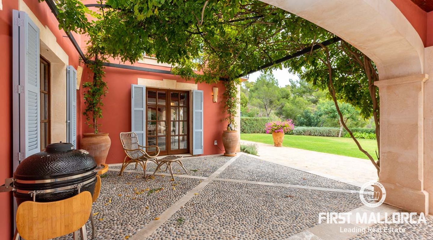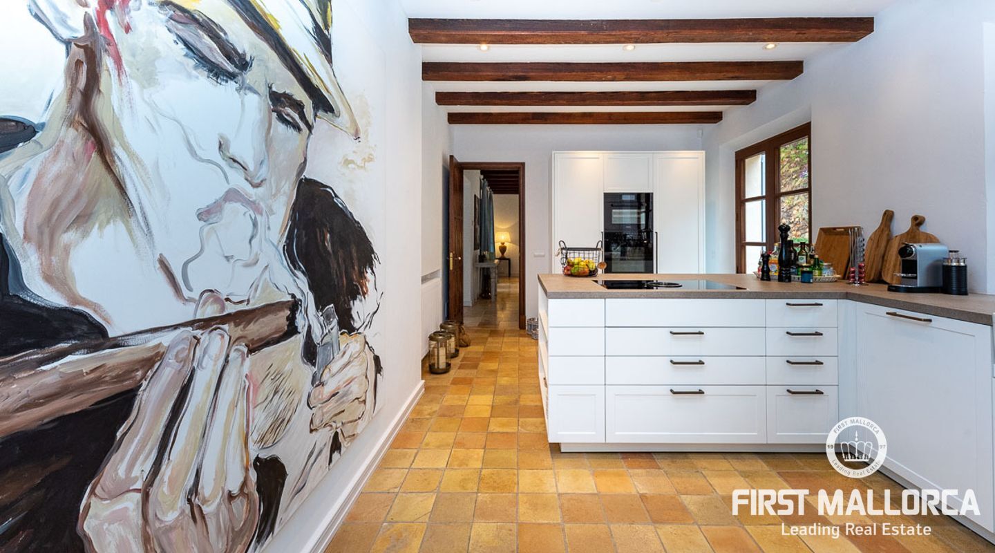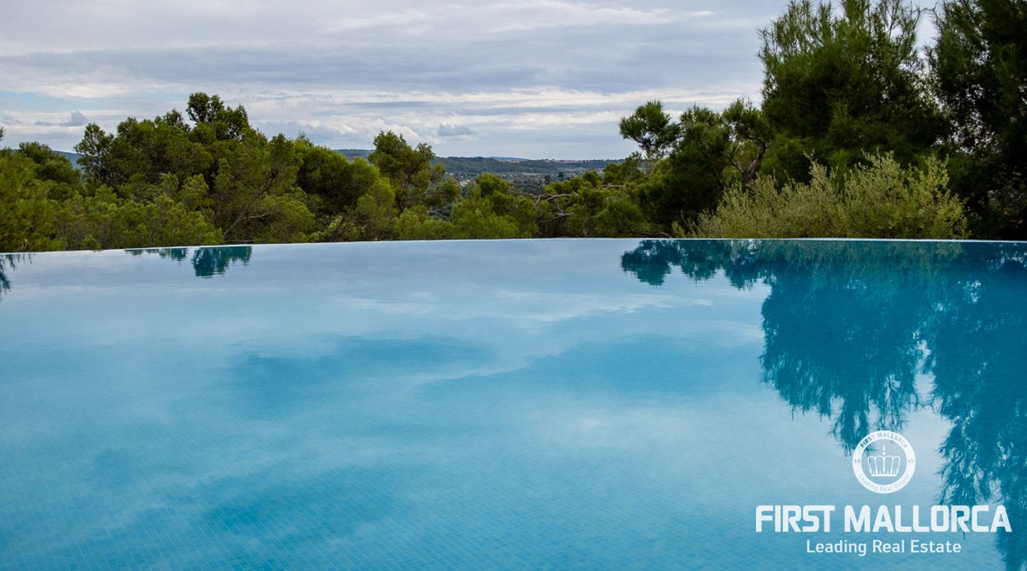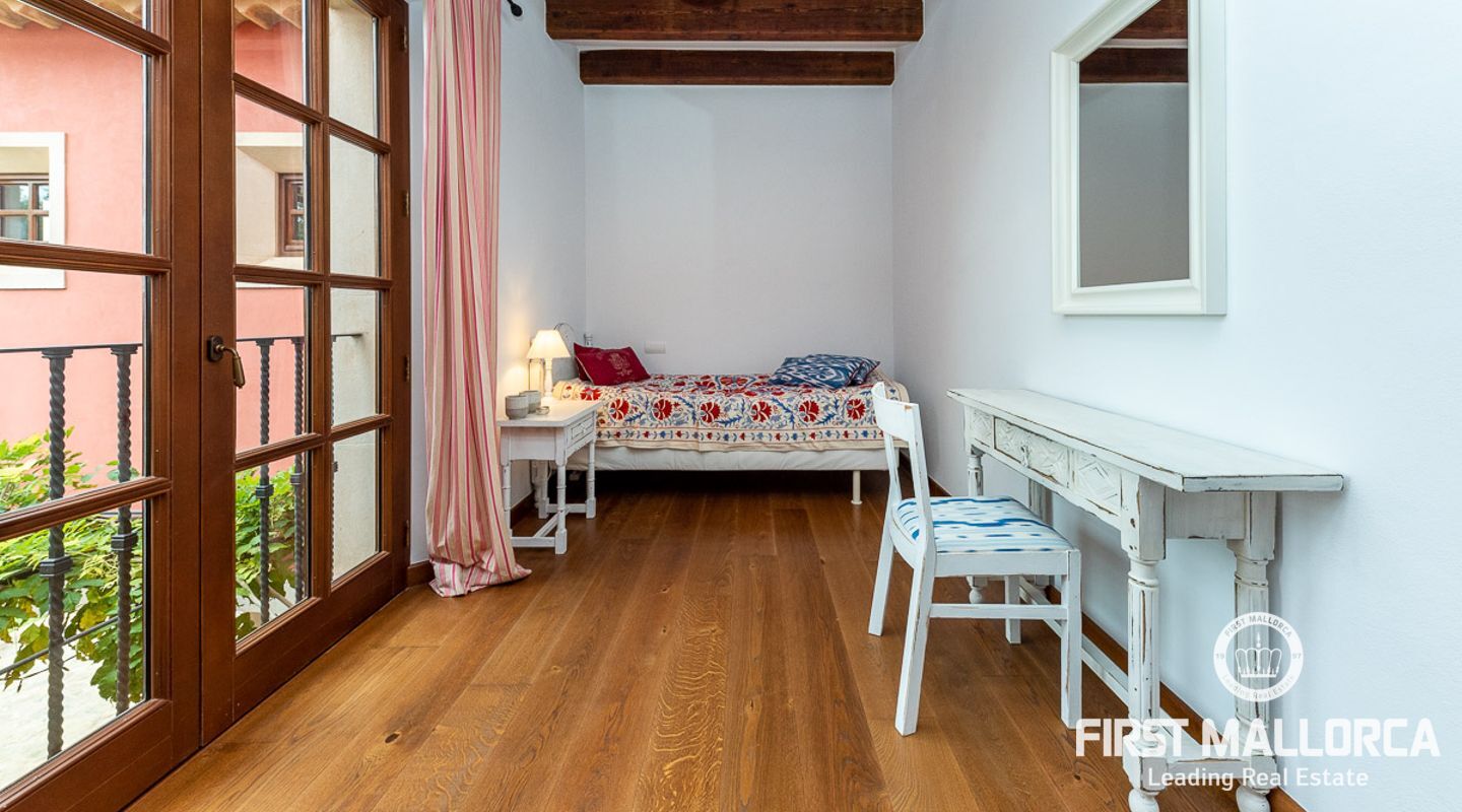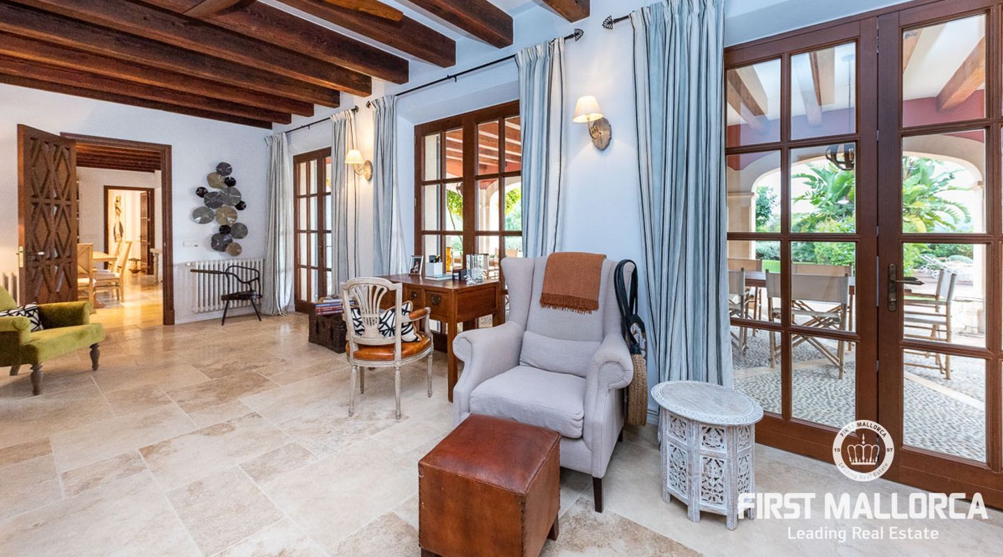 Denna vackra finca mellan Santa Maria och Bunyola, med snabb förbindelse till centrala Palma och flygplatsen Son San Joan, ligger i en naturmiljö utan motstycke. På toppen av ett bergsmassiv, med hisnande utsikt och i ett helt inhägnad och säkrat område. De ca 30.000 m2 mark är perfekt kombinerat med ett underbart landskapsarkitektur och trädgårdsarbete projekt. När du öppnar huvudporten kommer du in i en myriad av inhemska växter och blommor, som leker med sina former och former när du går upp till Fincas huvudingång, allt perfekt planerat, utformat och utformat. När vi kommer fram till huvudentrén möts vi av en sober och kraftfull byggnad som påminner om de mest typiska byggnaderna på Mallorca. Fasaderna, stenarna och materialen är en perfekt kombination av texturer och färger, vilket vittnar om den höga kvalitet som använts vid byggandet. Du kan redan känna vad som väntar dig bakom de vackra antika trädörrarna. ..... massor av ljus, öppna ytor, kvalitet och enastående utsikt! Fem sovrum alla med eget badrum och två gästlägenheter, en saltvattenpool på ca 80 m2, öppna och täckta terrasser som följer solens gång, ädla material som ekgolv av Schotten & Hansen, designkök av Birgitt Müller, tunga och starka träbjälkar i taket, natursten överallt och varje rum flyter in i nästa som om det vore en öppen yta. Om vi talar om den tekniska sidan är vi förvånade över att se att denna finca är helt självförsörjande och dess energikategori är den högsta möjliga A, vilket är mycket svårt att hitta på ön. Den är självförsörjande med sin egen vattenförsörjning med olika uttag, en solcellsstation och en dieselgenerator, luftkonditionering, golvvärme, larmsystem, musikkrets i hela Finca och många fler extrafunktioner. Ett dubbelgarage, gym, vinkällare, automatiskt bevattningssystem som täcker från grinden på gatunivå till det sista hörnet av huvudbyggnaden, är några av de extrafunktioner som avrundar denna trevliga och lugna fristad i en privilegierad miljö. I det här fallet kan vi skriva PRIVACY med stora bokstäver!