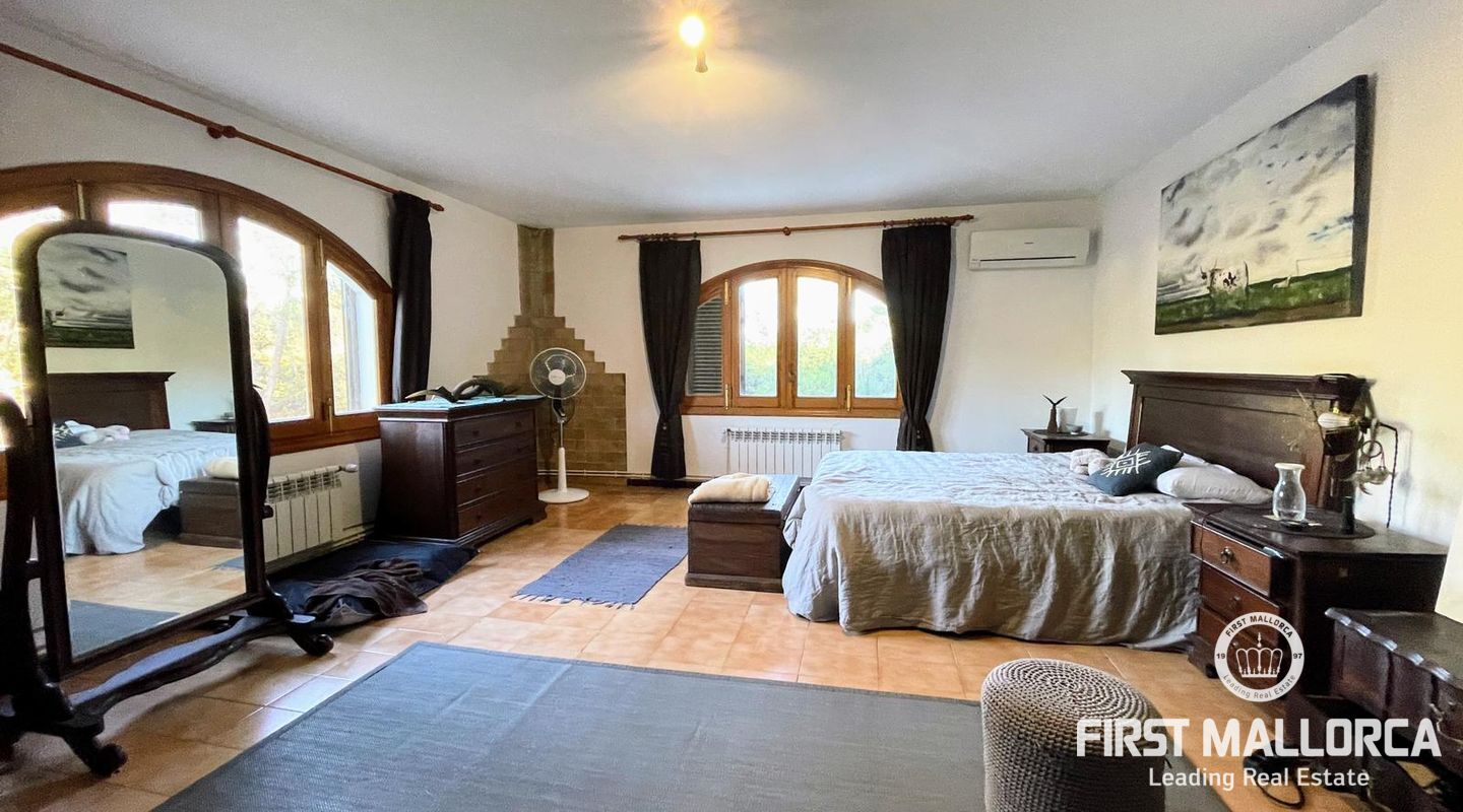 Vacker och rymlig rustik finca med 6 sovrum byggd på 3 våningar i hjärtat av Mallorca, bara 5 minuter från Costitx och 30 minuter från Palma. Denna välskötta fastighet är helt möblerad och har ett stort vardagsrum med en mysig öppen spis, fullt utrustat kök, 2 badrum och totalt 6 sovrum. De 2 sovrummen på övre våningen kommer med en med en terrass på 25 meter, sedan finns det 2 sovrum på första våningen och resterande 2 på bottenvåningen. Det finns inbyggda garderober i sovrummen som erbjuder gott om förvaringsutrymme. Båda badrummen har ett badkar. Till fastigheten hör en täckt parkeringsplats för två bilar. Höjdpunkten på denna finca är det vackra och öppna uterummet. Stor fruktträdgård med fruktträd och privat tallskog finns precis bakom villan och kan erbjuda en perfekt öppen yta för paellaskvällar eller torradas. Det finns också en stengrill byggd framför villan samt flera trädgårdar på varje sida av villan som kan beundras. Framför villan finns också en stor terrass - ett tält - där man kan äta ute vid middagstid eller på kvällen och samtidigt vara skyddad från solen eller fuktigheten. Värme och luftkonditionering är båda installerade runt hela huset. Solpaneler 7.500 volt är installerade på fastigheten, modell premium med 40 % av sin kapacitet fungerar alla tända, vilket ger energi under hela året. Vatten tillhandahålls av vattenbil eller regnvattenuttag, cistern.