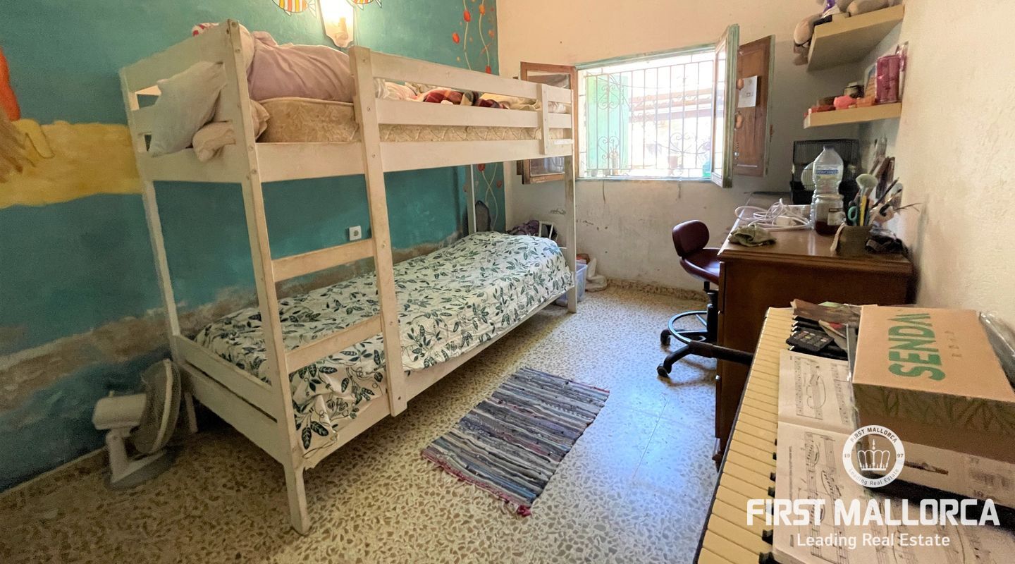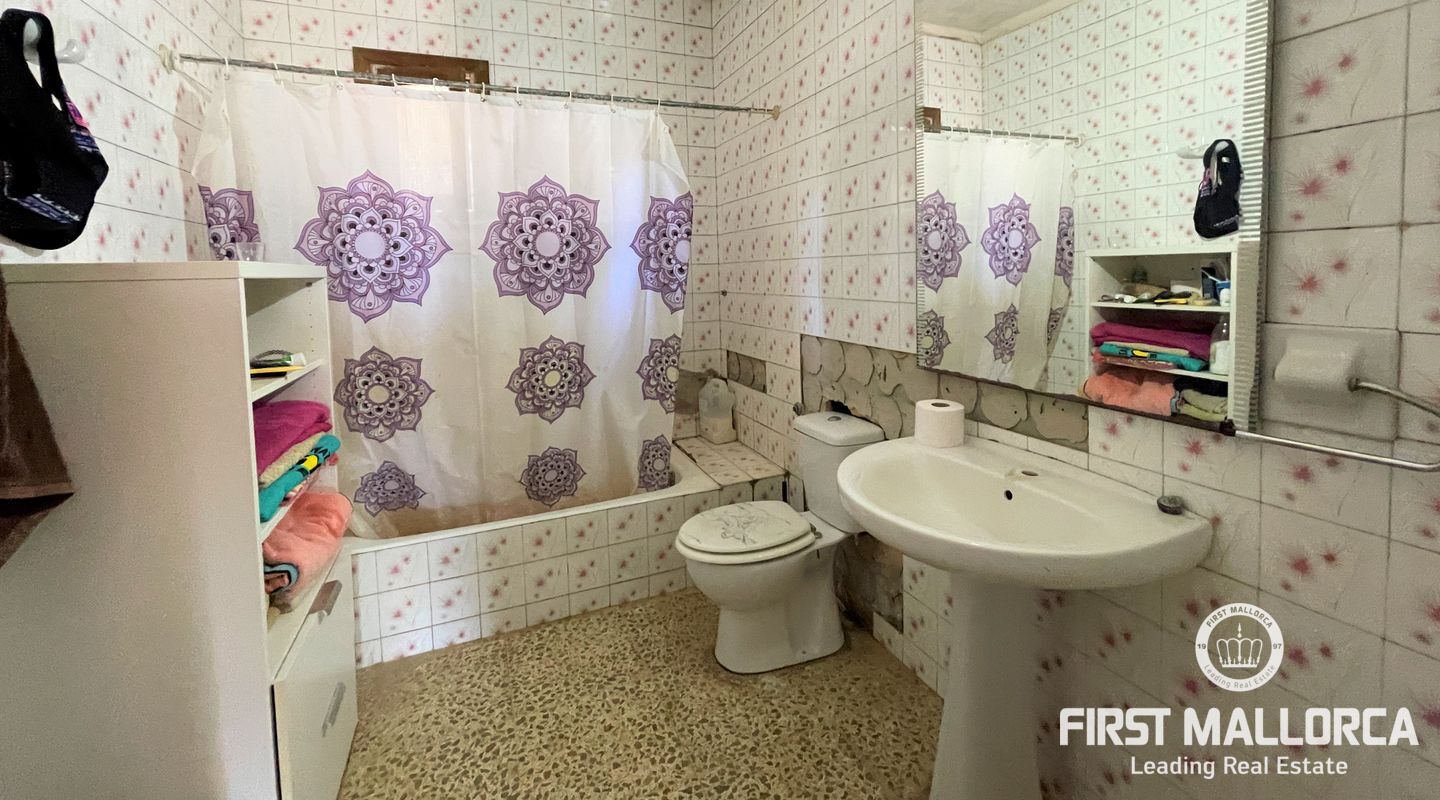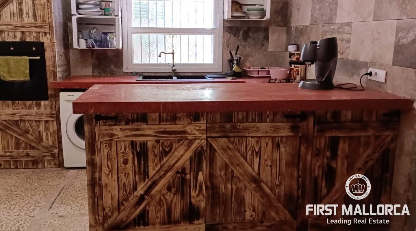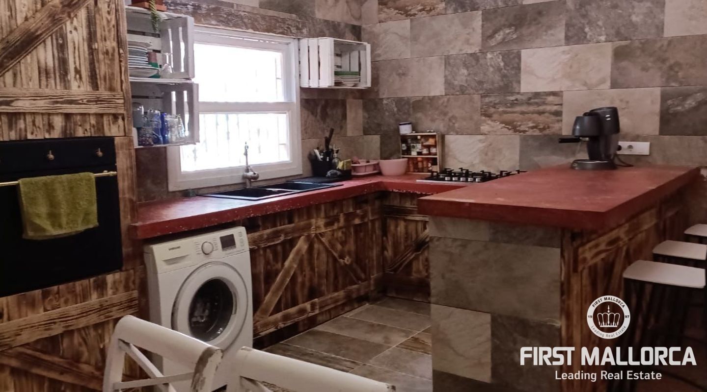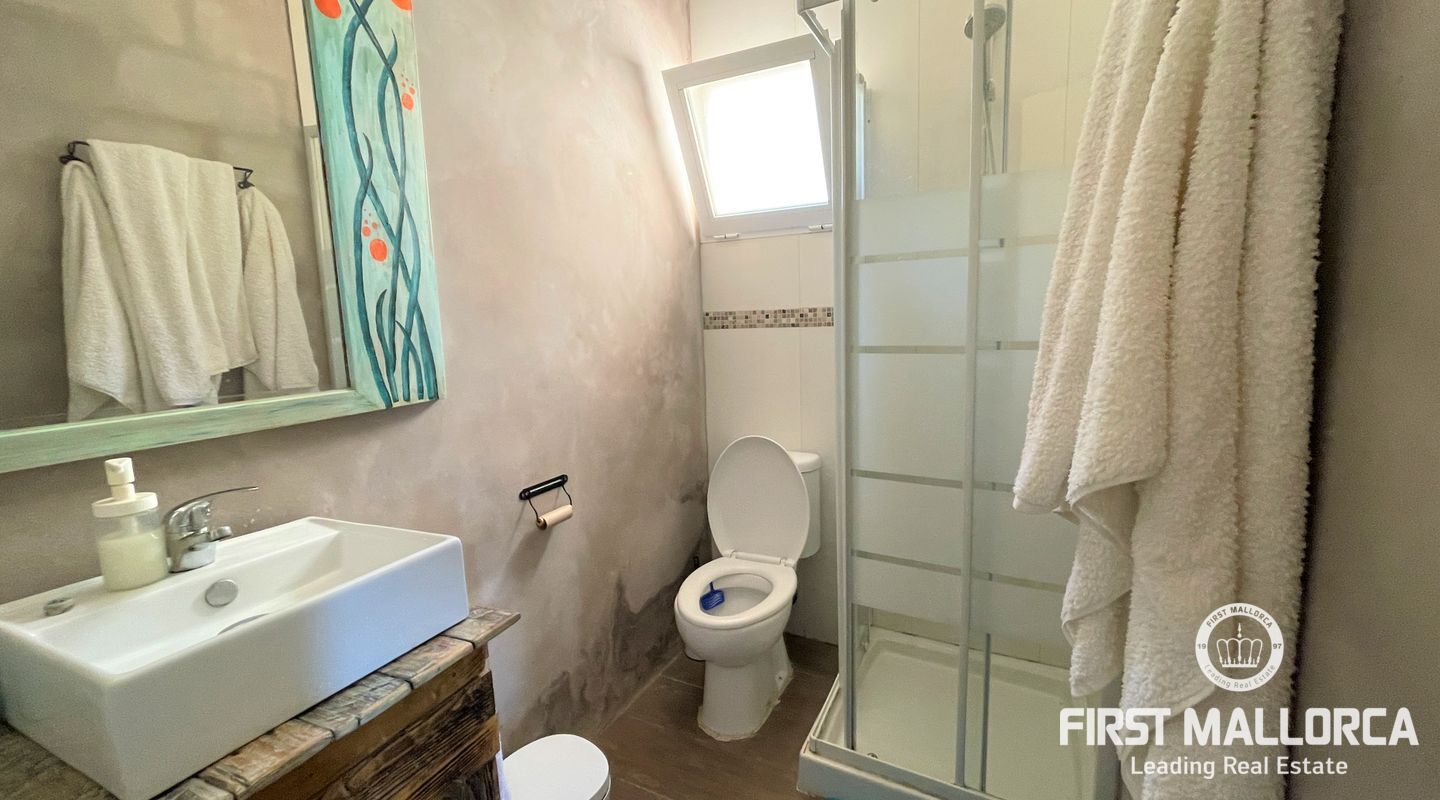 Två hus på en 12 000 m2 stor tomt. Gästhuset är en vacker lägenhet med trätak, imitation av parkettplattor och synliga stenväggar. Det har två sovrum, badrum med dusch och skärm, kök/matsal. Det har nyligen renoverats. Huvudbyggnaden som ligger bredvid gästhuset. Det har 2 sovrum, badrum, ett stort kök och ett rymligt vardagsrum/matsal. Det skulle kunna dra nytta av en liten renovering. (98m2). Fincaen har ett mycket bra läge i mitten av ön Mallorca, 8 km från byn Manacor. Den har underbar fri utsikt, en stor trädgård med grillar, två lerugnar, utomhusbadrum, chiringuito, damm och träd. Andra områden på fastigheten har inretts för parkering eller ett fritidsområde. Fincaen är helt självförsörjande, drivs av solenergi och har en brunn med gott om vatten och en brunn för uppsamling av regnvatten. Den betalar inte för el eller vatten. Utomhusytan hyrs för närvarande ut för fester, evenemang, workshops osv. Det är en perfekt investeringsmöjlighet. Det har inte ett intyg om beboelighet, förväntas få det i oktober.