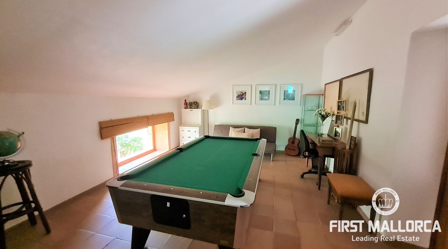 Vackert hus på landet med pool i Sant Llorenç des Cardassar, det rymliga utomhusområdet har en privat pool och en utomhusdusch för att skölja av sig efter att ha tagit sig ur poolen. I samma trädgård finns också en paddel/tennisbana, en pentaquinbana, biljardbord och bordfotboll för att liva upp dina dagar på det mest underhållande sättet. Det finns en damm, ett barnområde med gungor och leksaker och flera sittplatser där du kan koppla av med en bok eller en drink. Huset har 3 verandor: en intill poolen, med ett kök för att njuta av dina måltider utomhus, en vid ingången och en i det tidigare garaget. Det finns också två möblerade terrasser, med en grill där du kan förbereda läckra grillar. Om du letar efter avskildhet rekommenderar vi definitivt denna fastighet, eftersom det inte finns några invånare inom en stor radie. I Sant Llorenç des Cardassar kan vi njuta av den lantliga atmosfären och lugnet som kommunen erbjuder oss, samt ett brett utbud av fritidsaktiviteter och restauranger i Manacor, Cala Millor, Sa Coma... som ligger mycket nära.