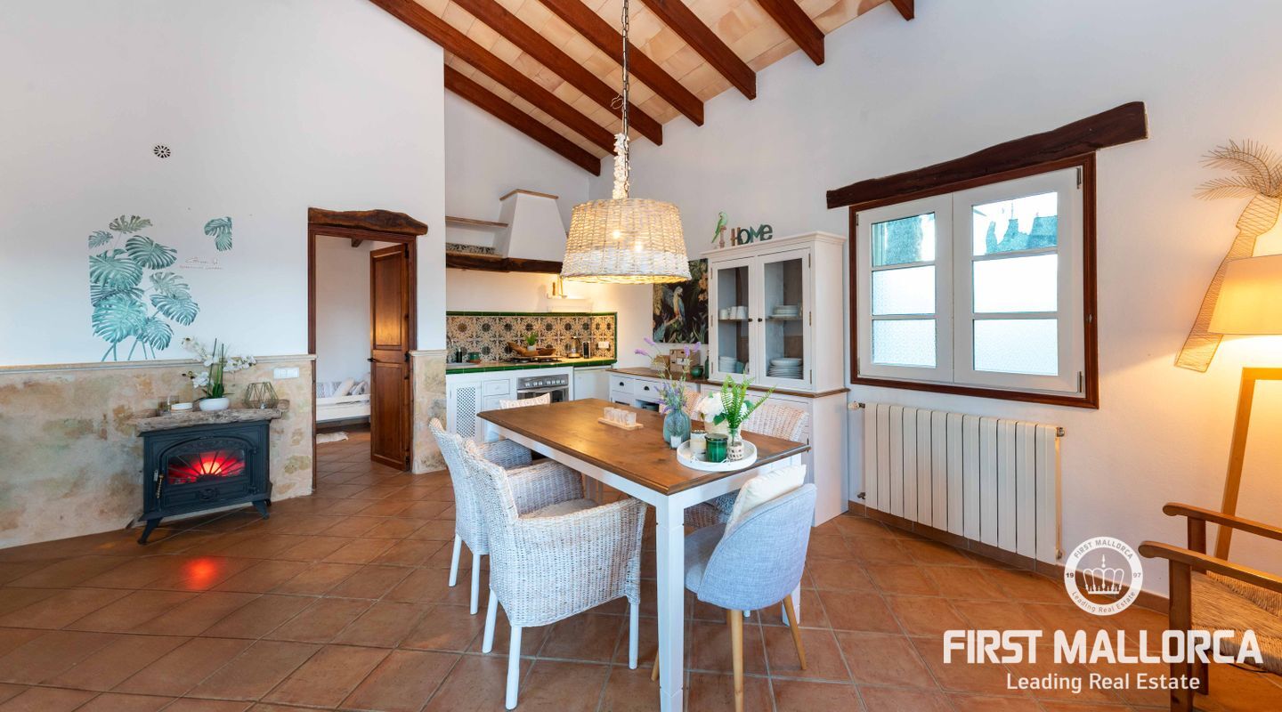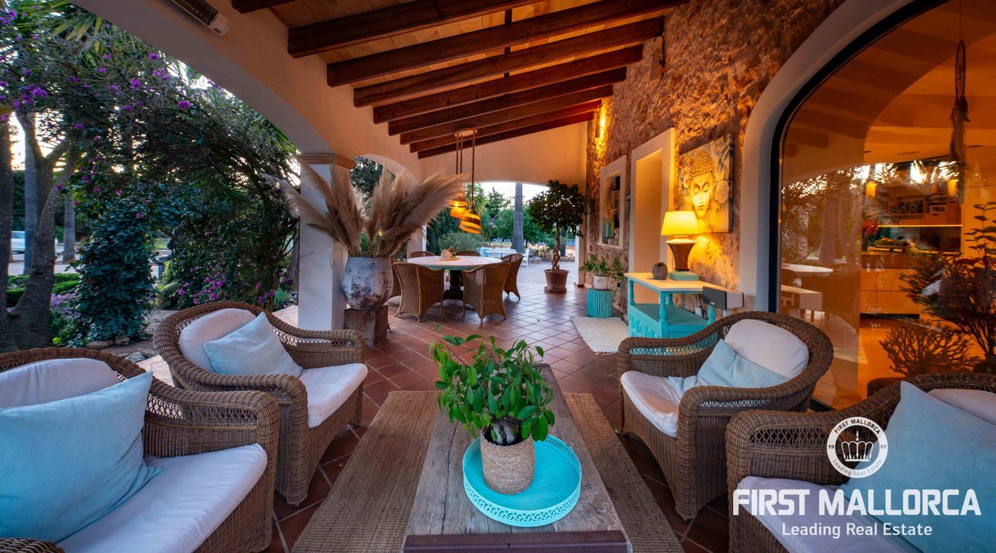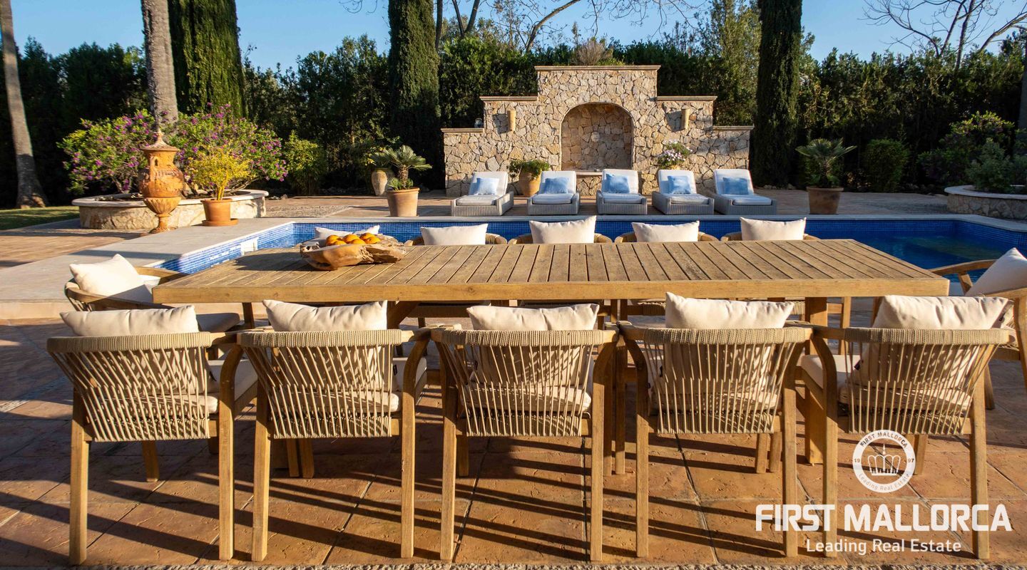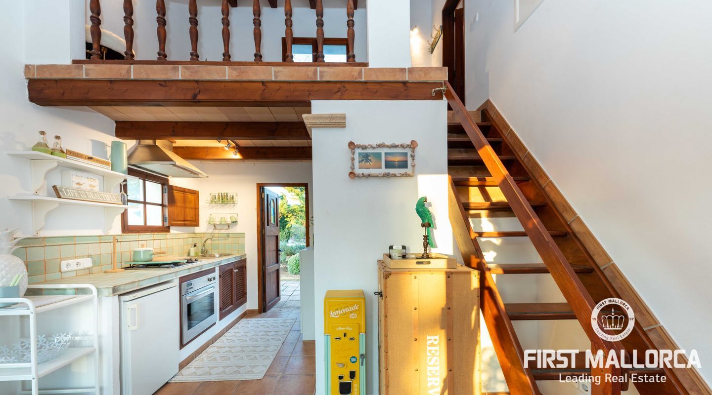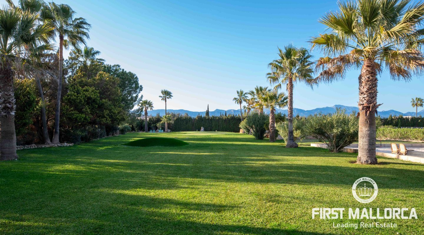 En vacker, bred väg kantad med palmer leder till huvudbyggnaden samt tre eleganta gästhus, som harmoniskt kombinerar traditionell mallorkinsk arkitektur med modern komfort. Med totalt åtta sovrum och sex badrum erbjuder denna fastighet generöst med utrymme för familj och gäster.