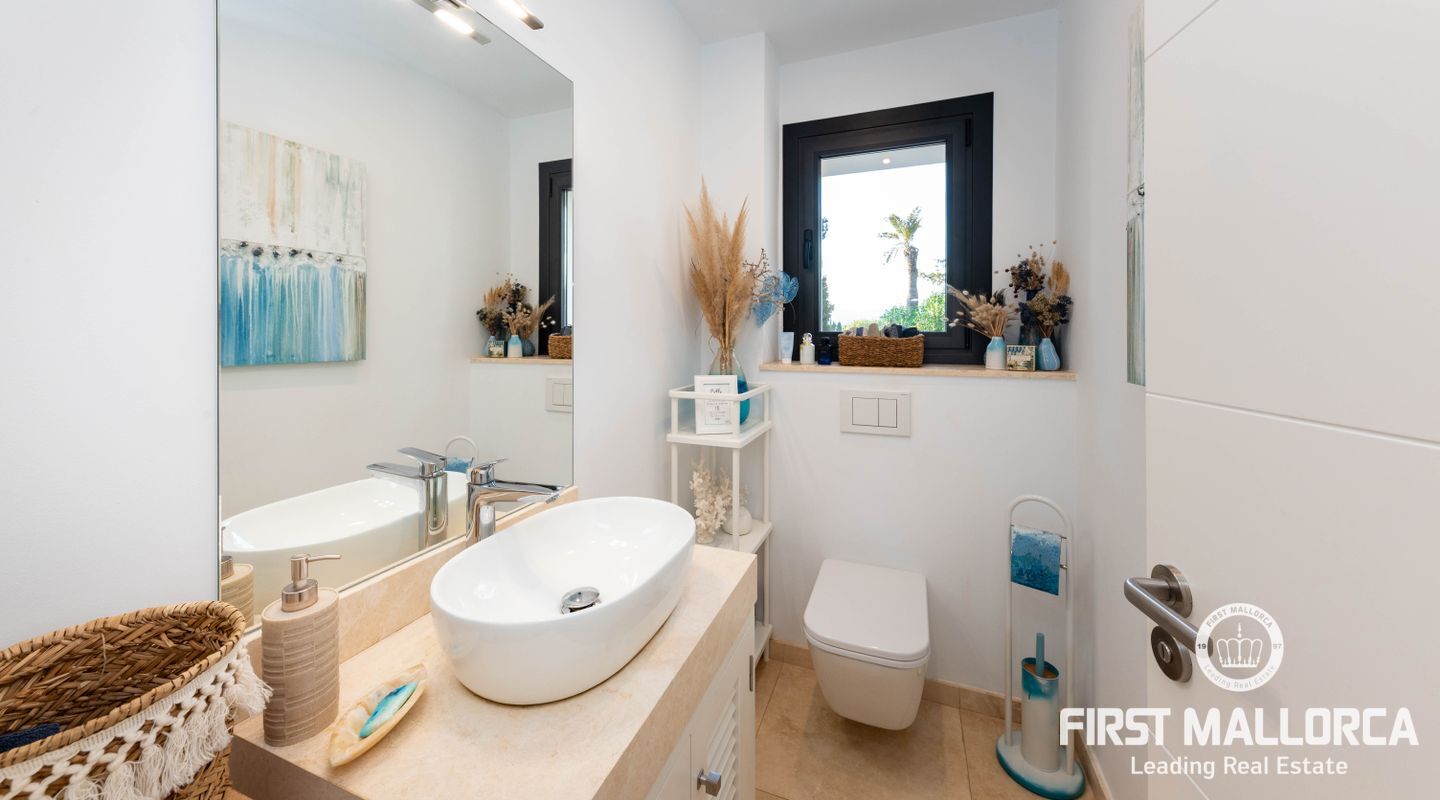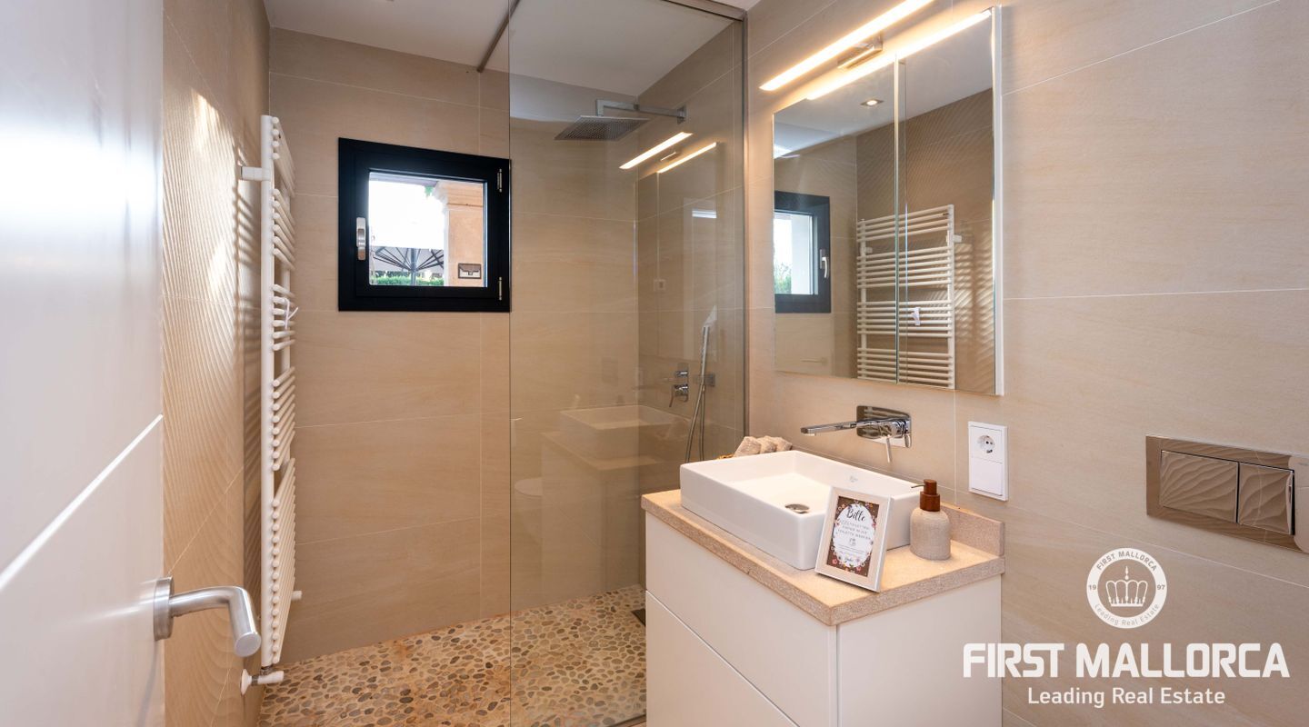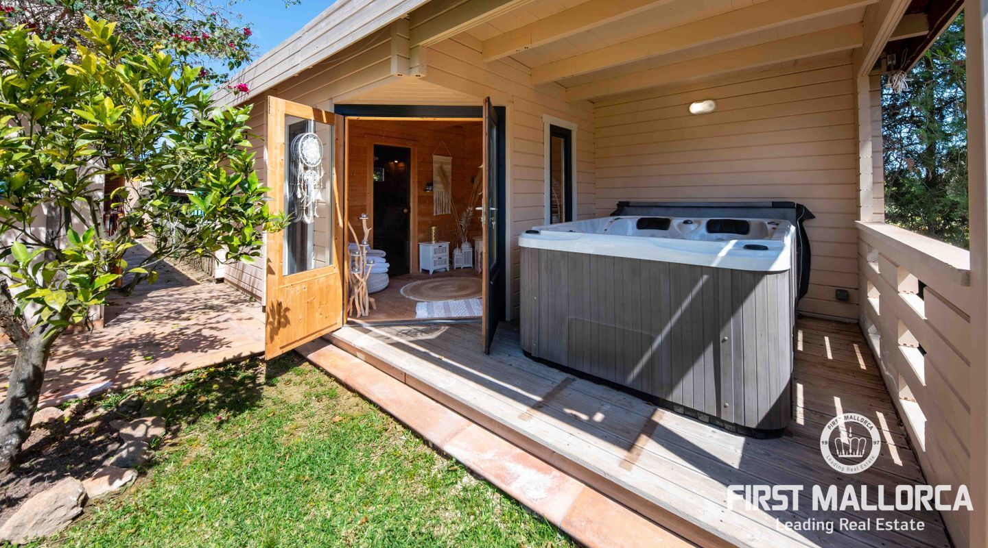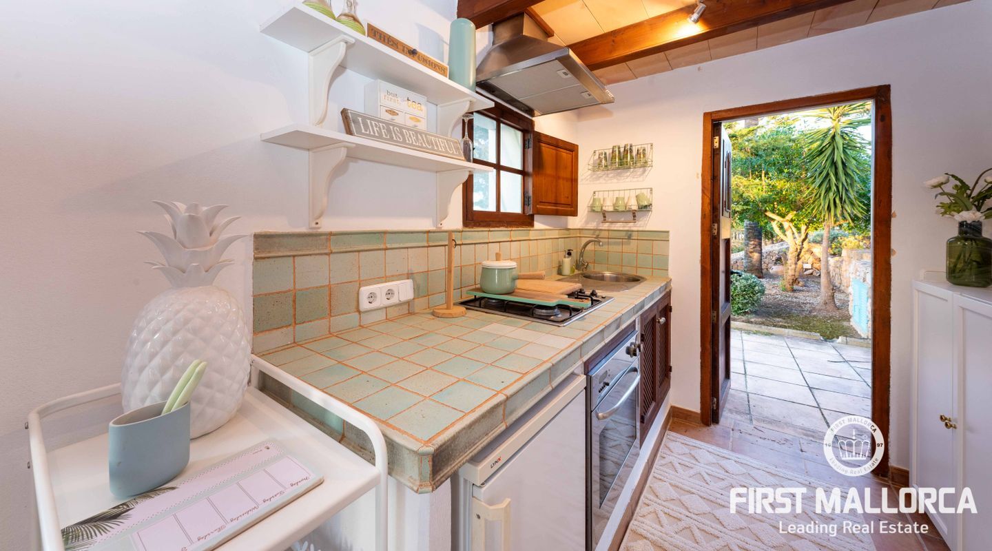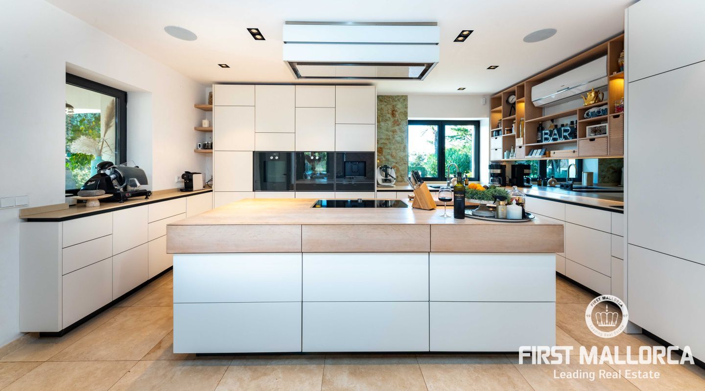 En vacker, bred väg kantad med palmer leder till huvudbyggnaden samt tre eleganta gästhus, som harmoniskt kombinerar traditionell mallorkinsk arkitektur med modern komfort. Med totalt åtta sovrum och sex badrum erbjuder denna fastighet generöst med utrymme för familj och gäster.