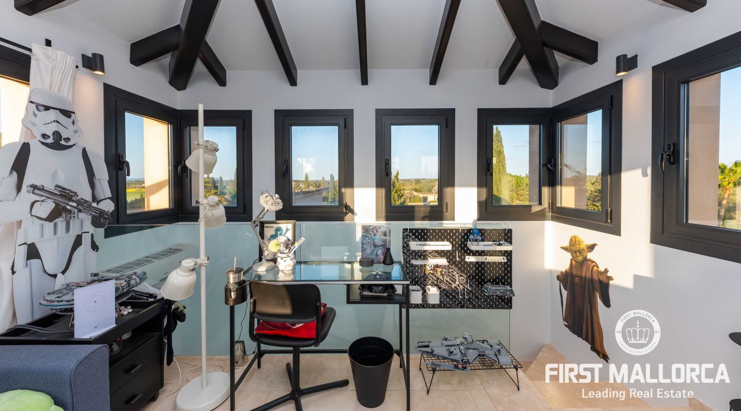 Denna lyxiga och exceptionella finca, belägen nära Santa Eugenia och endast fem minuter från den berömda T-Golf Palma golfbana, imponerar med sin fantastiska utsikt över de majestätiska bergen och enastående funktioner.