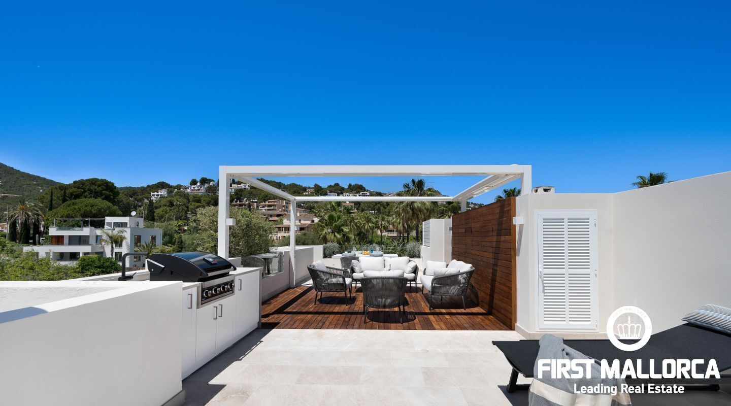 Den erbjuder enastående utsikt över hamnen och ligger inom gångavstånd från den ädla Port Andratx. Denna takvåning fångar essensen av det moderna livet genom att sömlöst blanda elegansen i de inre utrymmena med den hisnande skönheten i utsidan. Den svävar högt med en av de bästa utsikterna över småbåtshamnen! Utomhus BBQ-köket ger en touch av kulinarisk sofistikering till utomhusmöten.