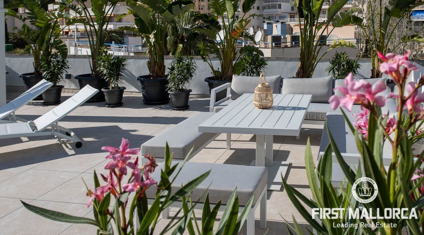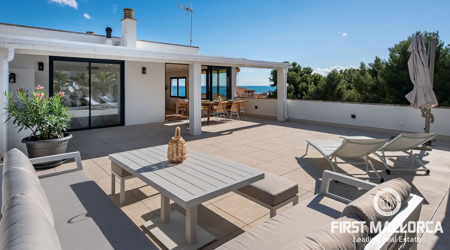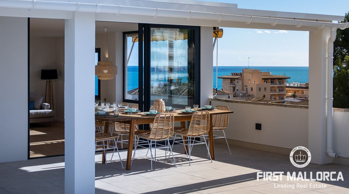 Vi presenterar en exceptionell möjlighet att förvärva en prestigefylld takvåning som erbjuder det ultimata kustlivet. Med 93 kvadratmeter utsökt interiör erbjuder denna exklusiva bostad en livsstil med komfort och sofistikering. Inbäddat i ett eftertraktat område i Sant Augustin, bara 10 minuter från Palme centrum, erbjuder det en perfekt blandning av modern bekvämlighet och panoramautsikt över havet. Viktiga egenskaper: Rymlig interiör: Kliv in i en generöst proportionerad takvåning som sträcker sig över 93 kvadratmeter och erbjuder tre sovrum och två välutrustade badrum. Det stora badrummet är en-suite, vilket garanterar din integritet och bekvämlighet. Expansiv terrass: Njut av utomhuslivet med en 100 kvadratmeter stor terrass som kan nås direkt från både salongen och sovrummet. Sola, ät middag utomhus eller njut helt enkelt av den hisnande havsutsikten. Privat retreat på taket: En 65 kvadratmeter stor takterrass är exklusivt din att njuta av. Det ger en upphöjd utsiktspunkt för att njuta av kustutsikten och njuta av solens värme. Fantastisk utsikt över havet: Vakna upp till det mjuka ljudet av vågor och fri havsutsikt som möter dig från din terrass och takterrass, vilket skapar en lugn atmosfär. Elegant inredning: Takvåningen har parkettgolv, golvvärme och luftkonditionering som kan justeras till din önskade temperatur i varje rum, vilket garanterar din komfort året runt. Modernt kök: Det öppna inbyggda köket är en kulinarisk oas, perfekt för matlagning och underhållning. Det har inbyggda skåp och moderna vitvaror. Fullt möblerad: Denna takvåning är fullt möblerad, vilket gör den till en nyckelfärdig fastighet redo för dig att flytta in och börja njuta omedelbart. Gemensamma bekvämligheter: Förutom dina privata utomhusutrymmen erbjuder samhället en stor pool och vackra gemensamma trädgårdar och parker för dig att varva ner och umgås. Denna takvåning är en sällsynt pärla i ett utmärkt läge och erbjuder en idyllisk kustlivsstil. Oavsett om du letar efter en permanent bostad eller ett fritidshus, är detta ett gyllene tillfälle att göra det till ditt eget. Missa inte chansen att leva i lyx vid havet - kontakta oss idag för att boka en visning.