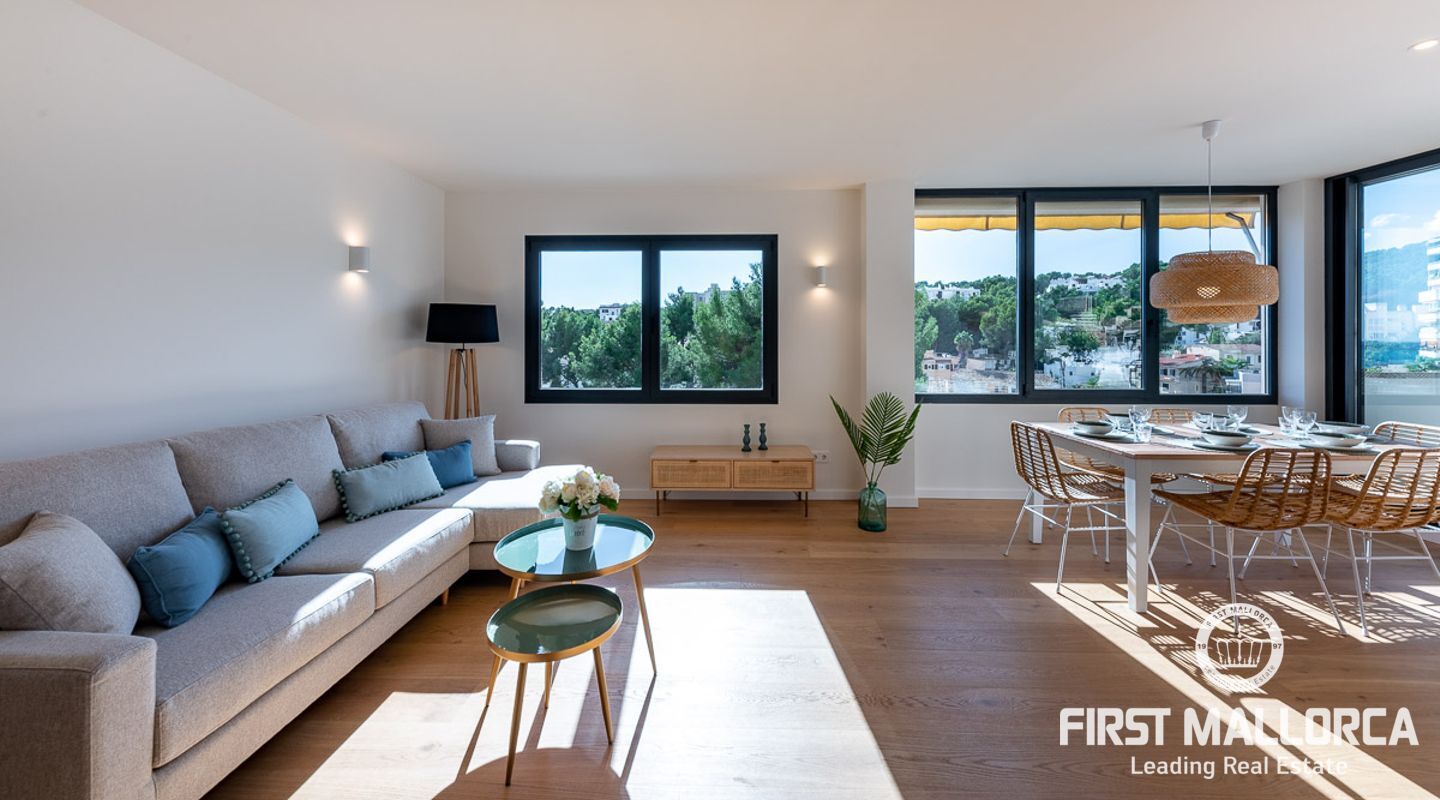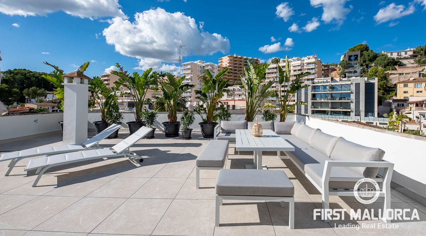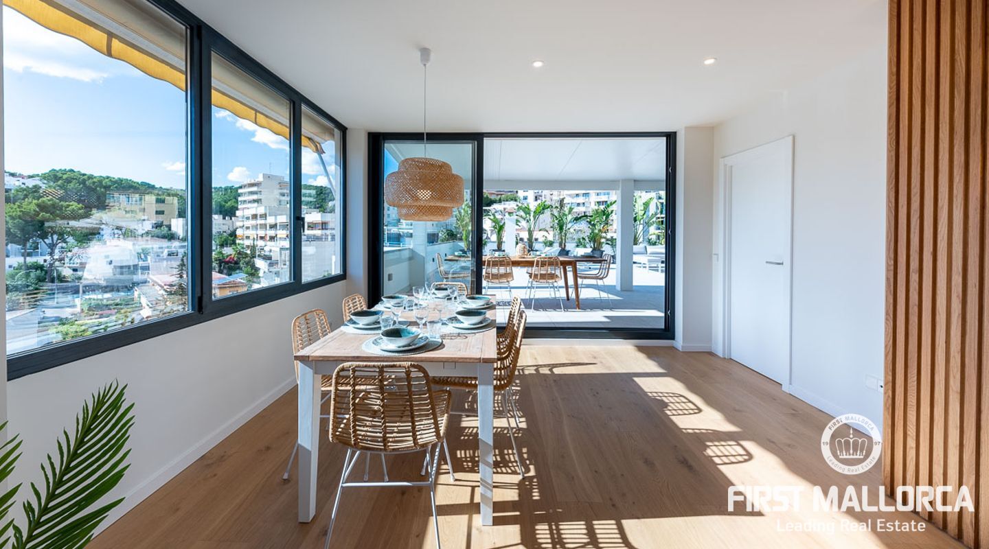 Vi presenterar en exceptionell möjlighet att förvärva en prestigefylld takvåning som erbjuder det ultimata kustlivet. Med 93 kvadratmeter utsökt interiör erbjuder denna exklusiva bostad en livsstil med komfort och sofistikering. Inbäddat i ett eftertraktat område i Sant Augustin, bara 10 minuter från Palme centrum, erbjuder det en perfekt blandning av modern bekvämlighet och panoramautsikt över havet. Viktiga egenskaper: Rymlig interiör: Kliv in i en generöst proportionerad takvåning som sträcker sig över 93 kvadratmeter och erbjuder tre sovrum och två välutrustade badrum. Det stora badrummet är en-suite, vilket garanterar din integritet och bekvämlighet. Expansiv terrass: Njut av utomhuslivet med en 100 kvadratmeter stor terrass som kan nås direkt från både salongen och sovrummet. Sola, ät middag utomhus eller njut helt enkelt av den hisnande havsutsikten. Privat retreat på taket: En 65 kvadratmeter stor takterrass är exklusivt din att njuta av. Det ger en upphöjd utsiktspunkt för att njuta av kustutsikten och njuta av solens värme. Fantastisk utsikt över havet: Vakna upp till det mjuka ljudet av vågor och fri havsutsikt som möter dig från din terrass och takterrass, vilket skapar en lugn atmosfär. Elegant inredning: Takvåningen har parkettgolv, golvvärme och luftkonditionering som kan justeras till din önskade temperatur i varje rum, vilket garanterar din komfort året runt. Modernt kök: Det öppna inbyggda köket är en kulinarisk oas, perfekt för matlagning och underhållning. Det har inbyggda skåp och moderna vitvaror. Fullt möblerad: Denna takvåning är fullt möblerad, vilket gör den till en nyckelfärdig fastighet redo för dig att flytta in och börja njuta omedelbart. Gemensamma bekvämligheter: Förutom dina privata utomhusutrymmen erbjuder samhället en stor pool och vackra gemensamma trädgårdar och parker för dig att varva ner och umgås. Denna takvåning är en sällsynt pärla i ett utmärkt läge och erbjuder en idyllisk kustlivsstil. Oavsett om du letar efter en permanent bostad eller ett fritidshus, är detta ett gyllene tillfälle att göra det till ditt eget. Missa inte chansen att leva i lyx vid havet - kontakta oss idag för att boka en visning.