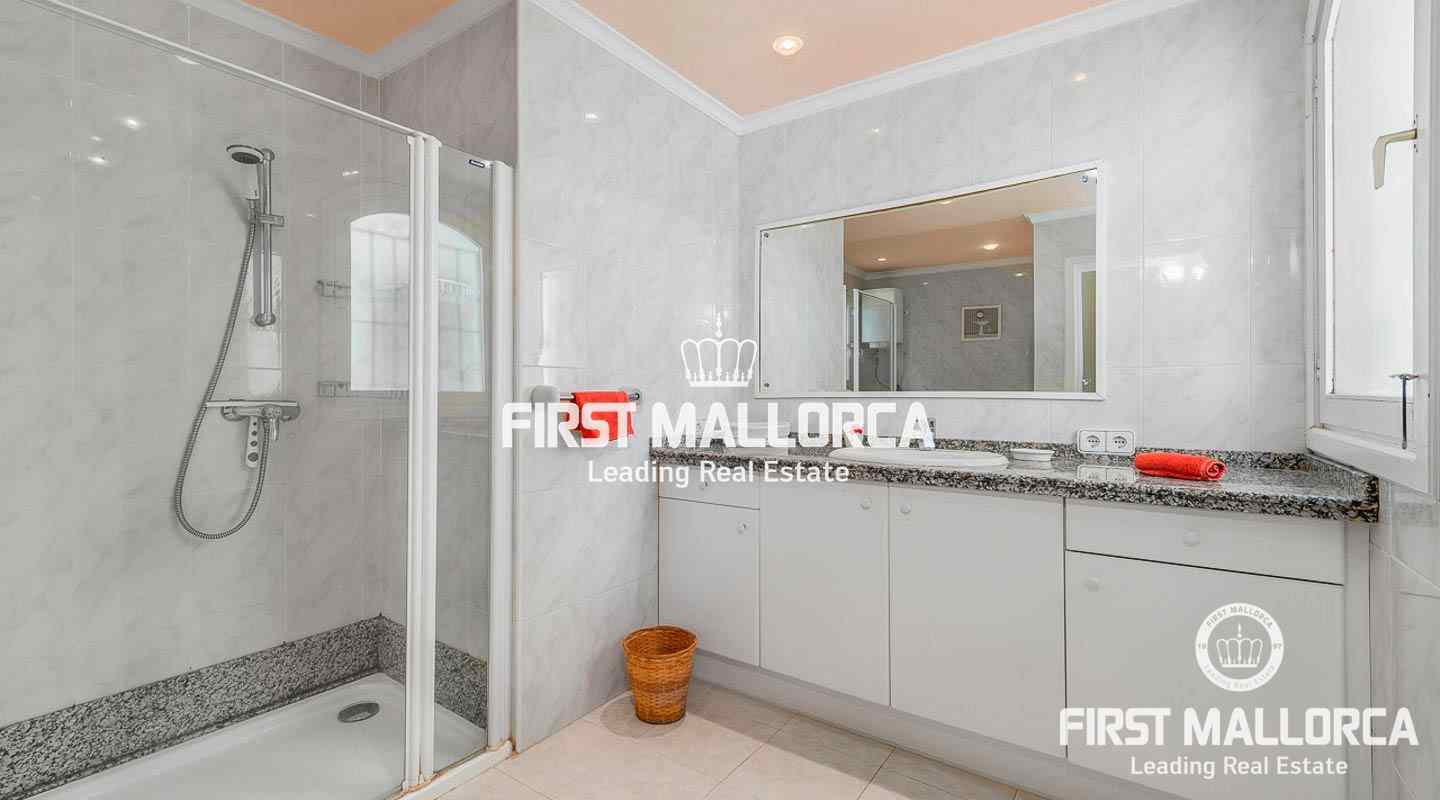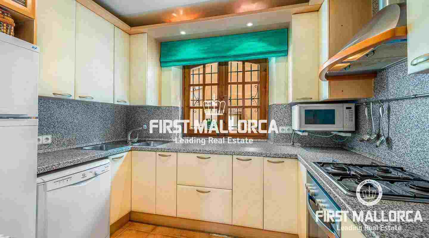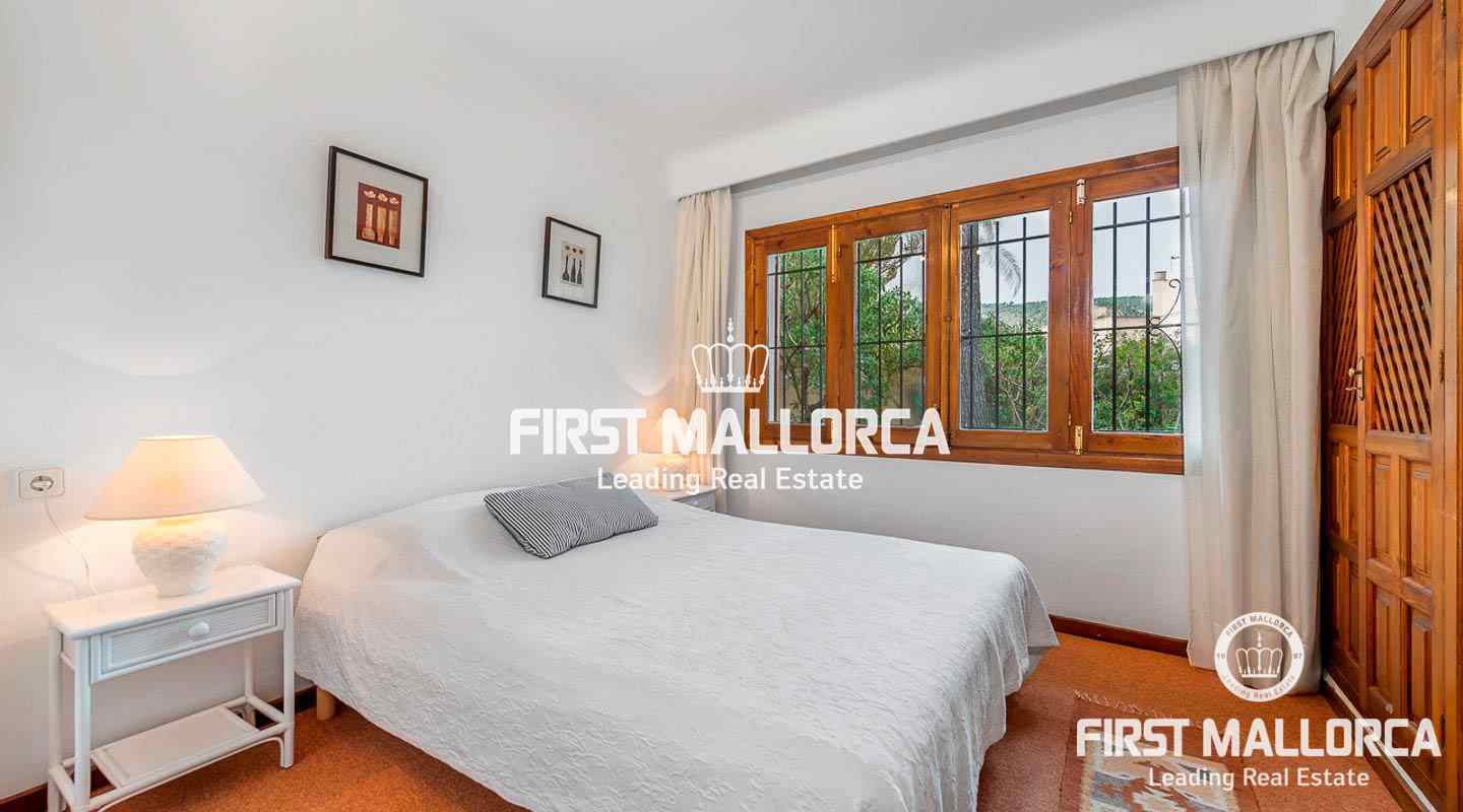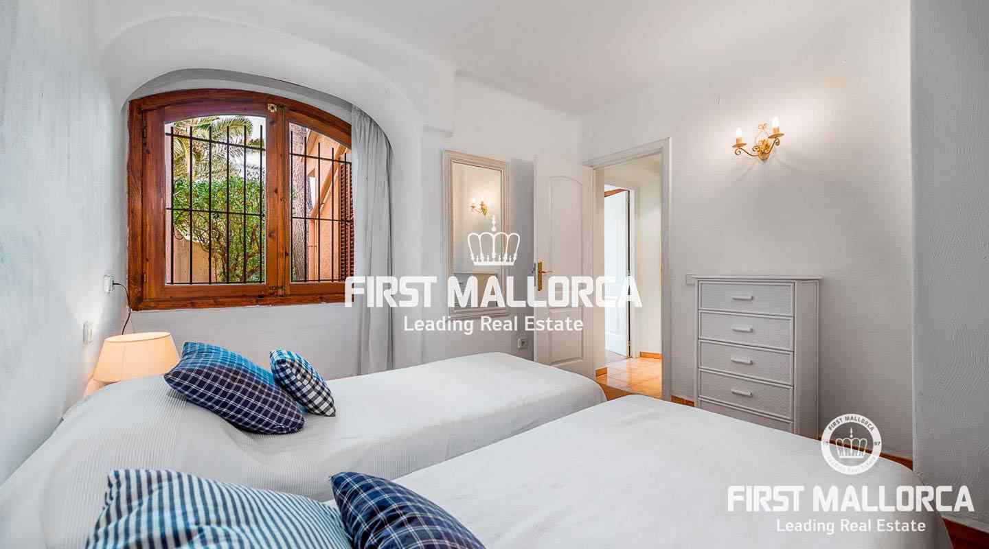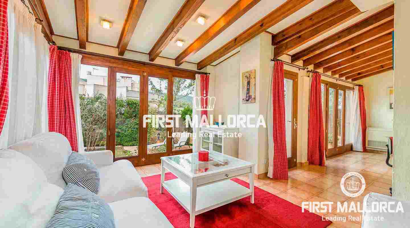Denna villa i lantlig stil ligger i en trevlig och lugn gated community i det eftertraktade området Bendinat, bara 3 minuters promenad från Royal Golf Course. Den attraktiva fastigheten på Mallorca har en privat terrasserad trädgård, perfekt att dröja kvar och njuta av det fantastiska medelhavsvädret.
