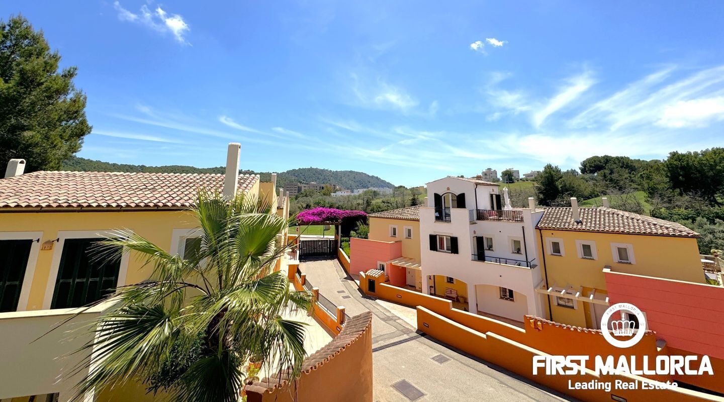 Detta välskötta hus med 3 sovrum och 3 badrum ligger i ett lugnt komplex direkt på golfbanan "Golf de Andratx" i Camp de Mar. Bostadsytan är fördelad på två våningar - köket och vardagsrummet med matsal och öppen spis ligger på bottenvåningen. Ett av sovrummen ligger också på bottenvåningen och har ett badrum och tillgång till terrassen.