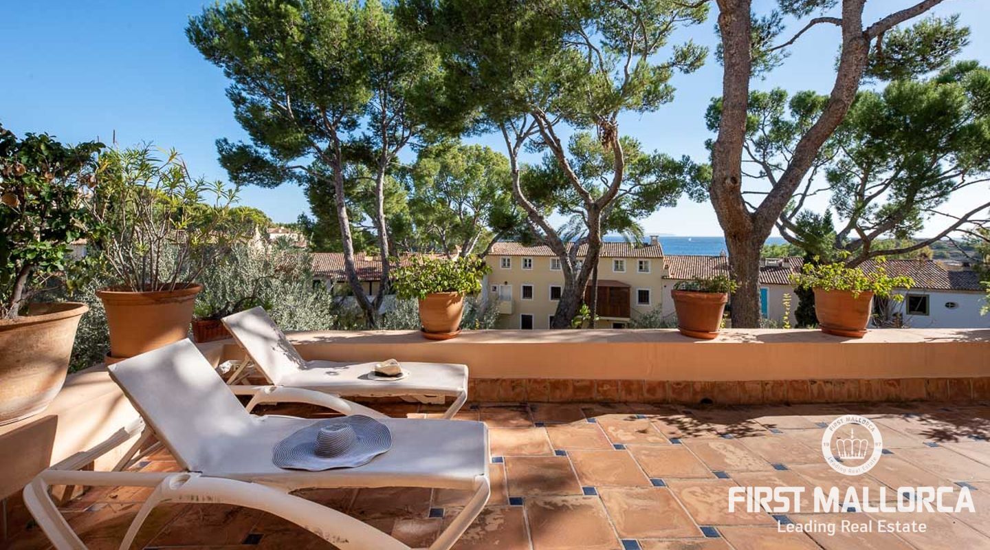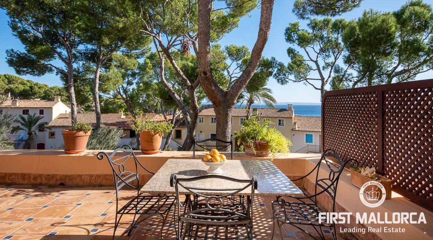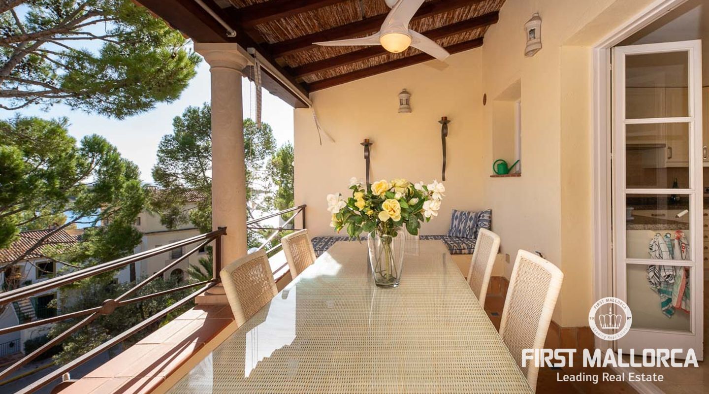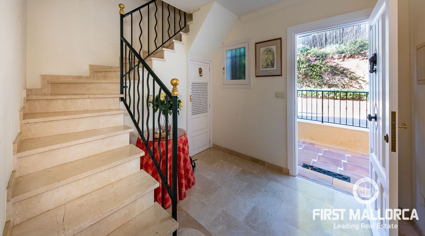 Detta charmiga och ljusa radhus med 4 sovrum och fantastisk havsutsikt förkroppsligar den perfekta semesterkänslan på Mallorca. Som en av de få fastigheterna med 4 sovrum som sällan ses i The Anchorage, finns det inga begränsningar här. Det rymliga vardagsrummet övergår i de stora utomhusterrasserna, där du kan njuta av solen och beundra det lugna turkosa vattnet i Illetasbukten.