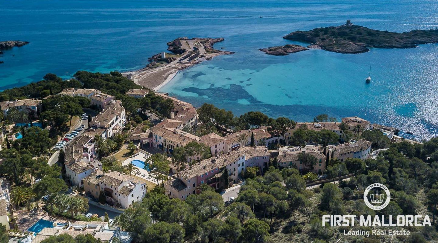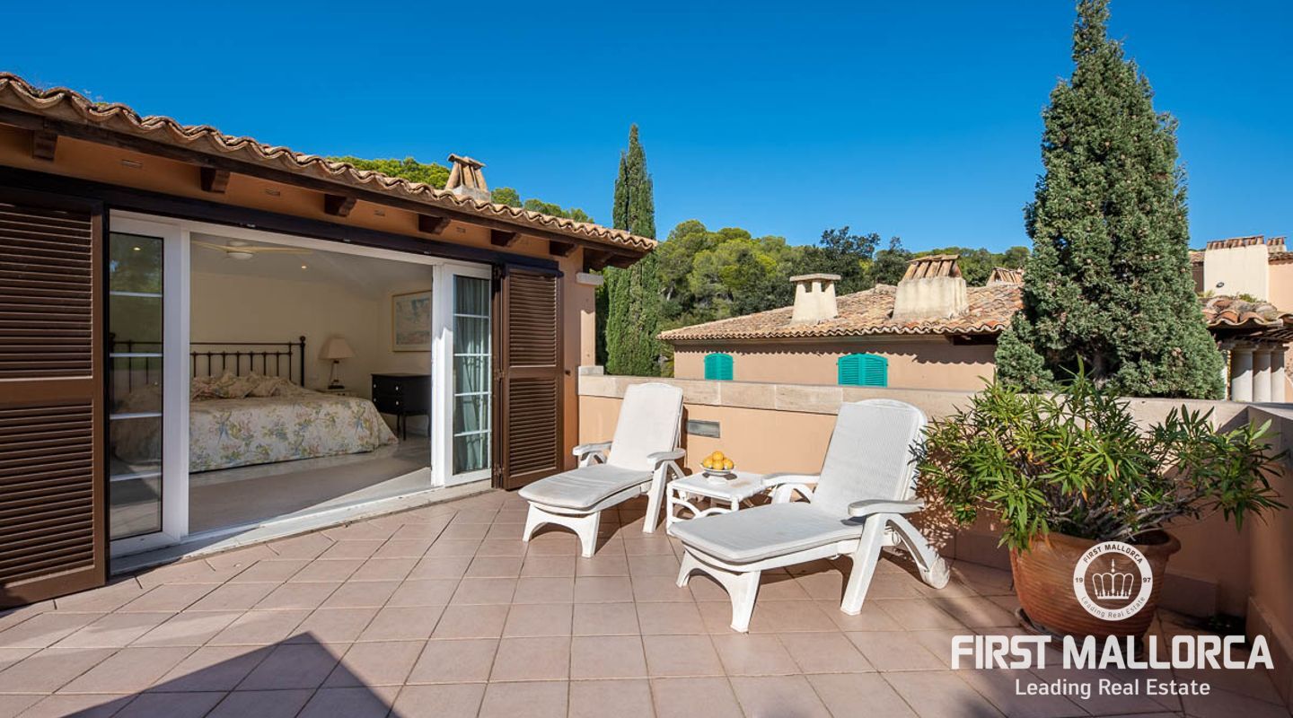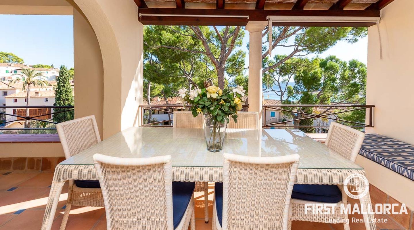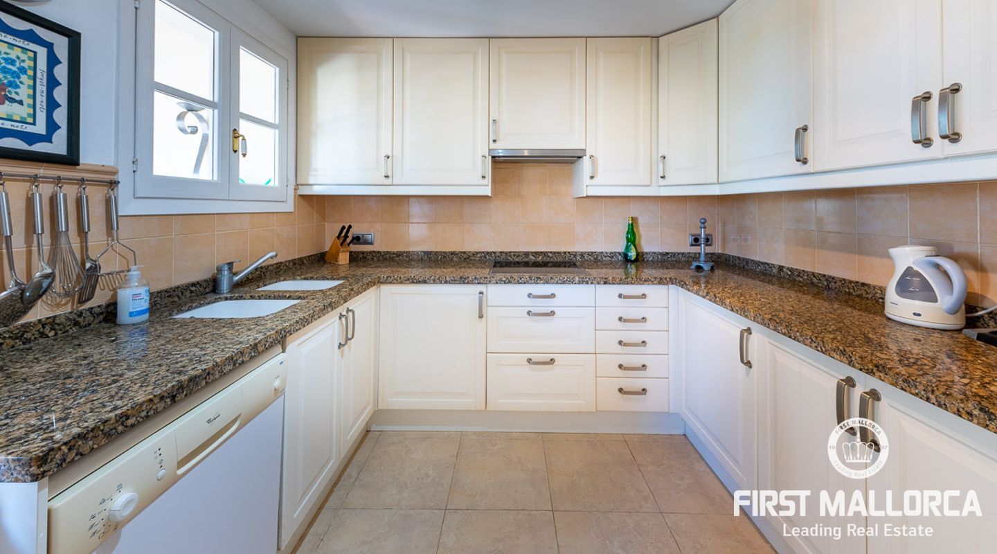 Detta charmiga och ljusa radhus med 4 sovrum och fantastisk havsutsikt förkroppsligar den perfekta semesterkänslan på Mallorca. Som en av de få fastigheterna med 4 sovrum som sällan ses i The Anchorage, finns det inga begränsningar här. Det rymliga vardagsrummet övergår i de stora utomhusterrasserna, där du kan njuta av solen och beundra det lugna turkosa vattnet i Illetasbukten.