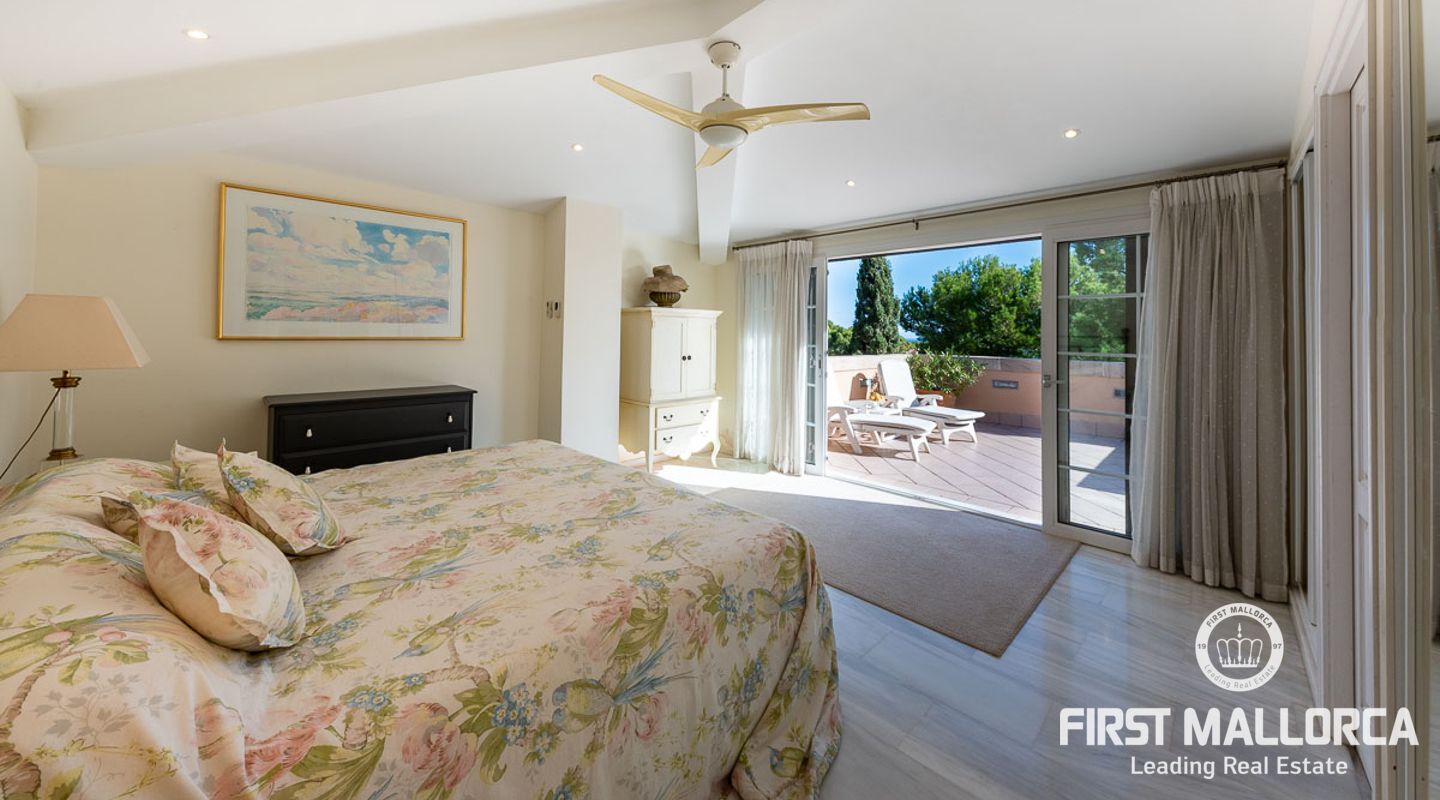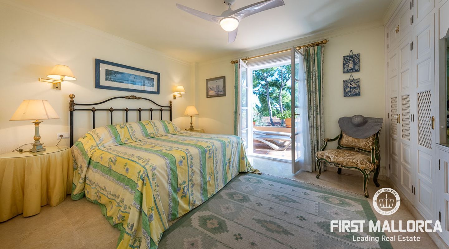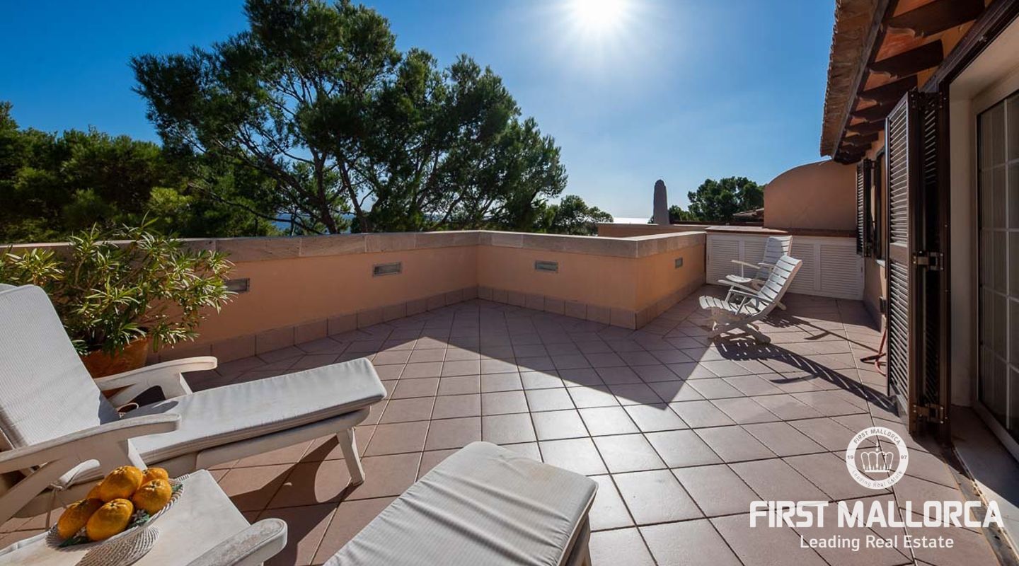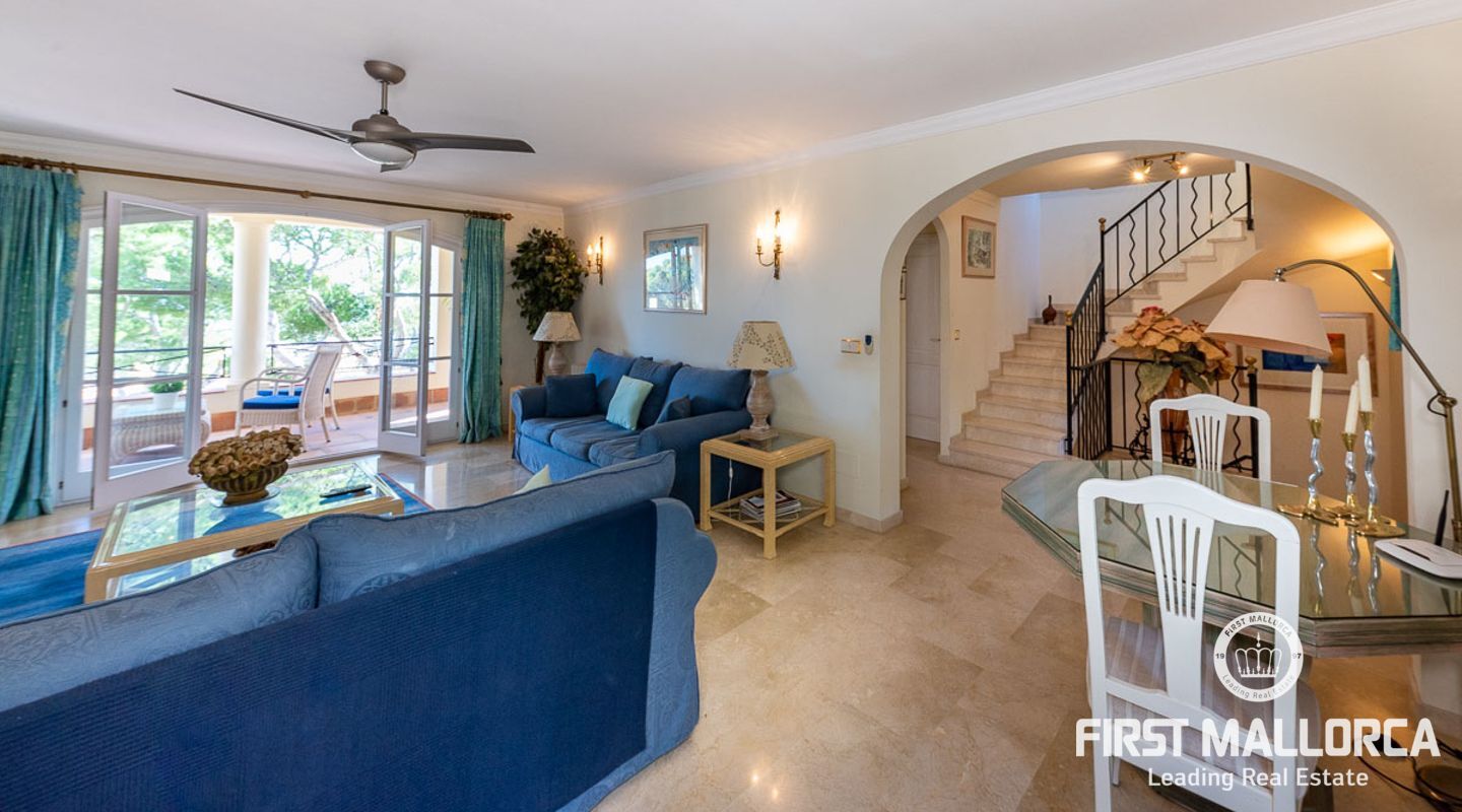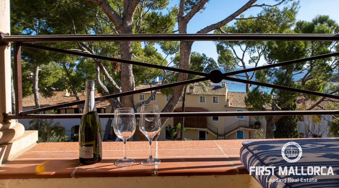 Detta charmiga och ljusa radhus med 4 sovrum och fantastisk havsutsikt förkroppsligar den perfekta semesterkänslan på Mallorca. Som en av de få fastigheterna med 4 sovrum som sällan ses i The Anchorage, finns det inga begränsningar här. Det rymliga vardagsrummet övergår i de stora utomhusterrasserna, där du kan njuta av solen och beundra det lugna turkosa vattnet i Illetasbukten.