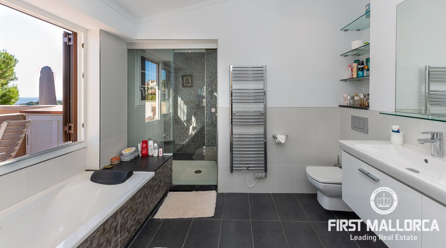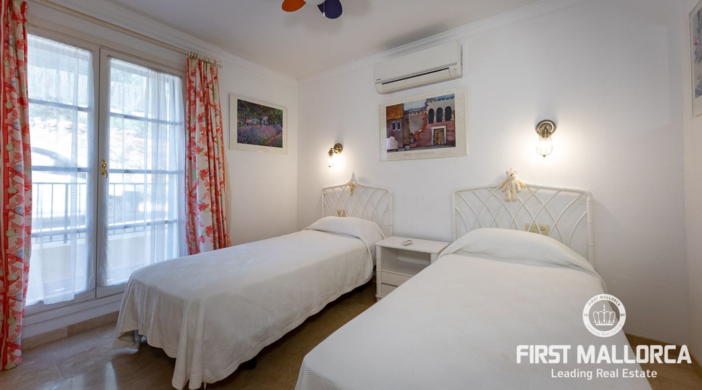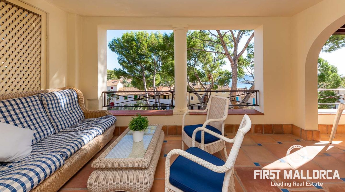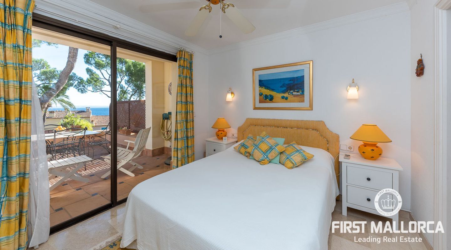 Detta charmiga och ljusa radhus med 4 sovrum och fantastisk havsutsikt förkroppsligar den perfekta semesterkänslan på Mallorca. Som en av de få fastigheterna med 4 sovrum som sällan ses i The Anchorage, finns det inga begränsningar här. Det rymliga vardagsrummet övergår i de stora utomhusterrasserna, där du kan njuta av solen och beundra det lugna turkosa vattnet i Illetasbukten.