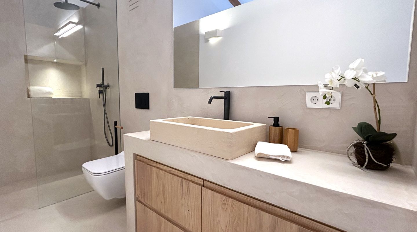 Detta charmiga radhus i Santanyí håller på att byggas och kommer att vara inflyttningsklart i slutet av 2023. Den 125 m2 stora fastigheten kommer att fördelas på två våningar. Bottenvåningen kommer att fördelas på ett rymligt vardagsrum och ett öppet kök i anslutning till matsalen och det vackra utomhusområdet där du kan njuta av solen på Mallorca och bada i din privata pool. Uppe på första våningen hittar du två sovrum med två egna badrum och en walk-in-garderob. Några extra funktioner är golvvärme, a/c och ett förråd. Detta radhus ligger i den vackra staden Santanyí, känd för den charmiga marknaden som du kan hitta där varje lördag och dess mysiga gator, moderna affärer och restauranger, samtidigt som det bara ligger 7 minuters bilresa från den vackra Santanyí-stranden.